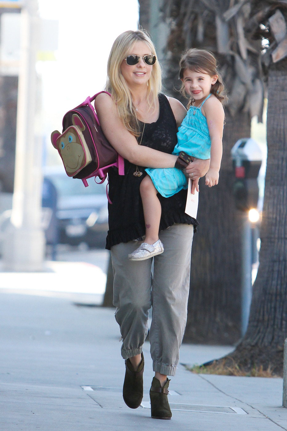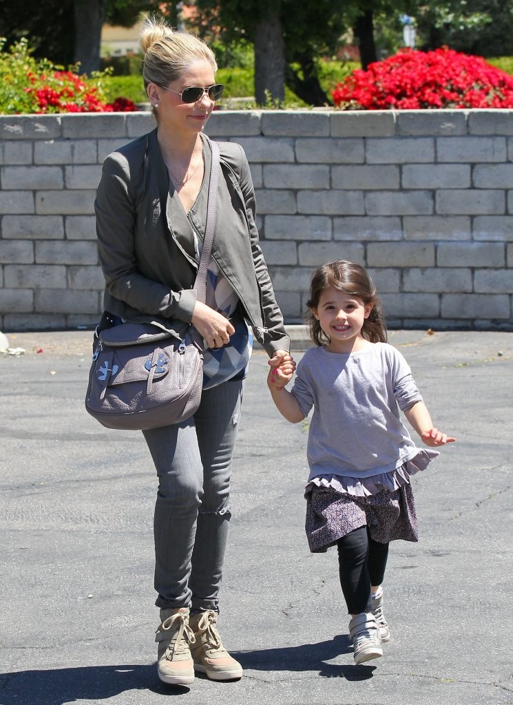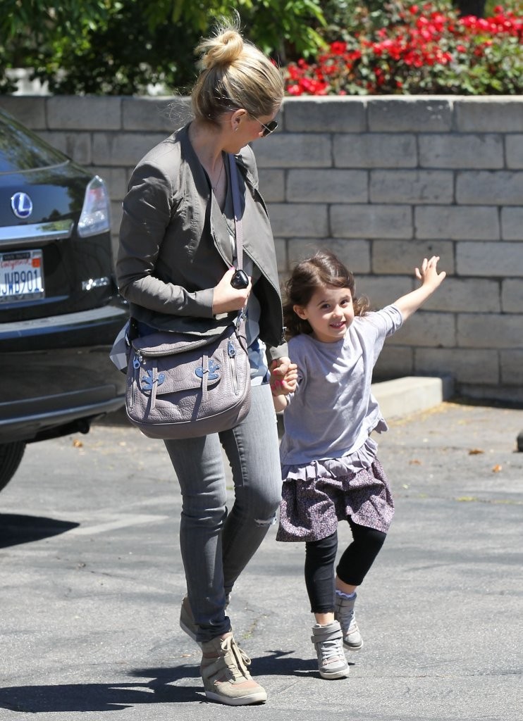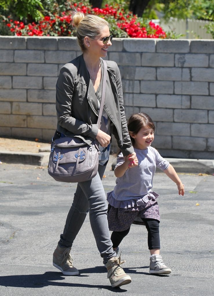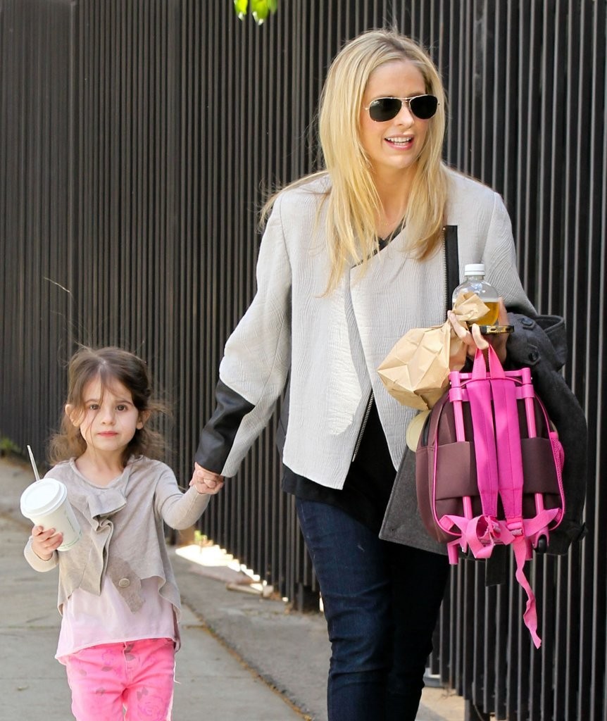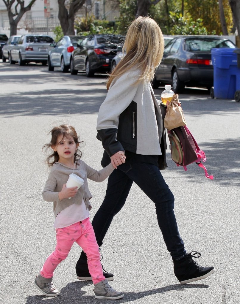 drops her daughter off at school in Santa Monica on february 21, 2013