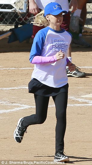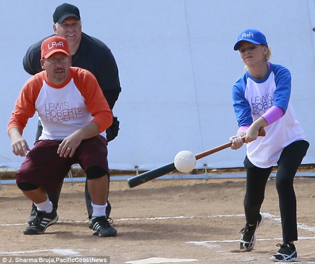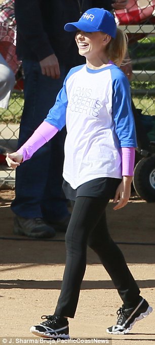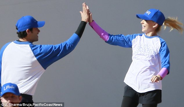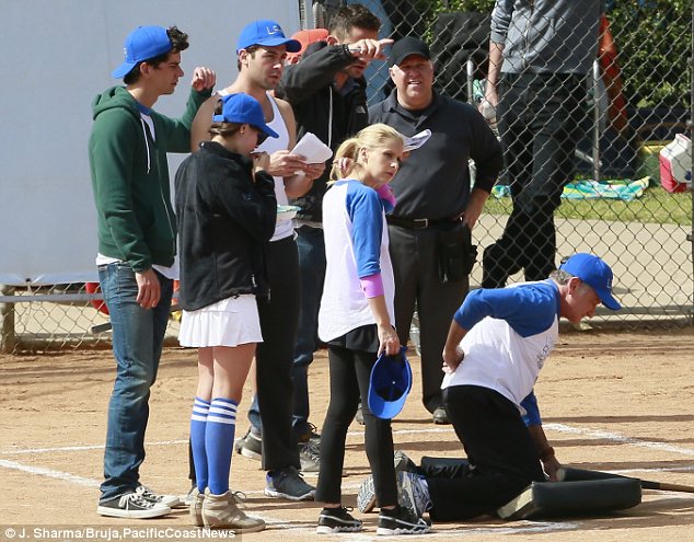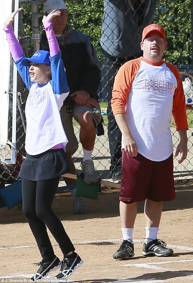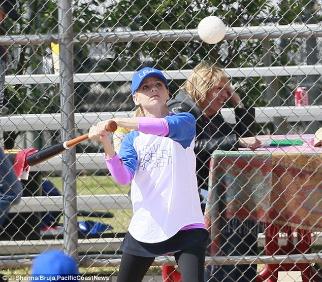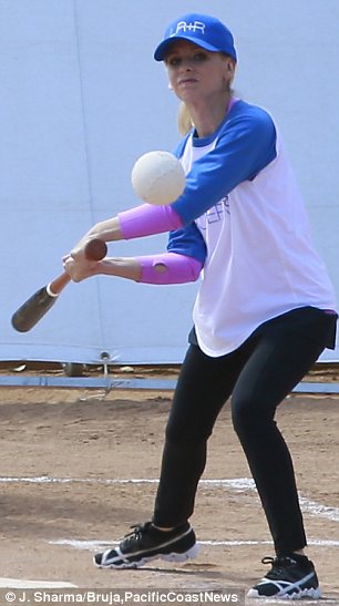 Sarah Michelle Gellar is in a playful mood on set as she films baseball game scenes for new comedy The Crazy Ones