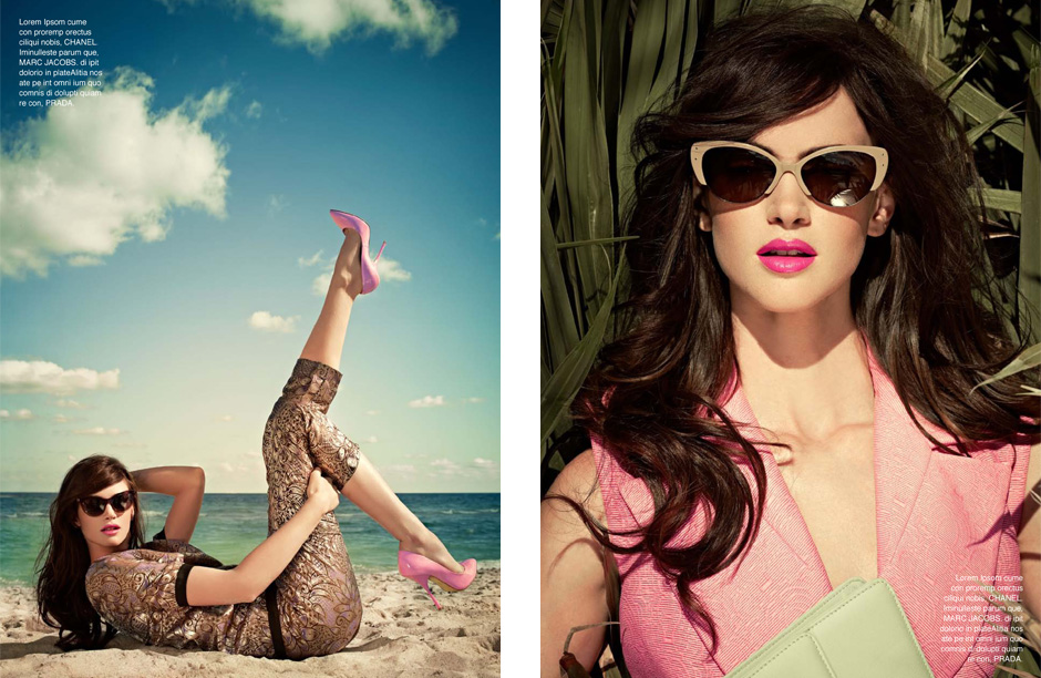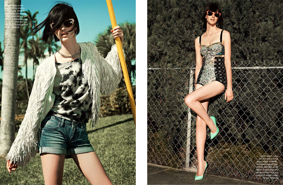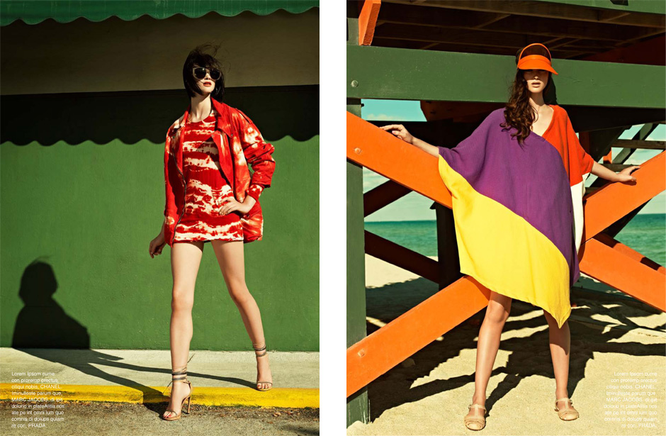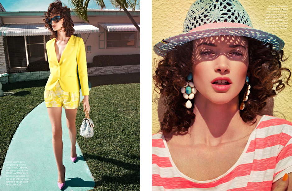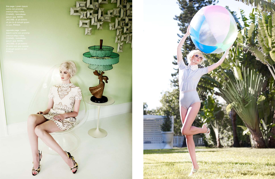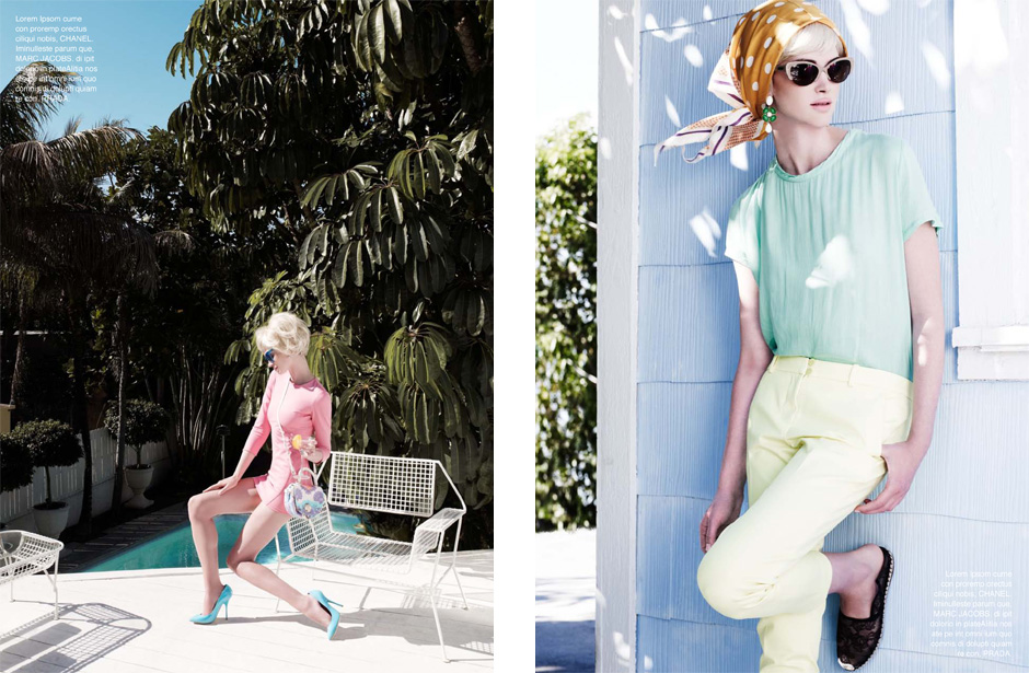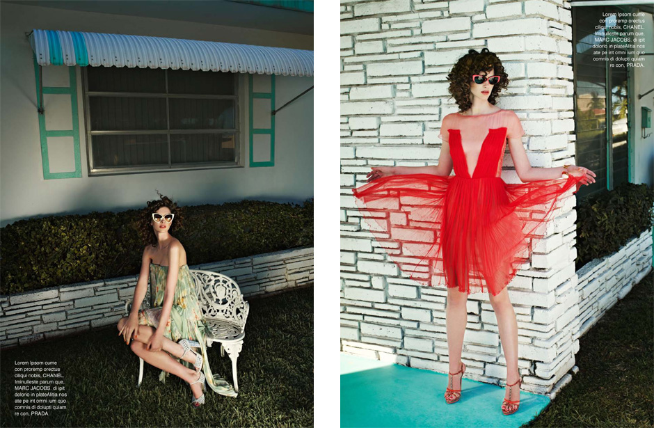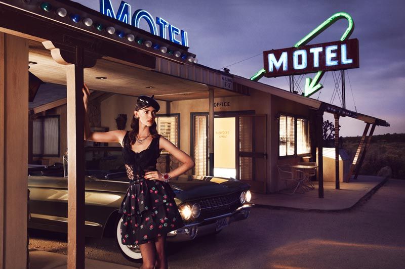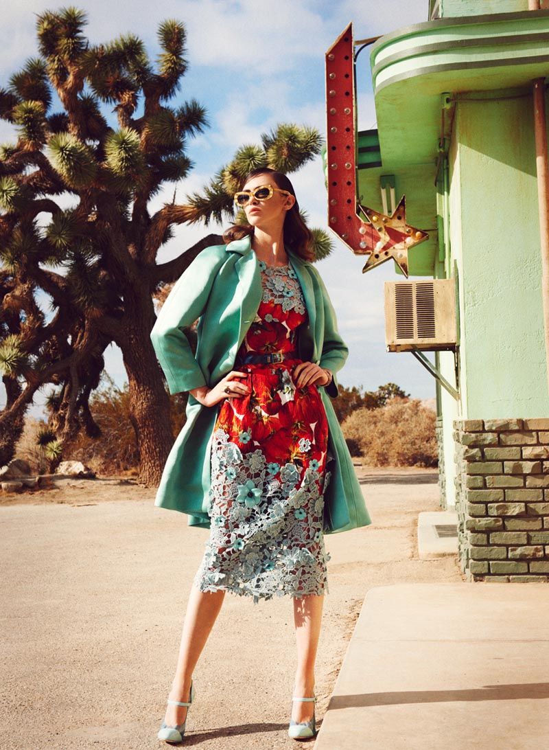 Hotel, Motel – Leo Krumbacher takes to the California desert with model Rachel Alexander for a recent edition of Grazia Germany. Garbed in retro inspired looks styled by Nino Cerone, Rachel hits a roadside motel in colorful designs from the likes of Dolce & Gabbana, Prada, Christopher Kane and Miu Miu with a confident sophistication. / Production by GlamPR, Retouching byRetouched.de