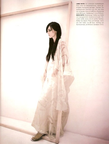 I was curious. I went there with a friend. It was Carmen Kass who had idea of this contest. I won in Estonia. Firstly it didn’t make any real change because I had to finish school. When my last exam was done I went to NY. The first trip to Milan was very unlucky, I was wearing _____ (how is in English those things which Ugly Betty wears on teeth?) so agencies’ bookers even didn’t waste their money on making my photo album.