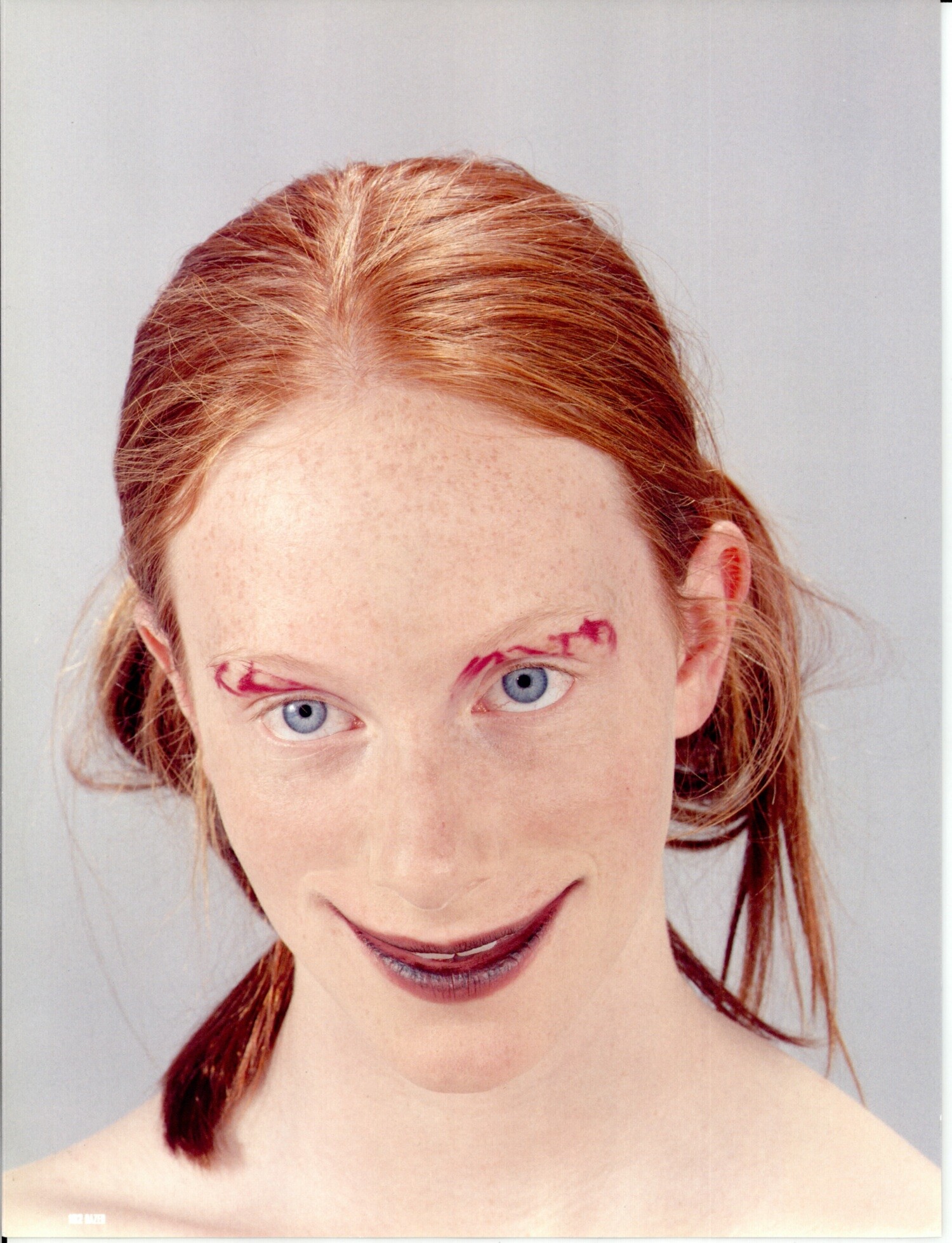 Magazine: Dazed & Confused #50 (January 1999) Title: Spot The Difference Photographer: Lee Jenkins Styling: Katie Grand Hair: Peter Gray Makeup: Charlotte Tilbury Model: Angus, Claire Elliot, Kate Elson