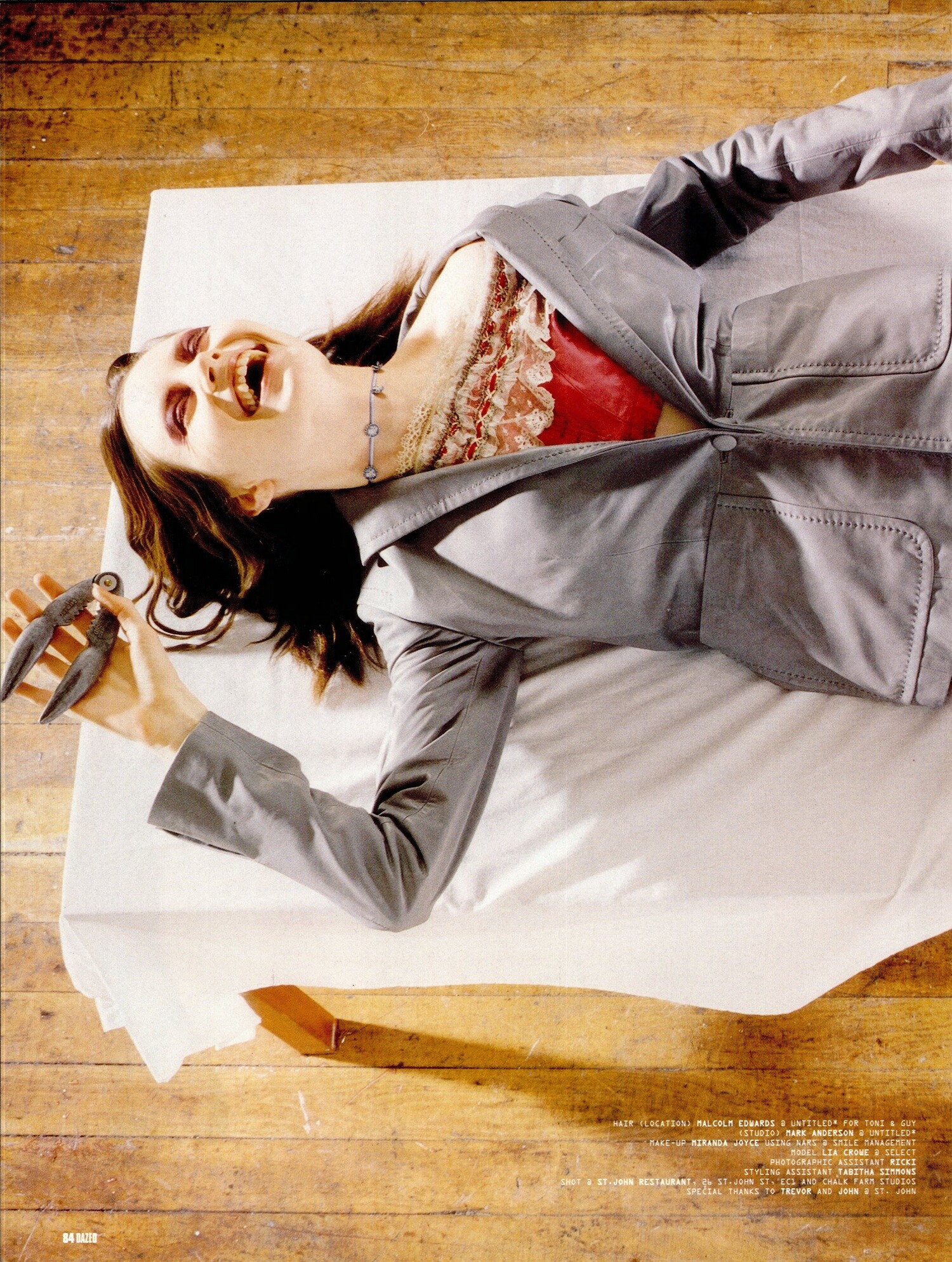 Magazine: Dazed & Confused #51 (February 1999) Title: Rock Lobster Photographer: Lee Jenkins Styling: Katie Grand Hair: Malcolm Edwards, Mark Anderson Makeup: Miranda Joyce Model: Lia Crowe
