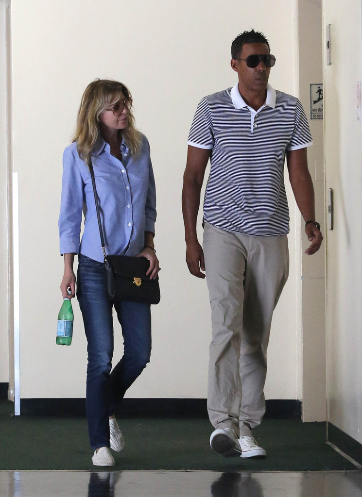 "Grey's Anatomy" actress Ellen Pompeo and her hubby Chris Ivery get sushi in West Hollywood, California on June 29th, 2012.MQS