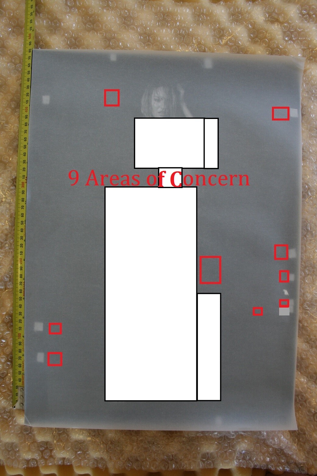 Overview (this is the surface I repositioned to after noticing the scratches and to take the photos) But it is the same amount of bubble wrap I placed beneath the book whilst on the table.