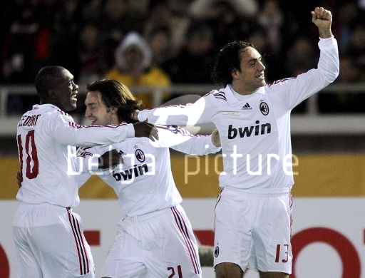 In stoppages the deadlock was finally broken by substitute Alberto Gilardino, who has been under fire recently for his poor form. Pato dispossessed Christian Obodo, Kaka's backheel sent Gila clear for a cool finish.