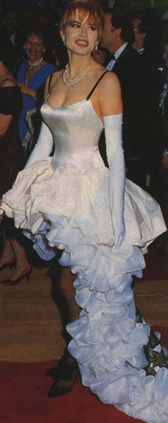 As a child, Geena dreamed of being an actress. While in high school, she felt left out and had low self esteem because, at 6 feet, she was the tallest girl in school. After high school, Geena entered New England College in New Hampshire and then transferred the next year to Boston University where she majored in drama. In 1979, she graduated and moved to New York to start her career. Her career consisted of sales clerk and waitress. She worked at Ann Taylor, where she eventually rose to Saturday window mannequin while trying to get a job with a modeling agency. Eventually signed by the Zoli Agency at the advanced age of 23, she wound up as a model in the Victoria Secret's Catalogue. Ever vigilant, Sydney Pollack was looking for new talent in the catalogue when he spotted Geena and cast her in Tootsie (1982). With good reviews, Geena moved to Los Angeles where she was cast as Wendy in the short-lived, but critically acclaimed Television Series "Buffalo Bill" (1983). Her next appearance on Television was in her own show "Sara" (1985) which was also good, but soon canceled. She then returned to the big screen in the below average Transylvania 6-5000 (1985) followed by the successful Chevy Chase movie Fletch (1985). From there on, she was on a roll with future husband Jeff Goldblum in the horror remake of The Fly (1986). More successful were Tim Burton's dark comedy Beetle Juice (1988) and The Accidental Tourist (1988). For the last film, she was the surprise winner of the Oscar for Best Supporting Actress. More fun movies followed with the flying saucer in the pool Earth Girls Are Easy (1988) and everyone loves a clown Quick Change (1990) with Bill Murray. The very successful Thelma & Louise (1991), directed by Ridley Scott, again garnered nominations for the Academy Award and Golden Globe. A League of Their Own (1992) with Tom Hanks and directed by Penny Marshall, was the turning point as her next film _Hero (1992)_ was only average. Then she married director Renny Harlin and they set up a production and development company called "The Forge". Their first film was Speechless (1994) which flopped at the box office. Undeterred, Renny decided to film the big budget Cutthroat Island (1995) starring pirate Geena, which also flopped. Geena has since starred in the thriller, The Long Kiss Goodnight (1996) and played Eleanor Little in Stuart Little (1999) and Stuart Little 2 (2002).