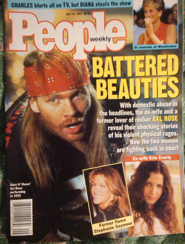 that's Axl Rose, leader of the rock band "Guns and Roses", they've been together for a few years in the early 90's....Stephanie appeared in their music videos of "November rain" and "Don't cry"