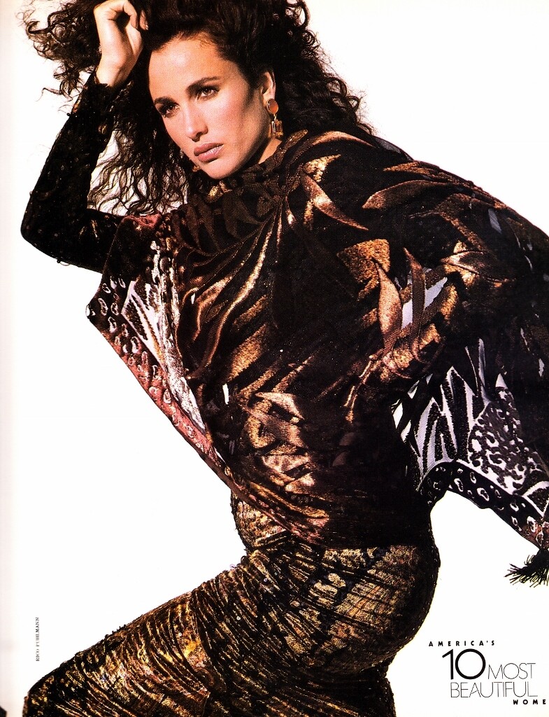 US Harper's Bazaar September 1987 America's 10 Most Beautiful Women Model/Star: Andie McDowell Photographer: Rico Puhlmann Hair: Gabriel Saba Makeup: Kevyn Aucoin