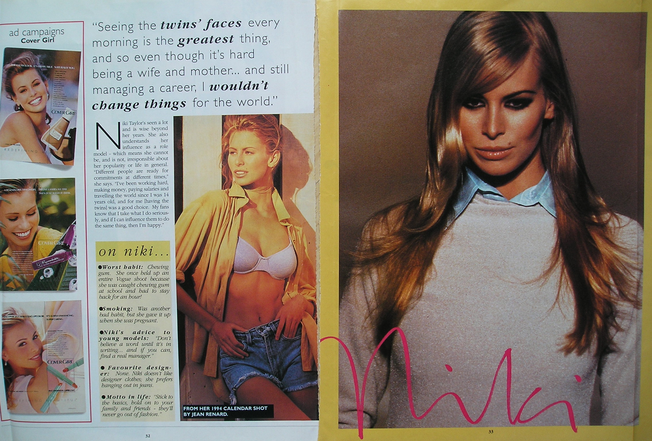 This round cutout "NIKI TAYLOR" on the contents page maybe is not from this issue. I´ve put it just on this page, because it´s from the same serie.