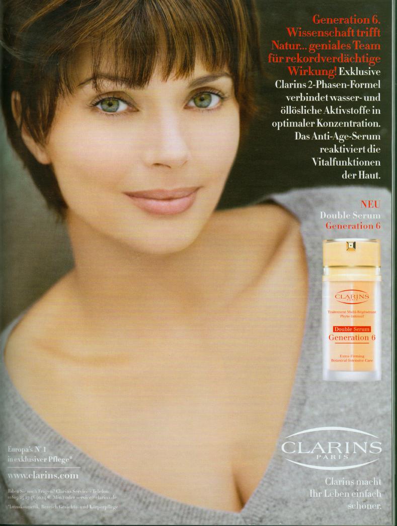 I just saw, walking past the chemist's window, that Heather is model used in the (new) Clarins 'Generation 6' advertising! Haven't spotted anything in print yet.