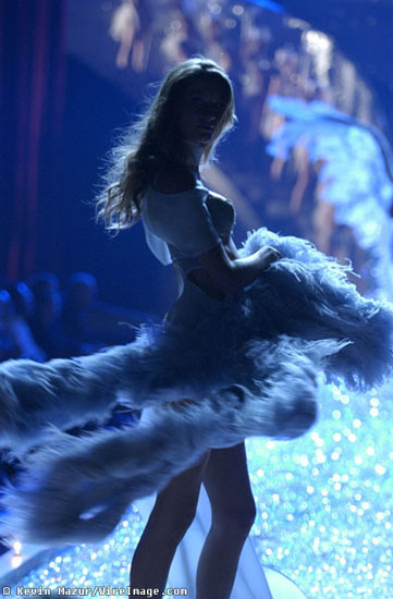 You can see Heidi's wings get stuck under the "S" and her stepping on Tyra's train at the end of this one