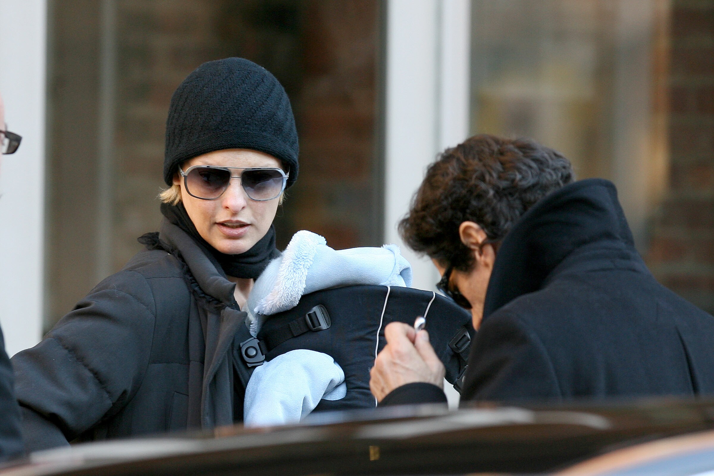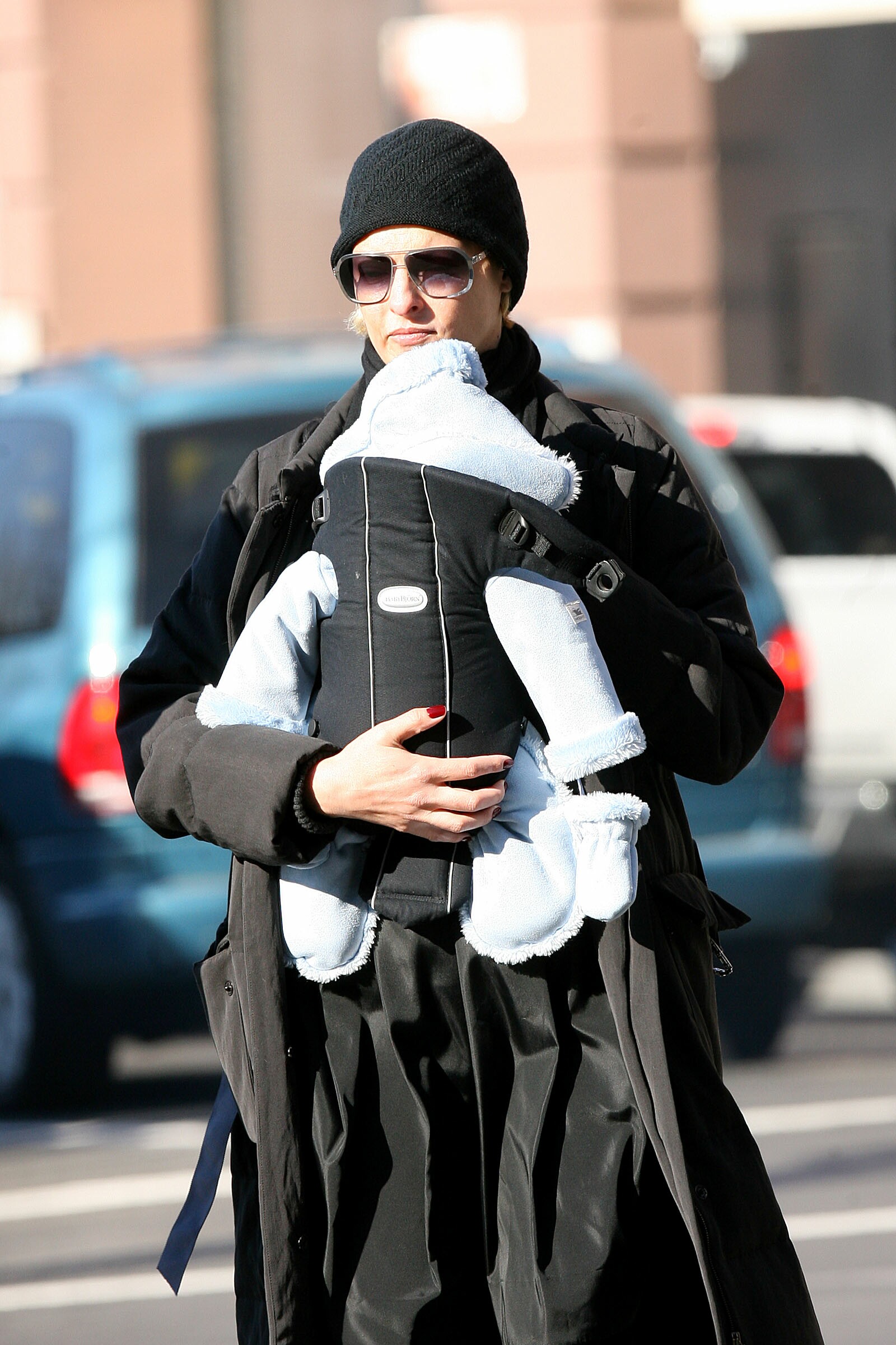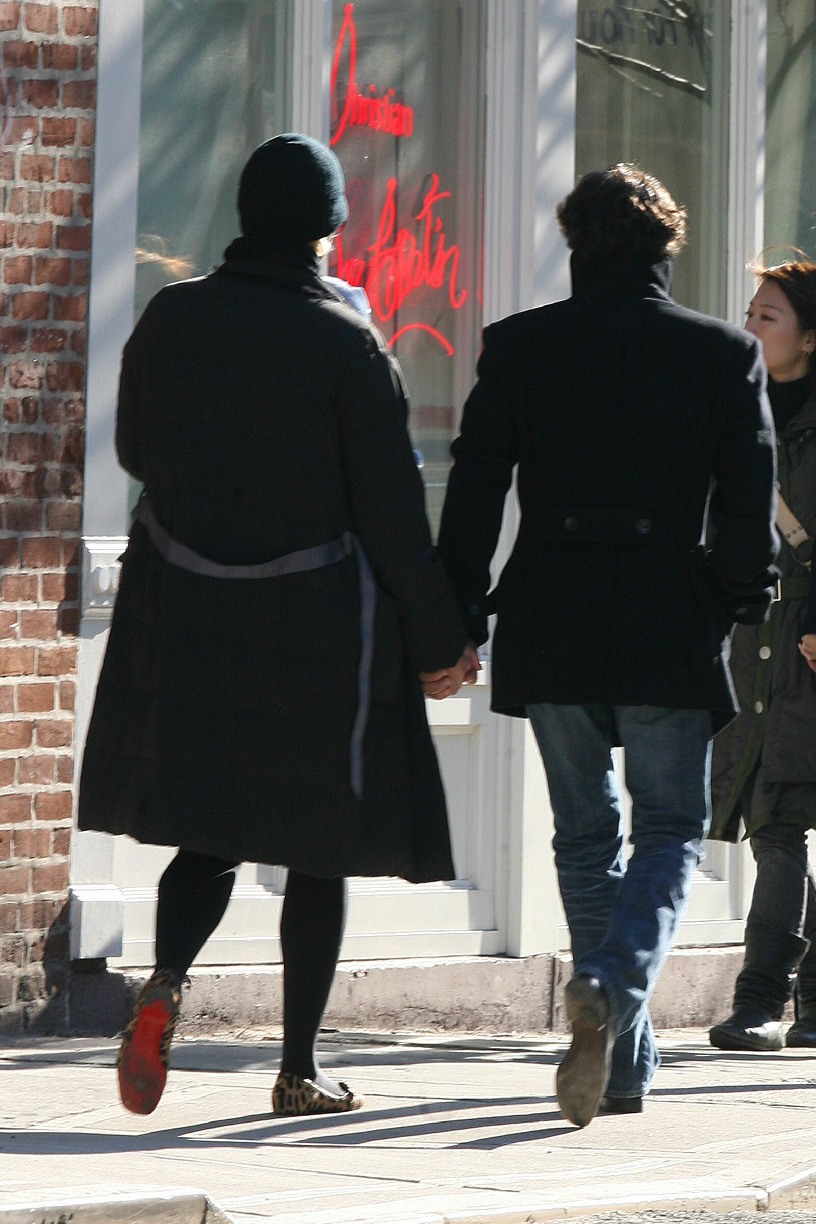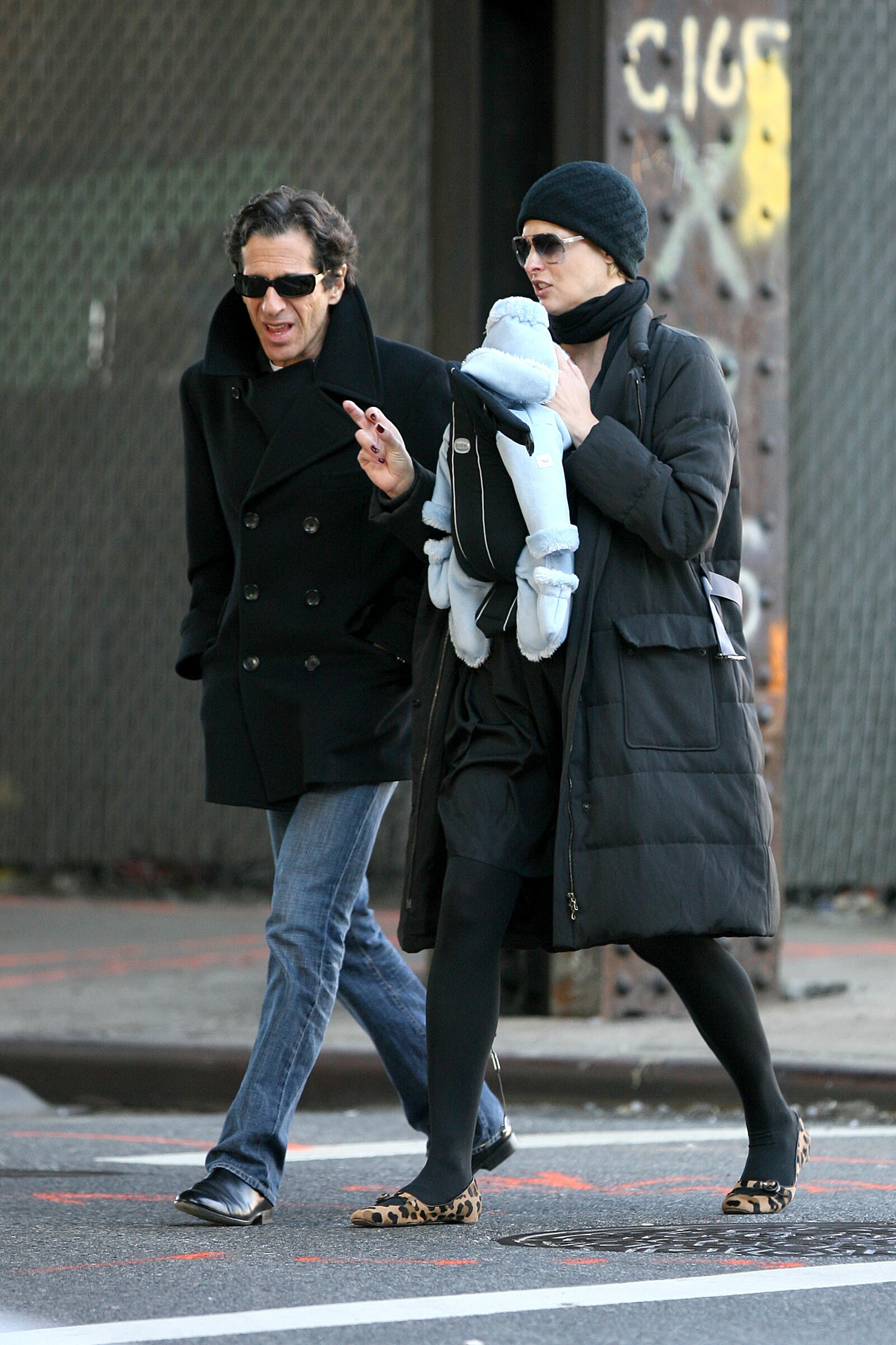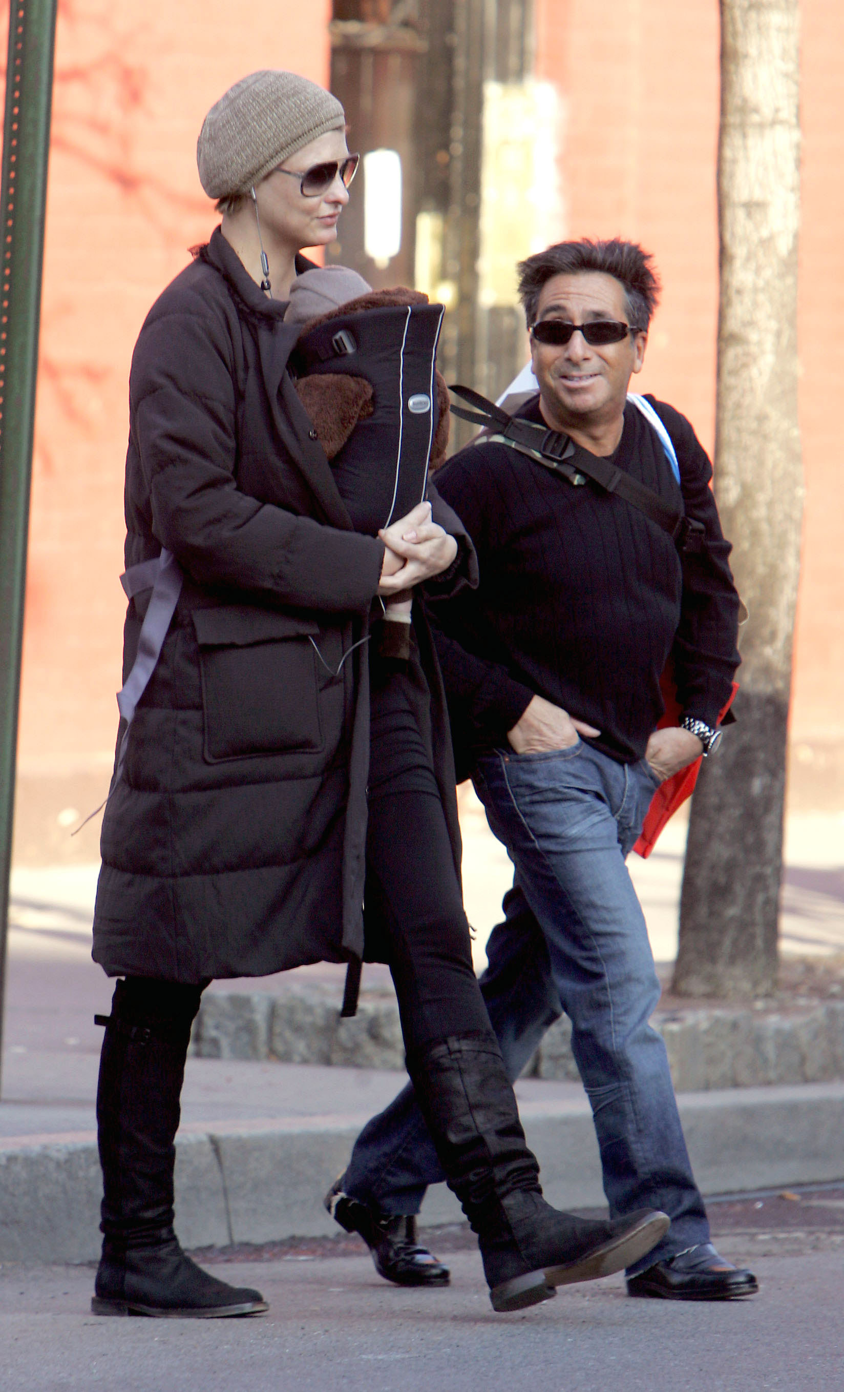 Linda Evangelista and Hard Rock Cafe founder Peter Morton take Linda's new baby son, Augustin James Evangelista for a stroll in NYC. Linda and Peter were seen holding hands as they walked to a trendy shoe store and then cuddled while waiting for help from a shop assistant. The possible couple looked very happy as they shopped in 4 other stores before heading back to Linda's apartment. December 2006.