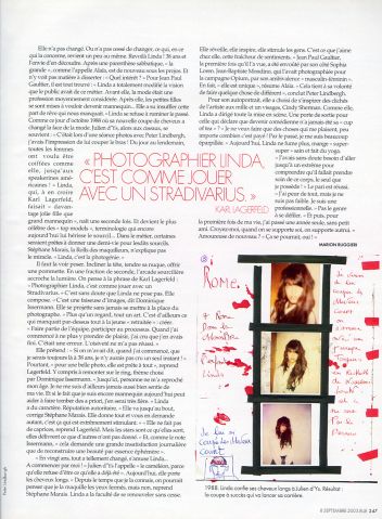 From the special Linda issue (she did all the editorial modelling) of French Elle - 8th September 2003.