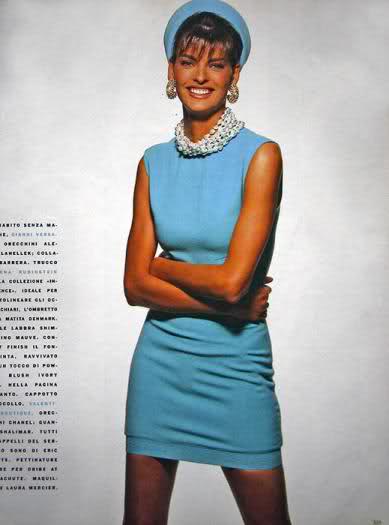 Supermodel Linda Evangelista poses in front of blown up proofs featuring her on the cover of the first edition of the new Korean language Vogue magazine in Seoul July 18, 1996. Vogue entered a joint venture with Doosan Dong-A earlier this year to bring to fruition the concept of a Korean Vogue, making Korea the third country in the Asia-Pacific region to launch a local edition of the magazine.
