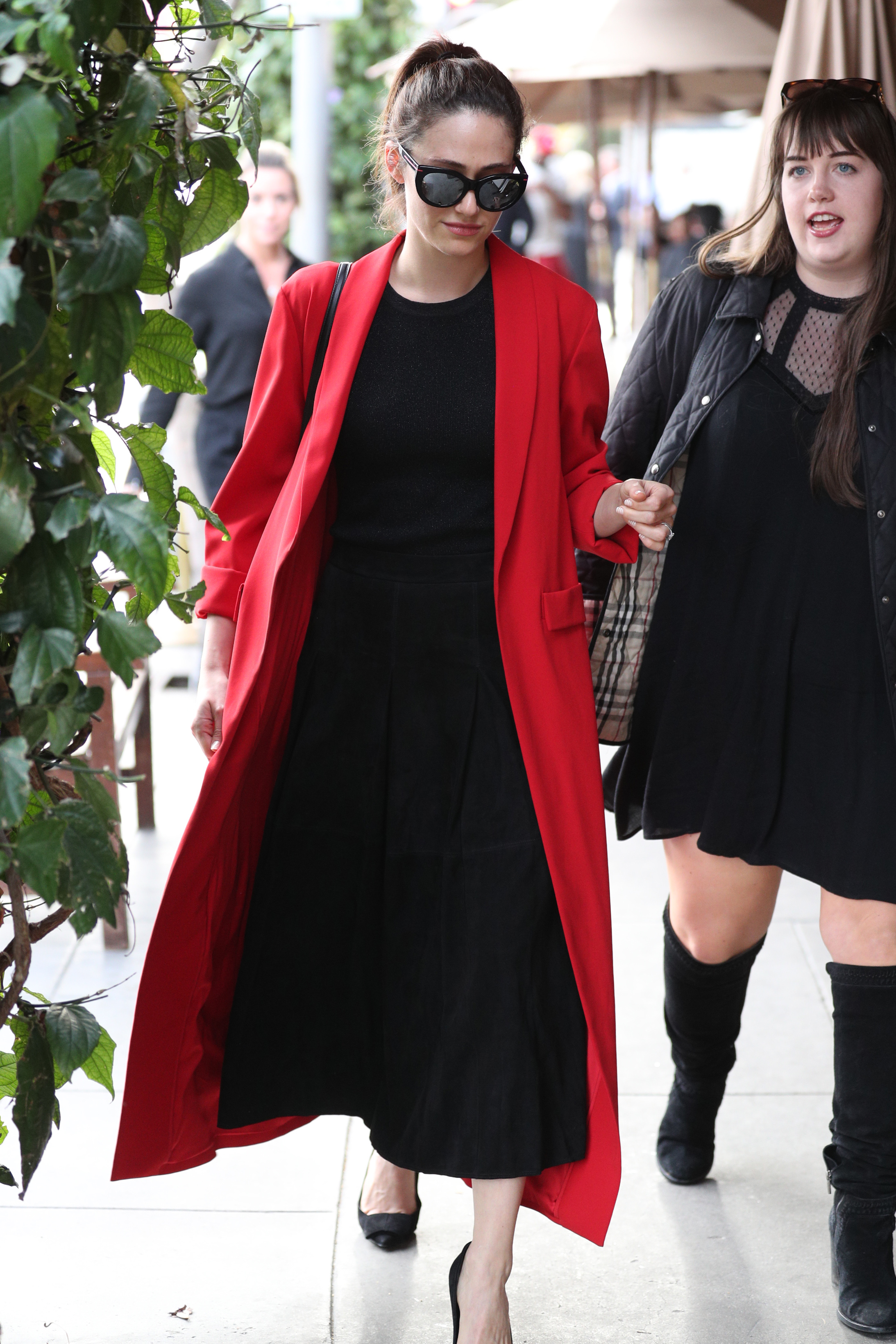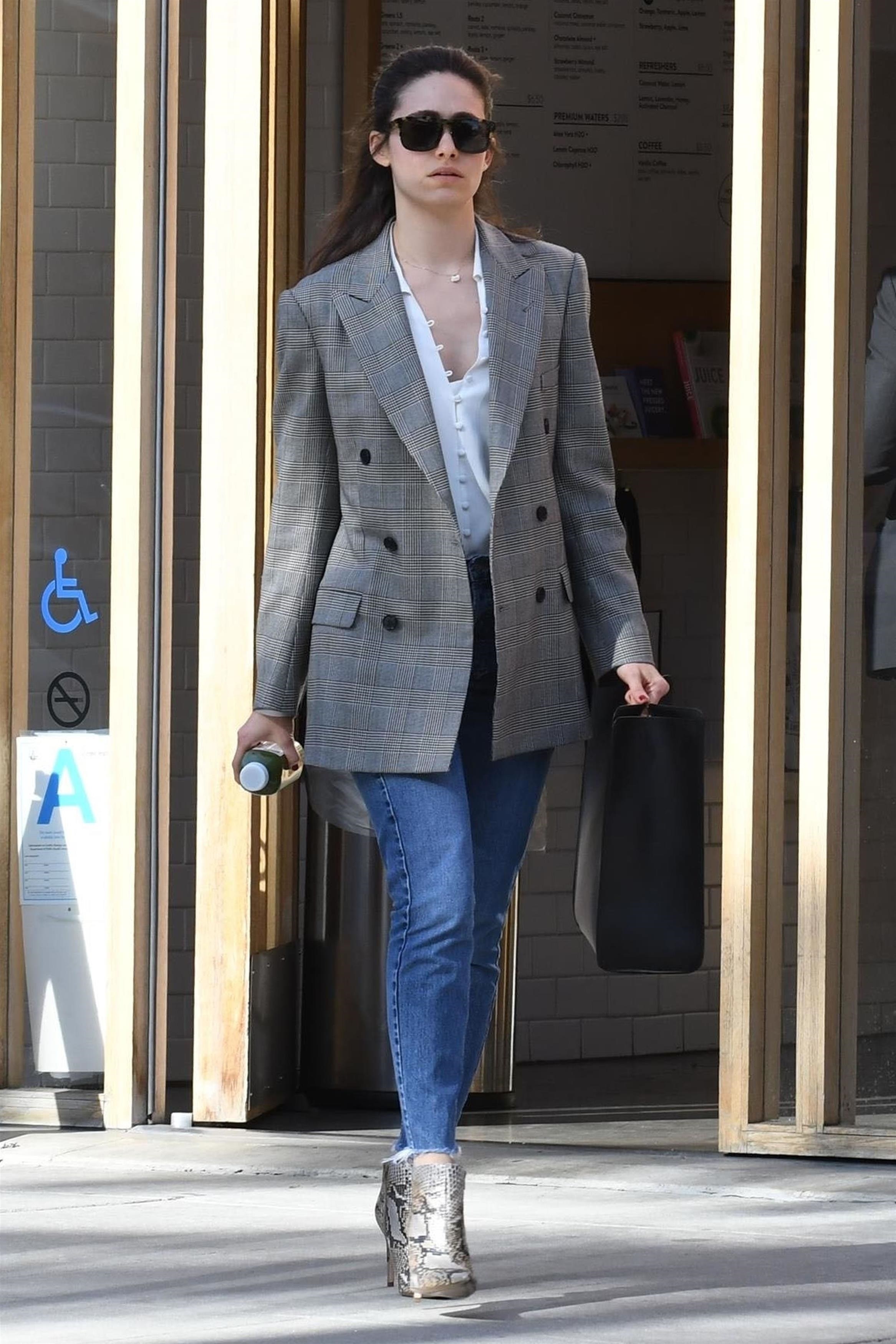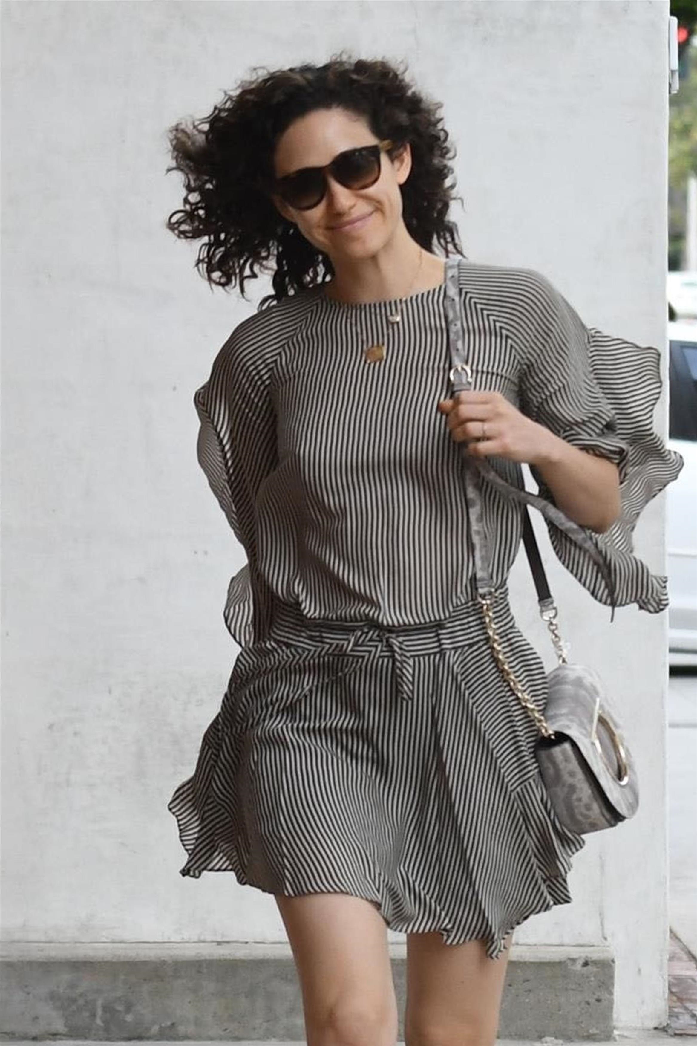 Emmy Rossum - wearing pants that match wallpaper 03/30/18