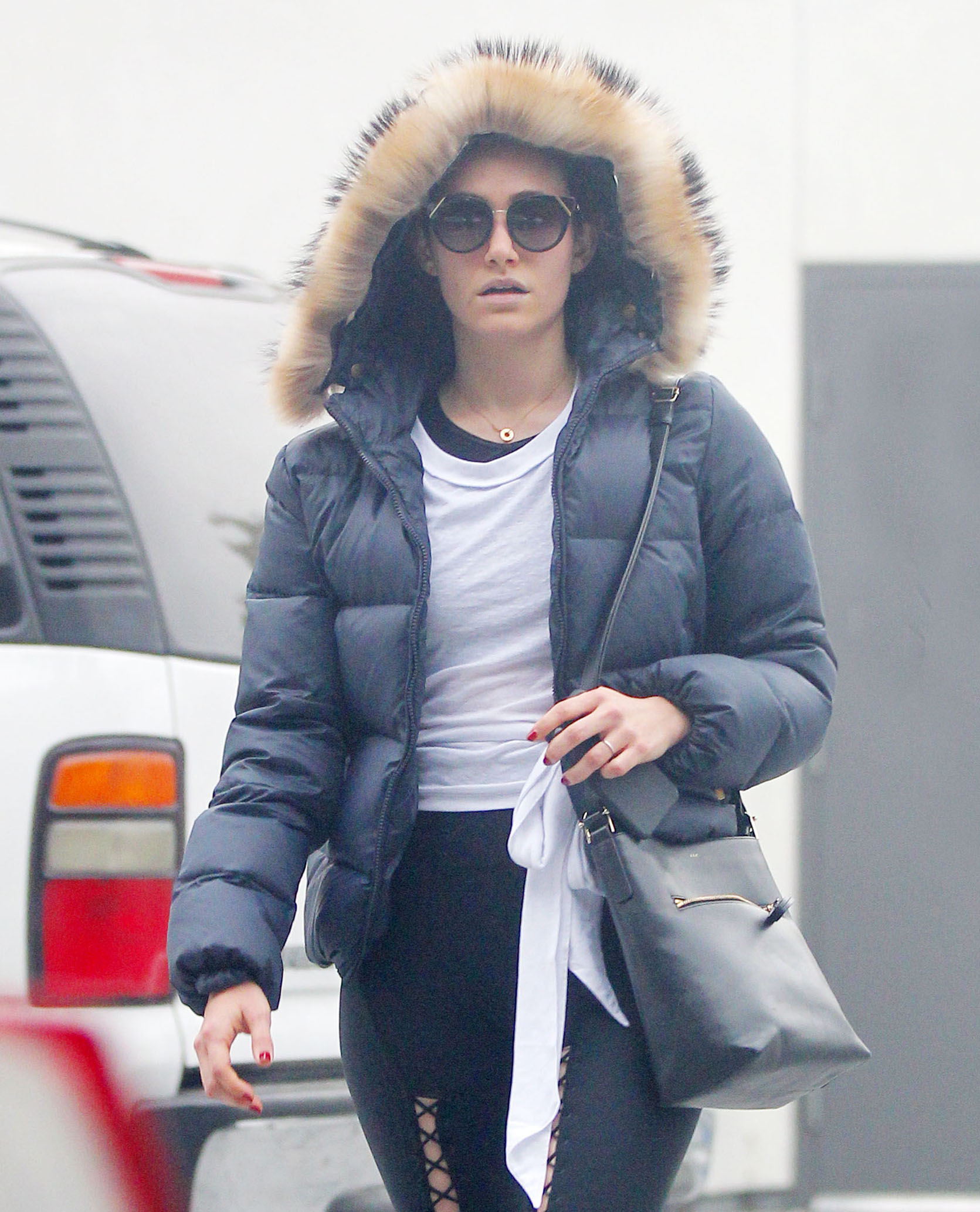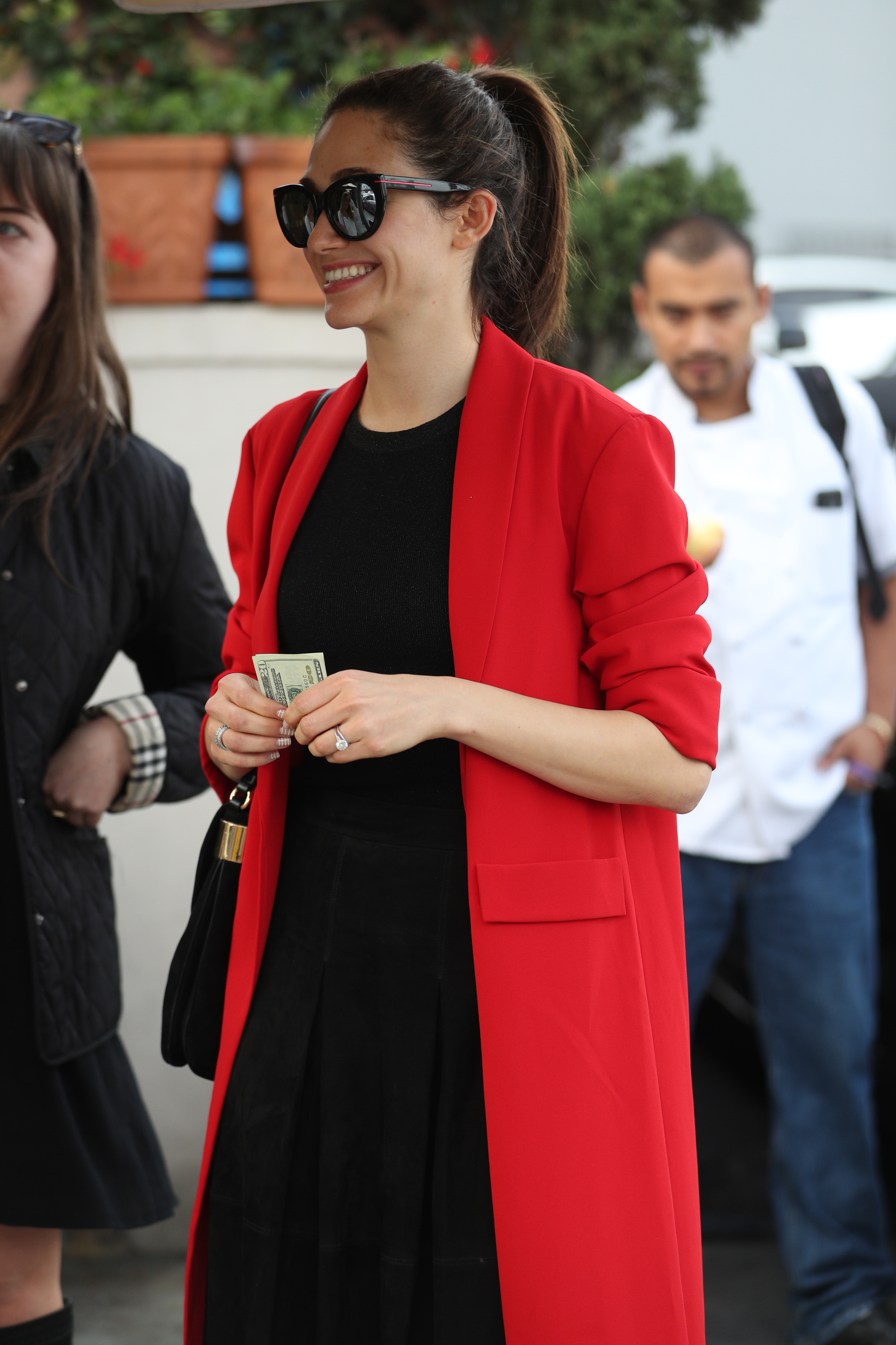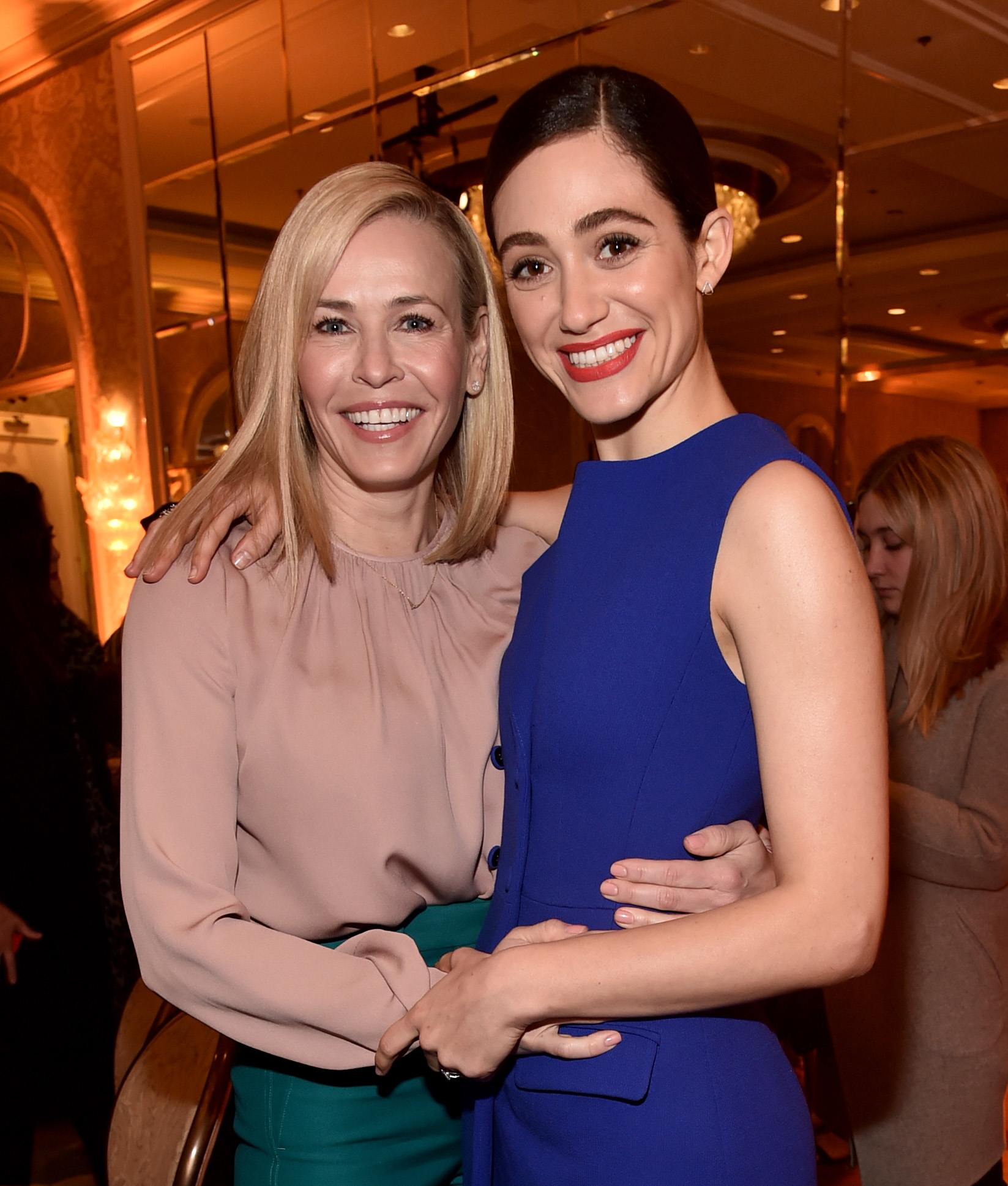 Emmy Rossum - wearing pants that match wallpaper 03/30/18