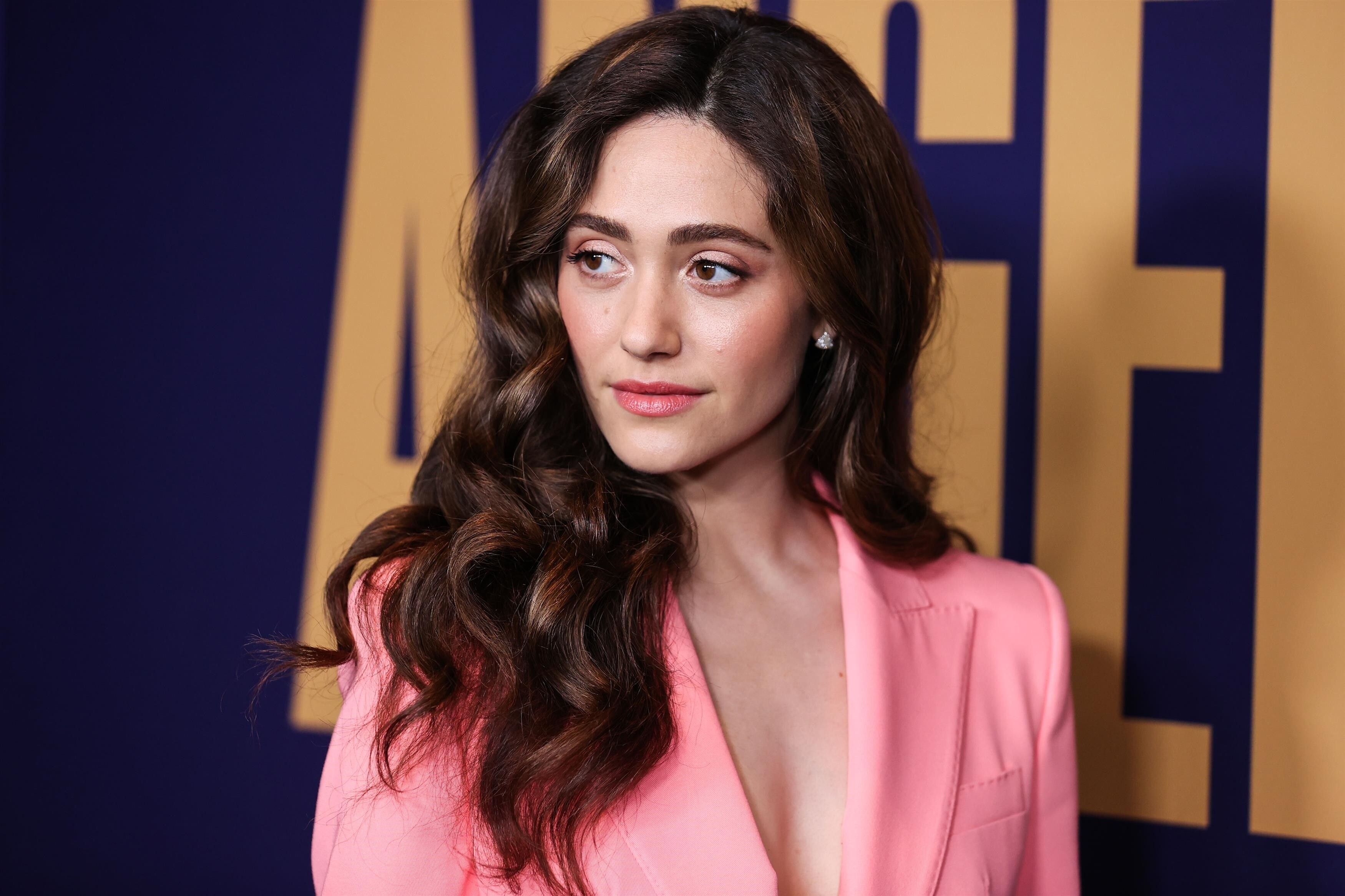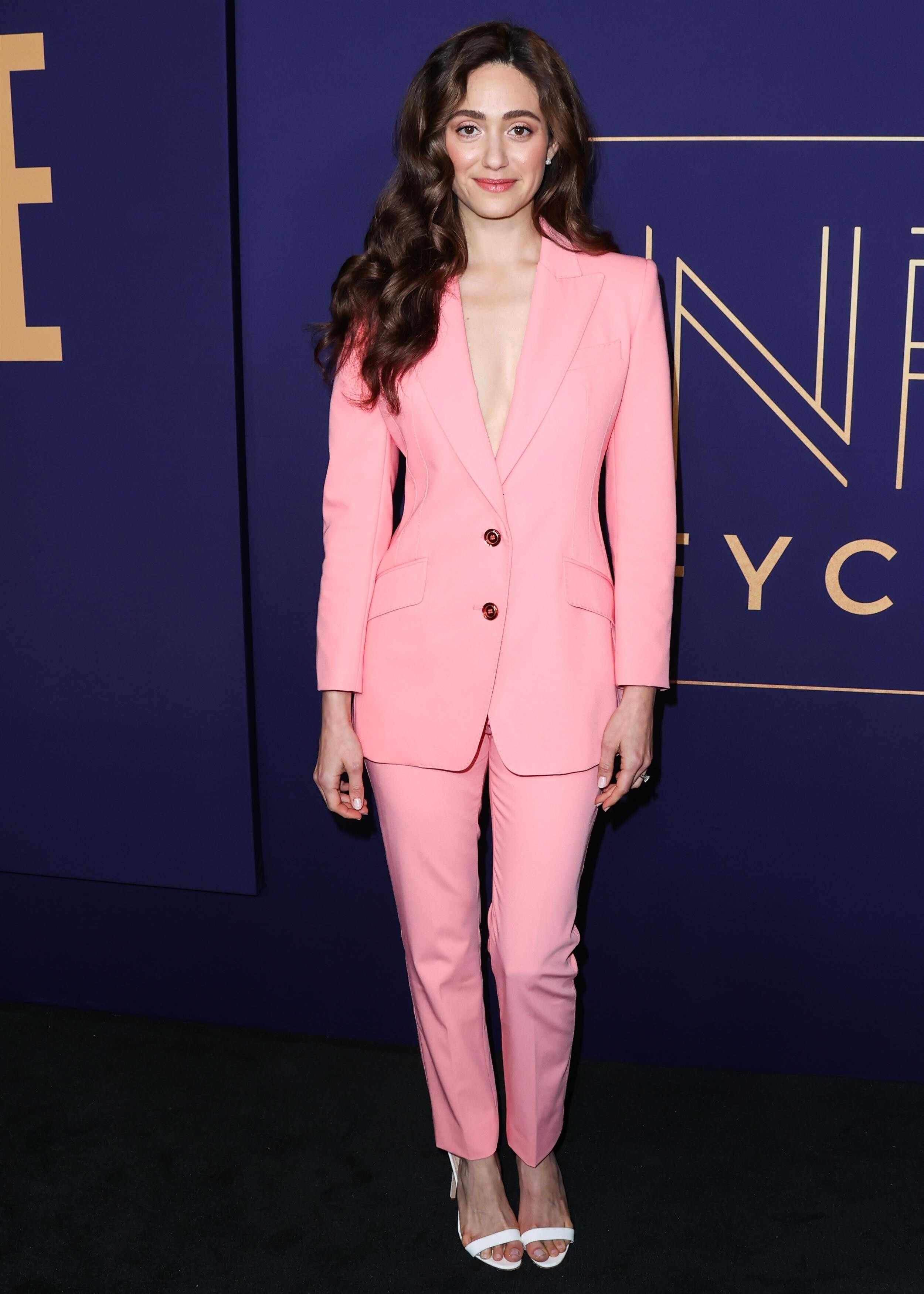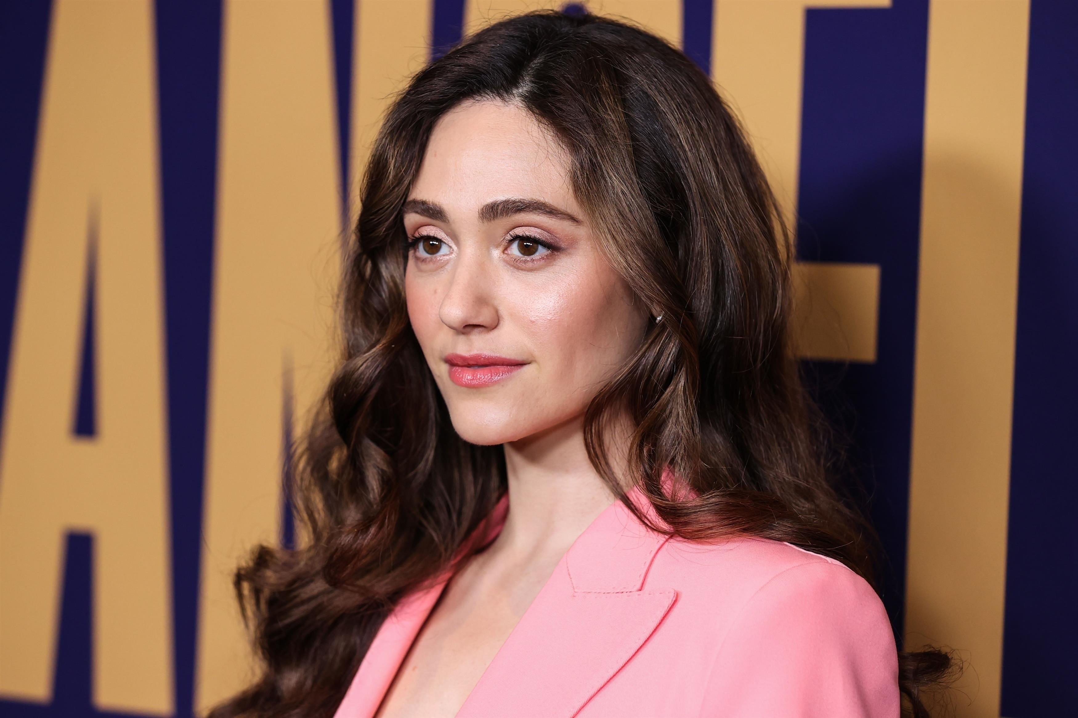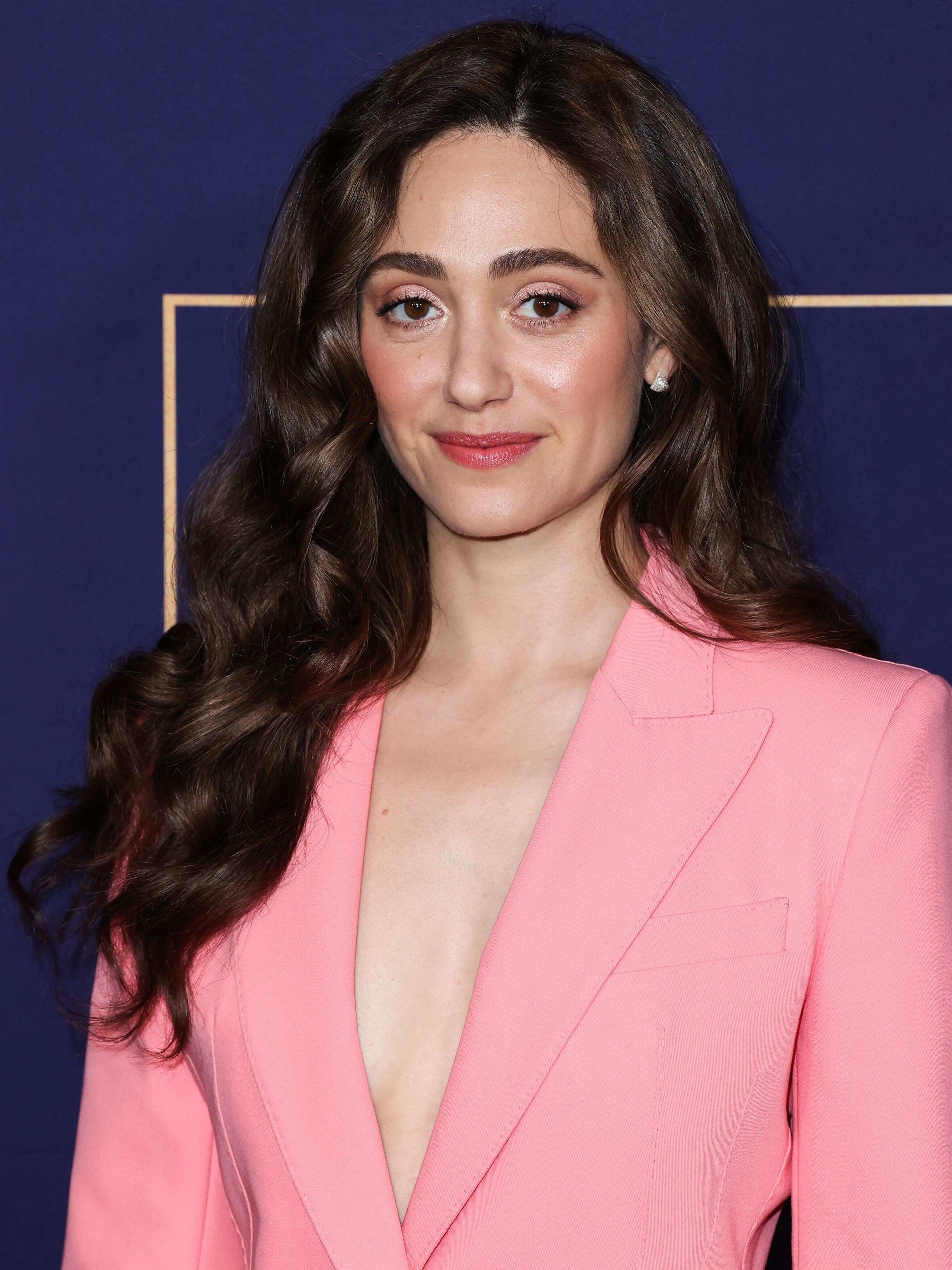 Emmy Rossum in a plunging white mini dress 06/08/2022