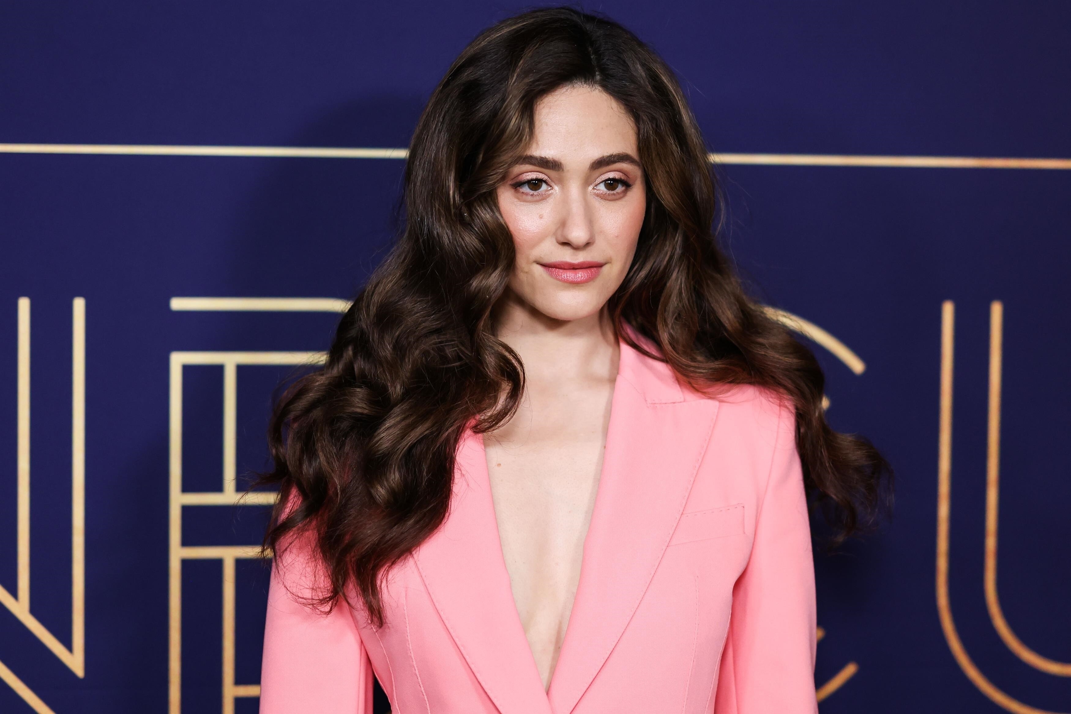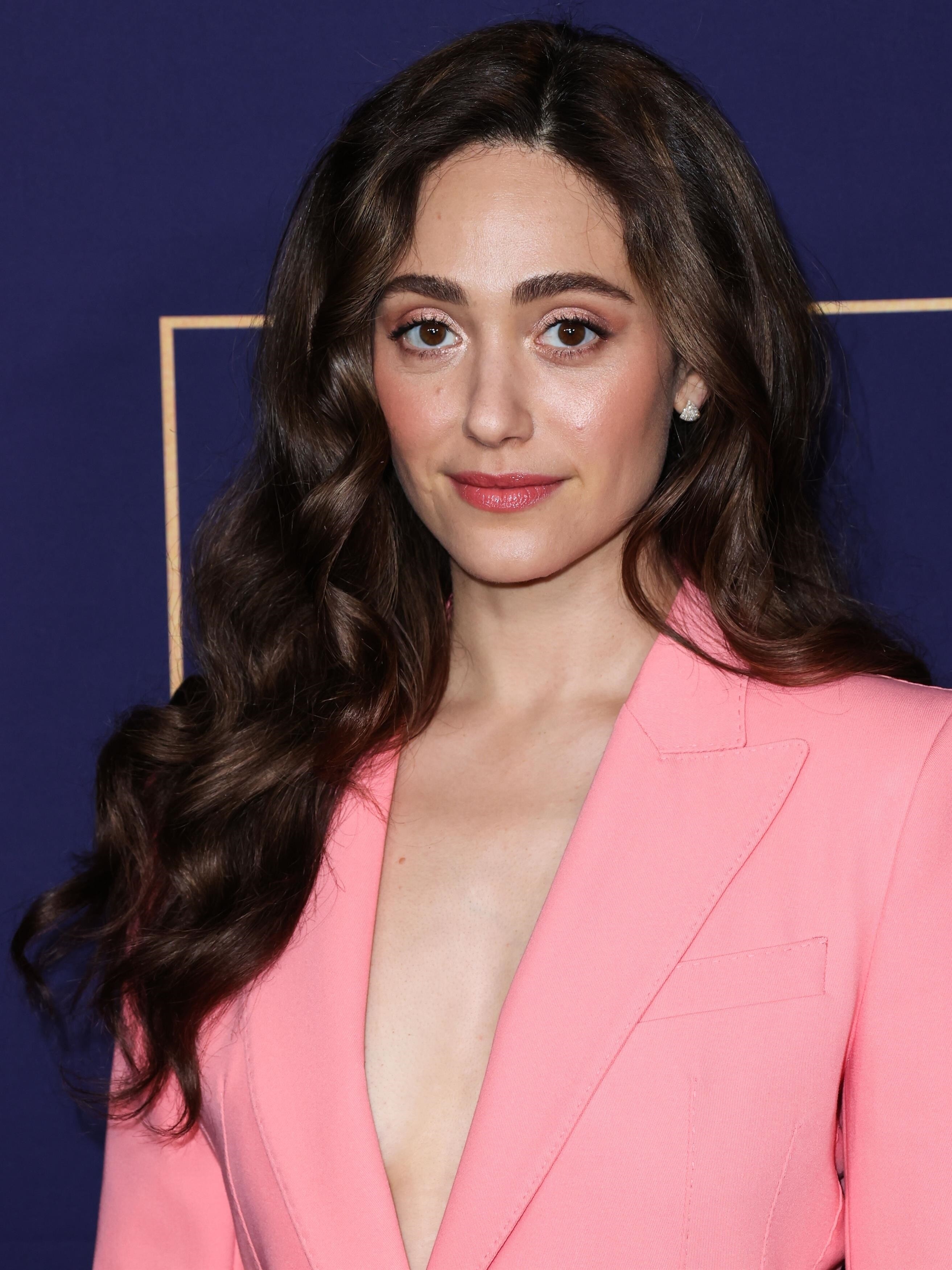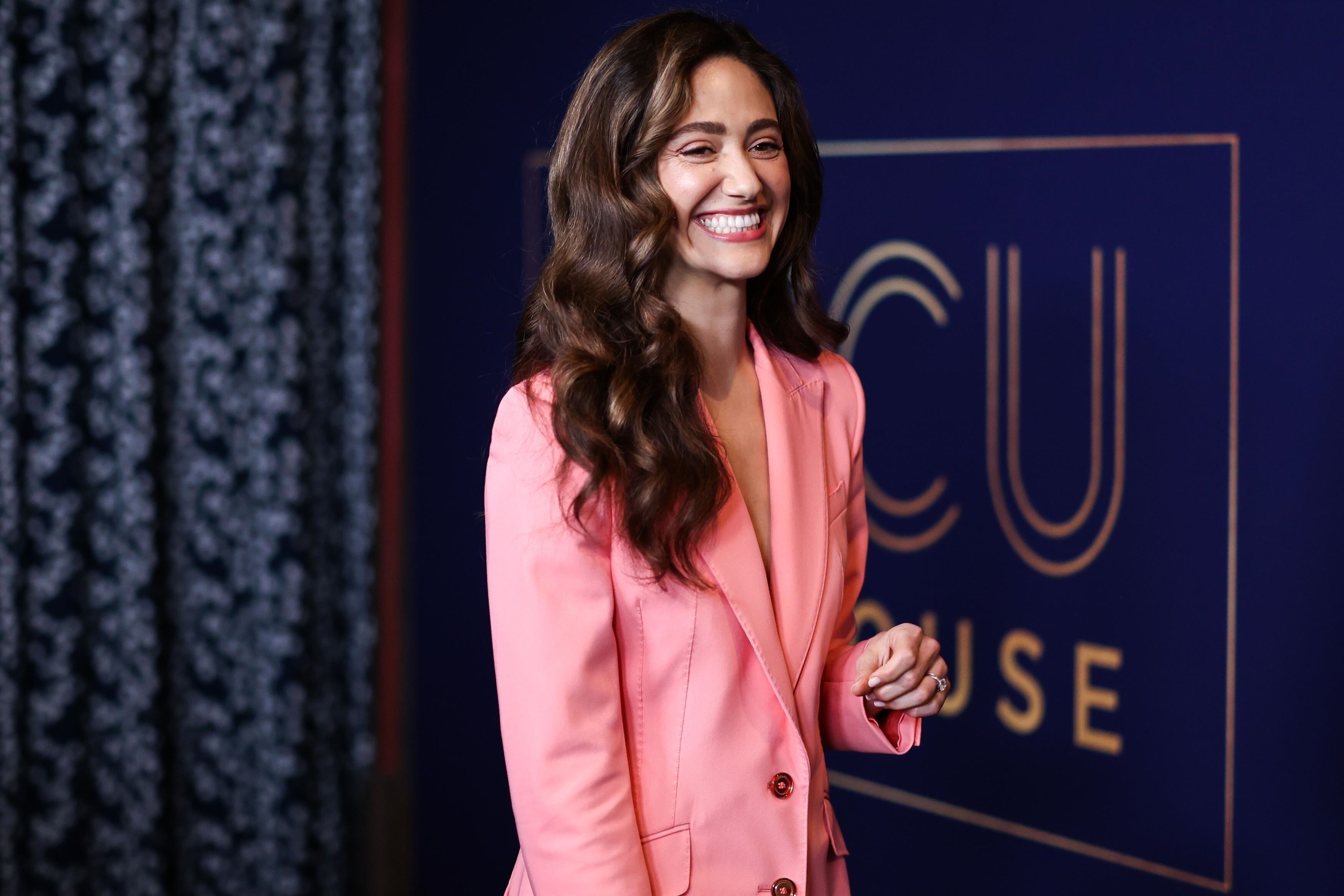 Emmy Rossum in a plunging white mini dress 06/08/2022
