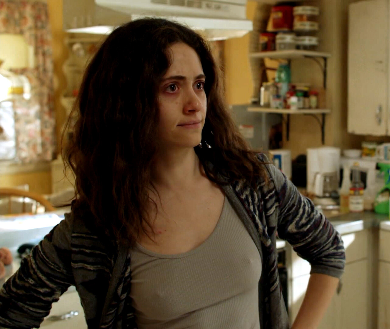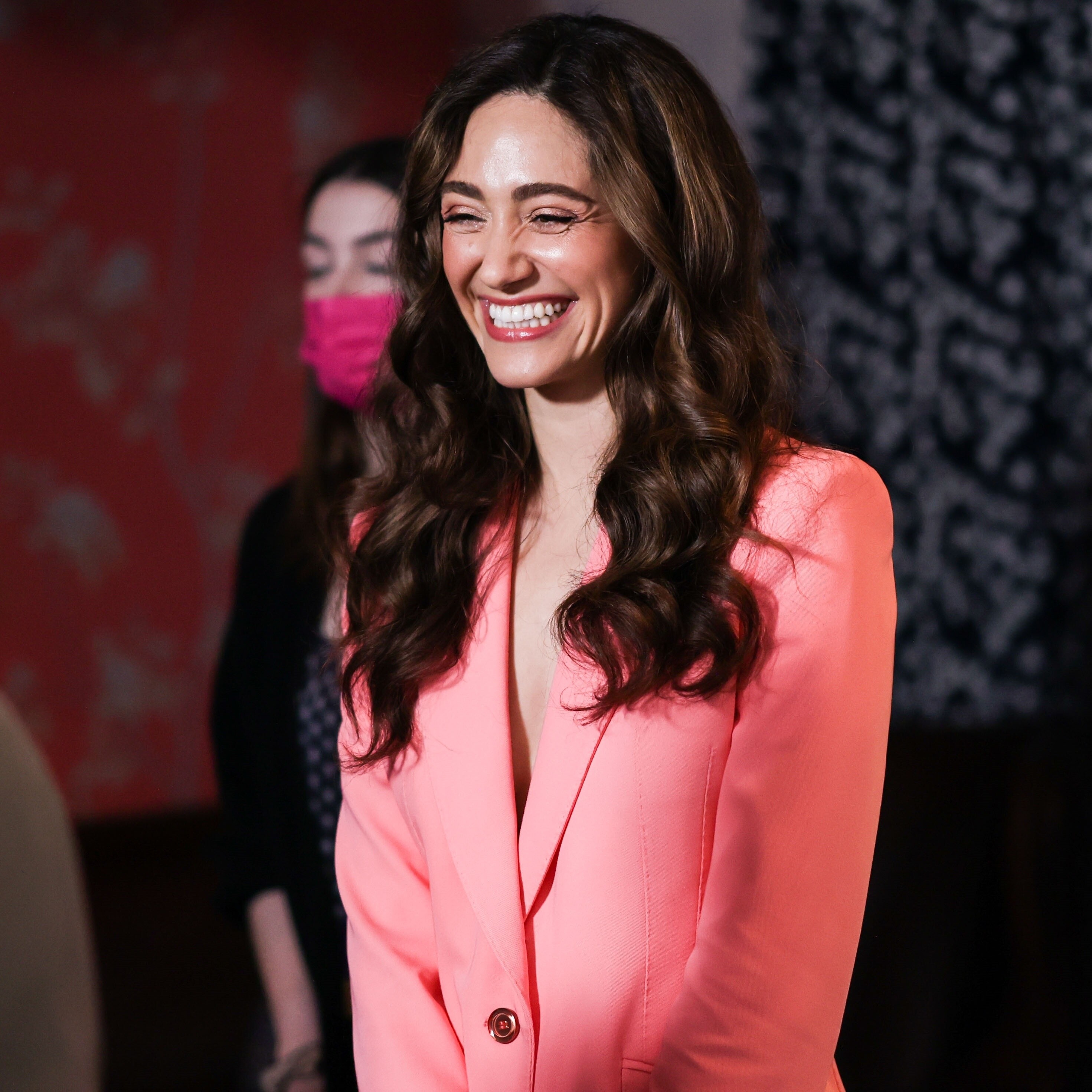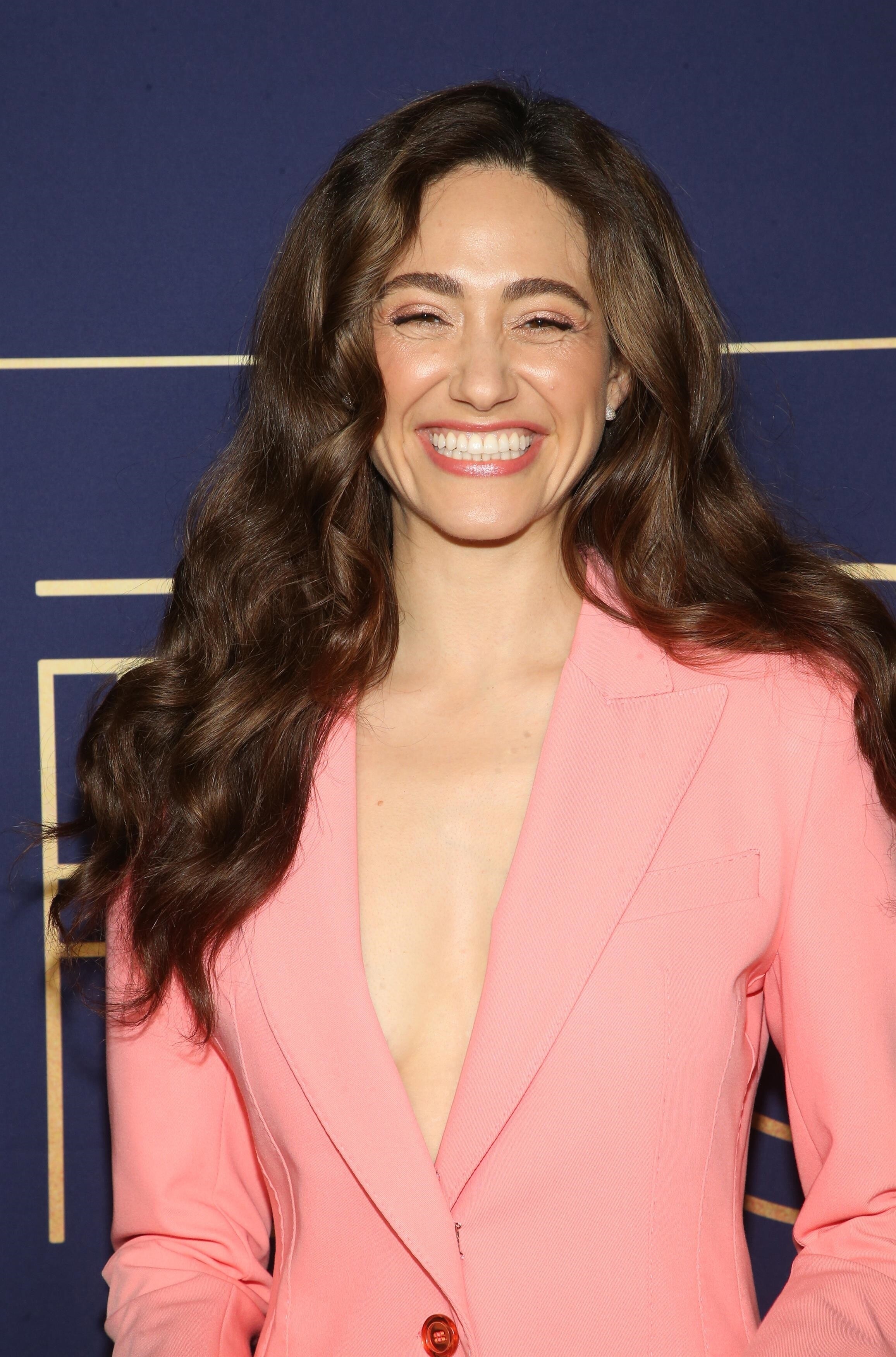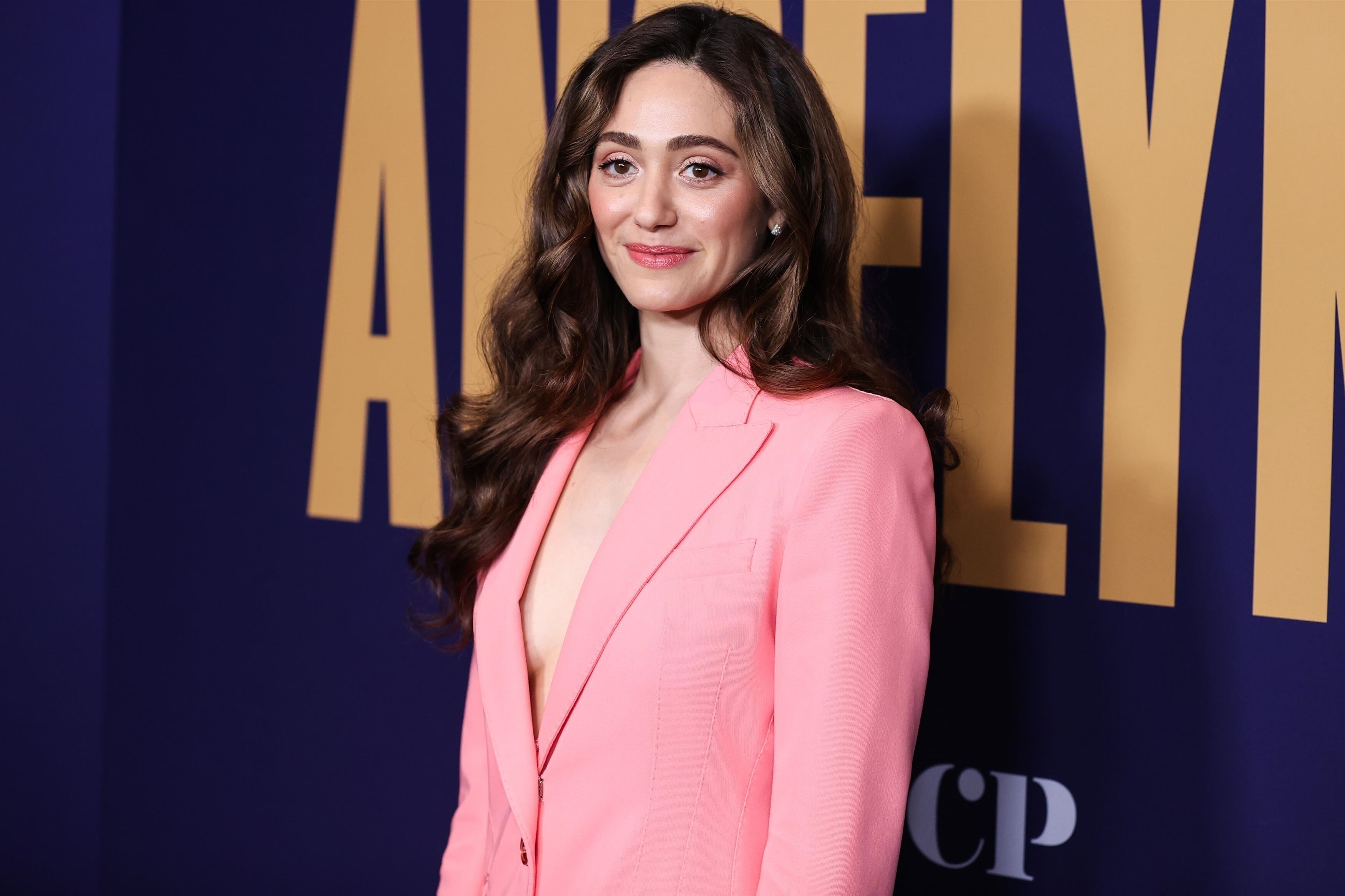 Emmy Rossum in a plunging white mini dress 06/08/2022