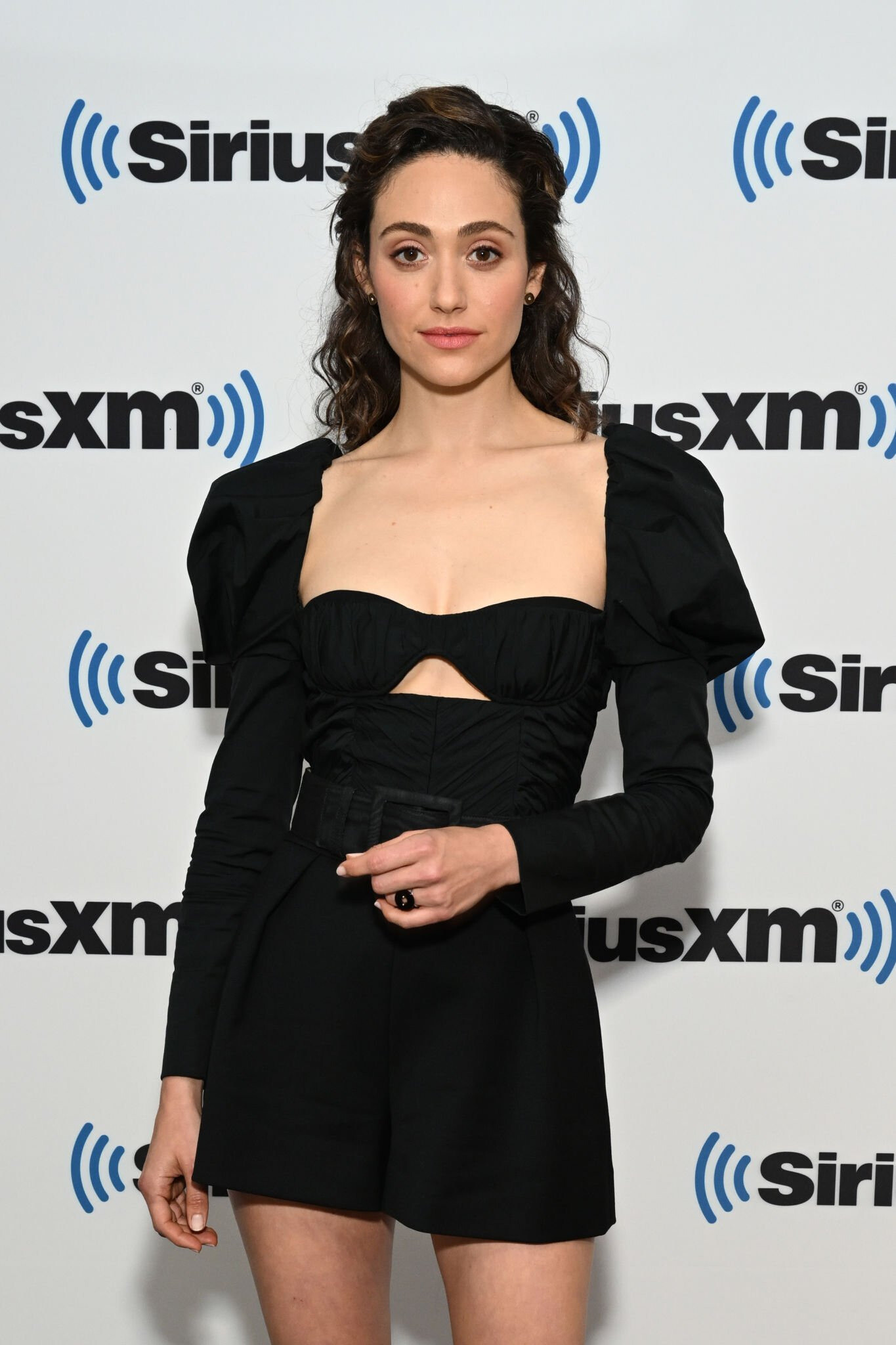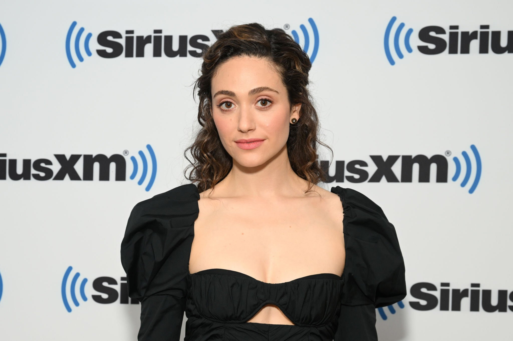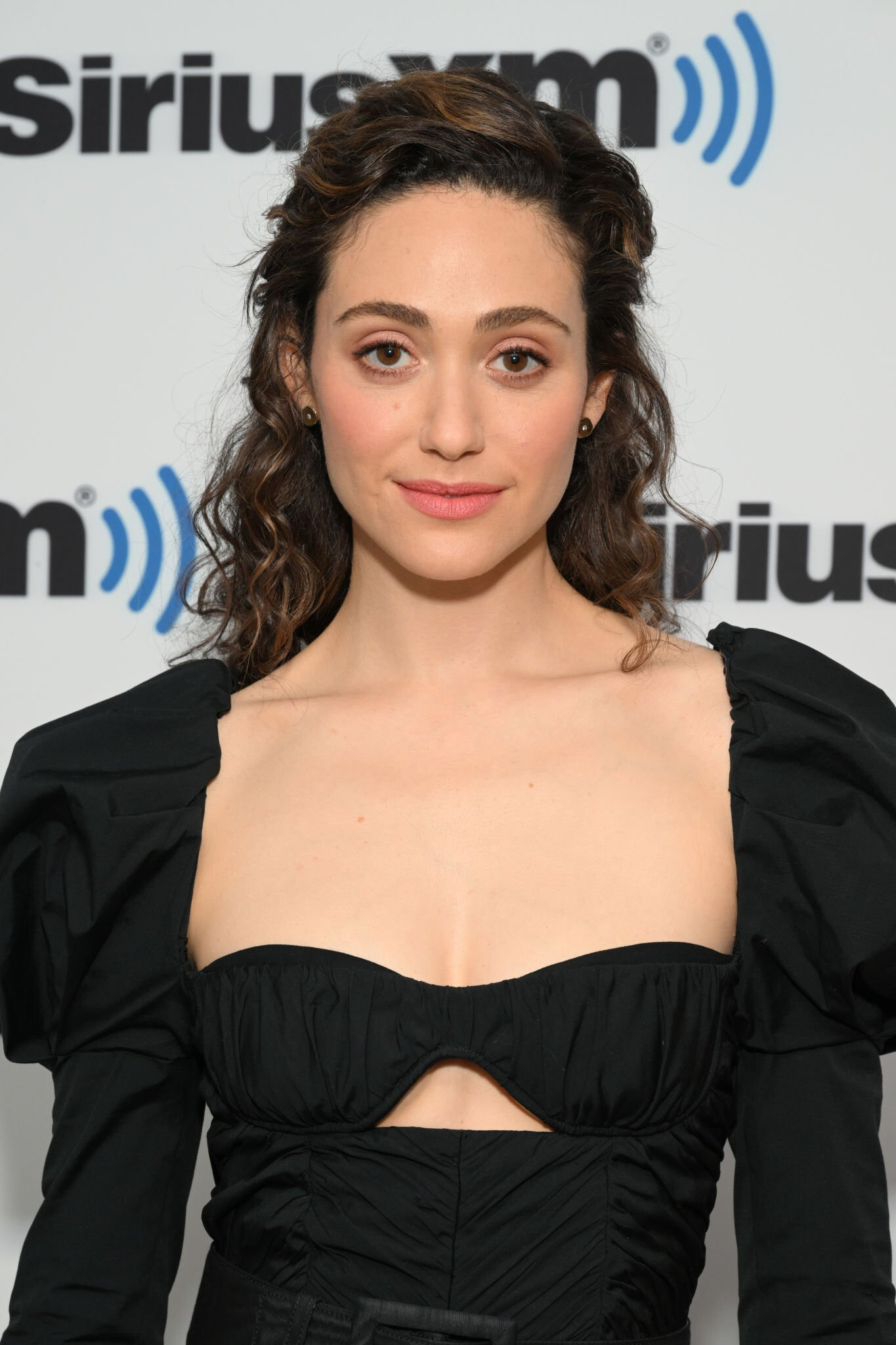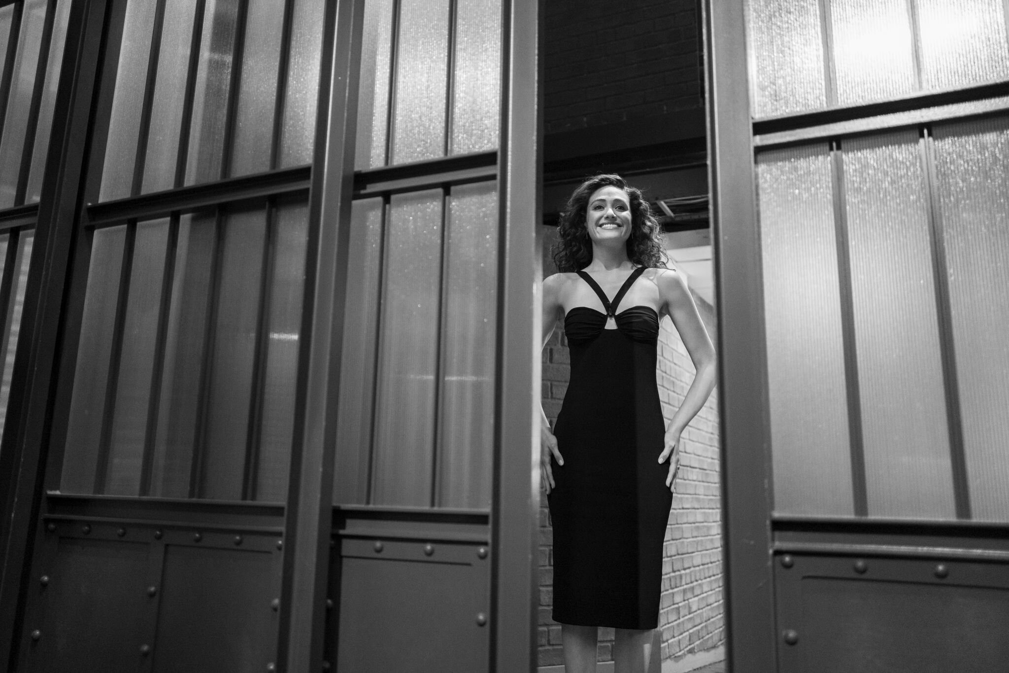 Emmy Rossum in a black strapless column dress with a sweetheart neckline 05/11/2022