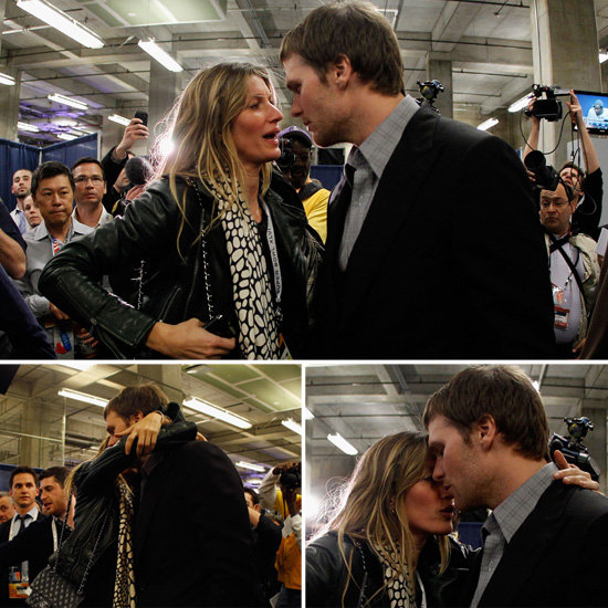 Gisele Bundchen and Tom Brady met up and hugged as he stepped out the Patriots locker room after a difficult Super Bowl loss in Indiana on Sunday. Tom and his team lost to the NY Giants in a close game, which Gisele watched from a luxury box. The Patriots were unable to pull out a win, despite Gisele's now-famous email asking for best wishes from friends and family on "Tommy's" big day. Even so, he gets to come home to a happy personal life with Gisele and his two adorable sons. Hopefully now that the season is over they'll find time for a romantic getaway, considering how much they love hitting the beach and we've seen how much all-star quarterback Tom also enjoys a waterslide.
