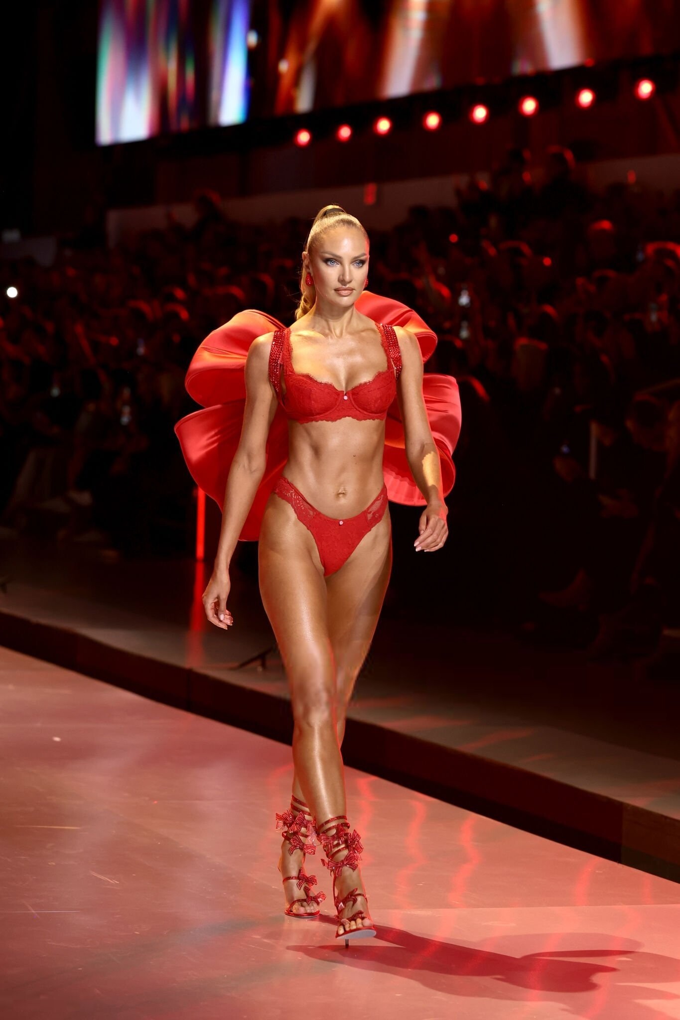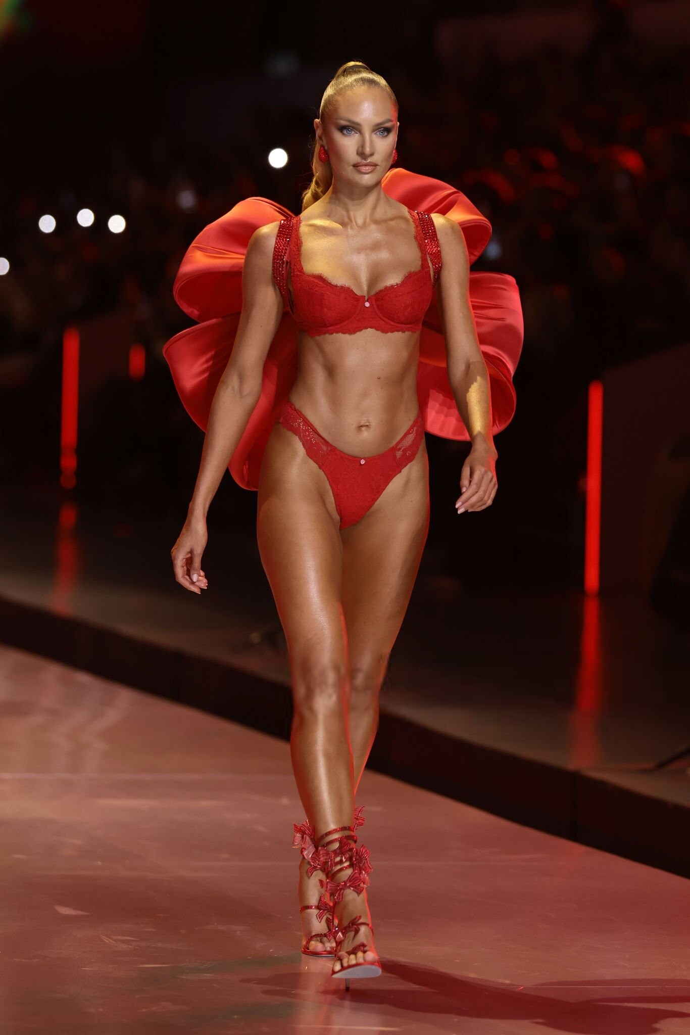 She had two outfits and 1 segment opening. I love her in the red 😍 but both outfits were lovely! And the final she walked hand in hand with Behati 🙂