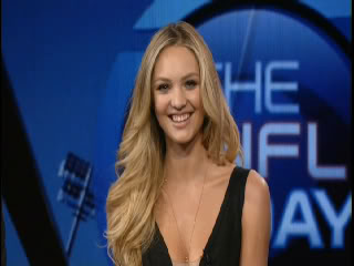 I happened to catch it live on tv, and all I can say is the camera does love her. I'm surprised she even knew some players' names. They might have told her a little something so she wasnt completely clueless out there. Anyway I kinda like her now. ![]()