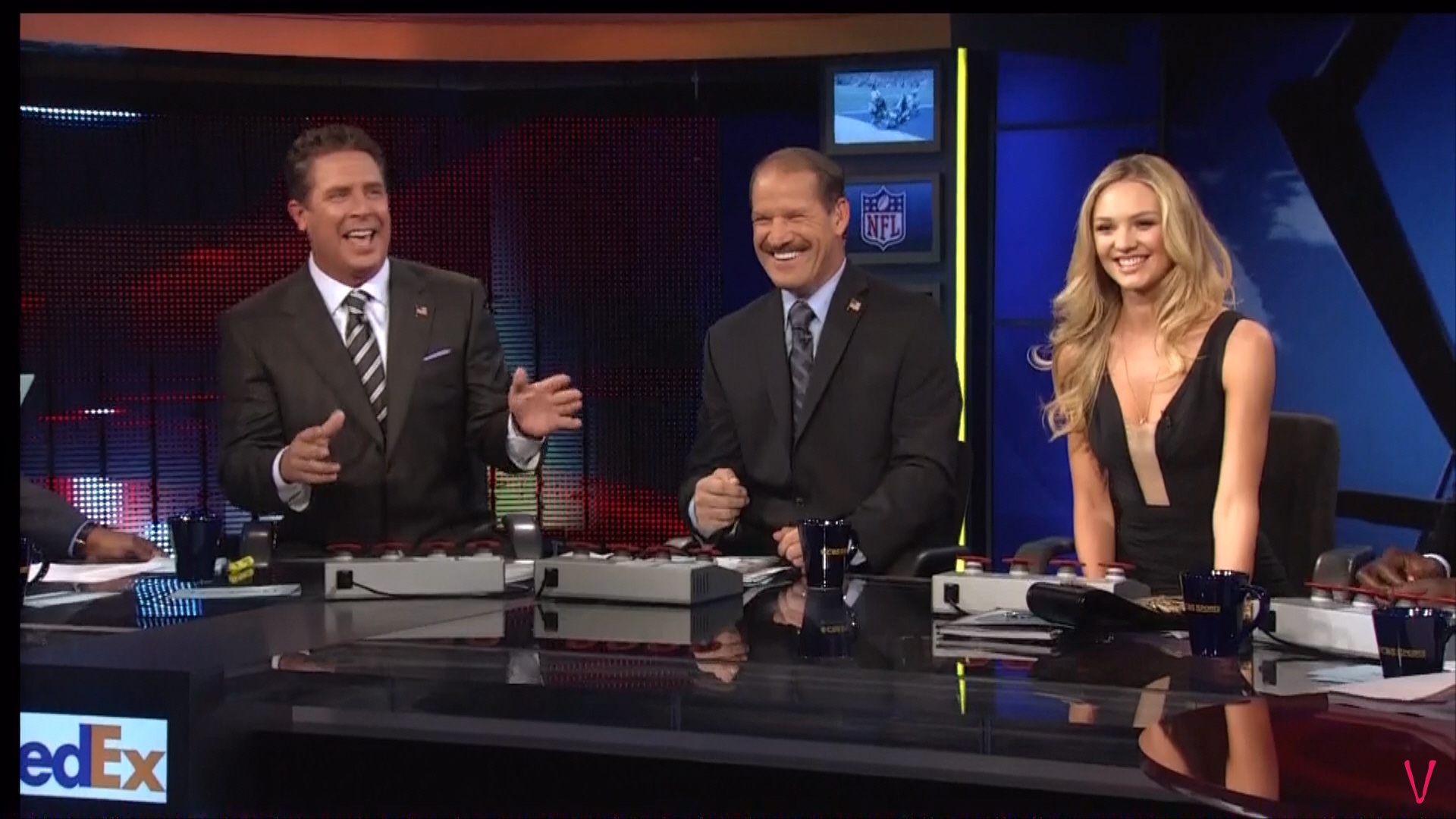 To be honest, Candice held herself pretty well against these old geezers. But I don't know why VS didn't just send Marisa 'cuz Candi doesn't seem to be the kinda girl that even watches NFL football. Anyway, is anyone interested in watching the video from her appearance? Or these screencaps enough for ya?