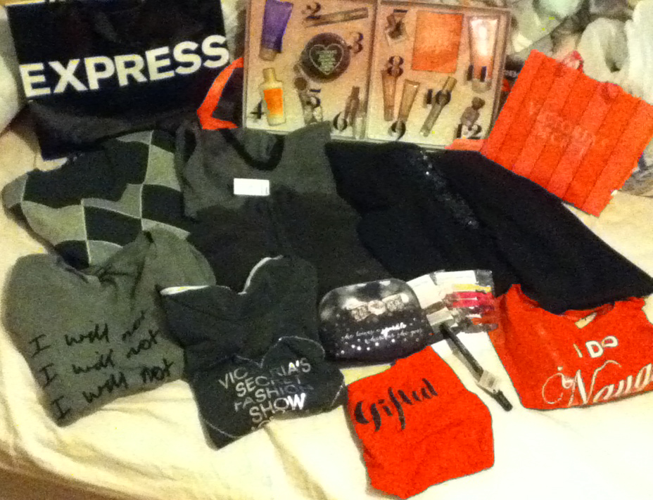 Stuff from Bath & Body Works, Express, Sephora and VS. Don't feel like listing the specific items so I took a picture: