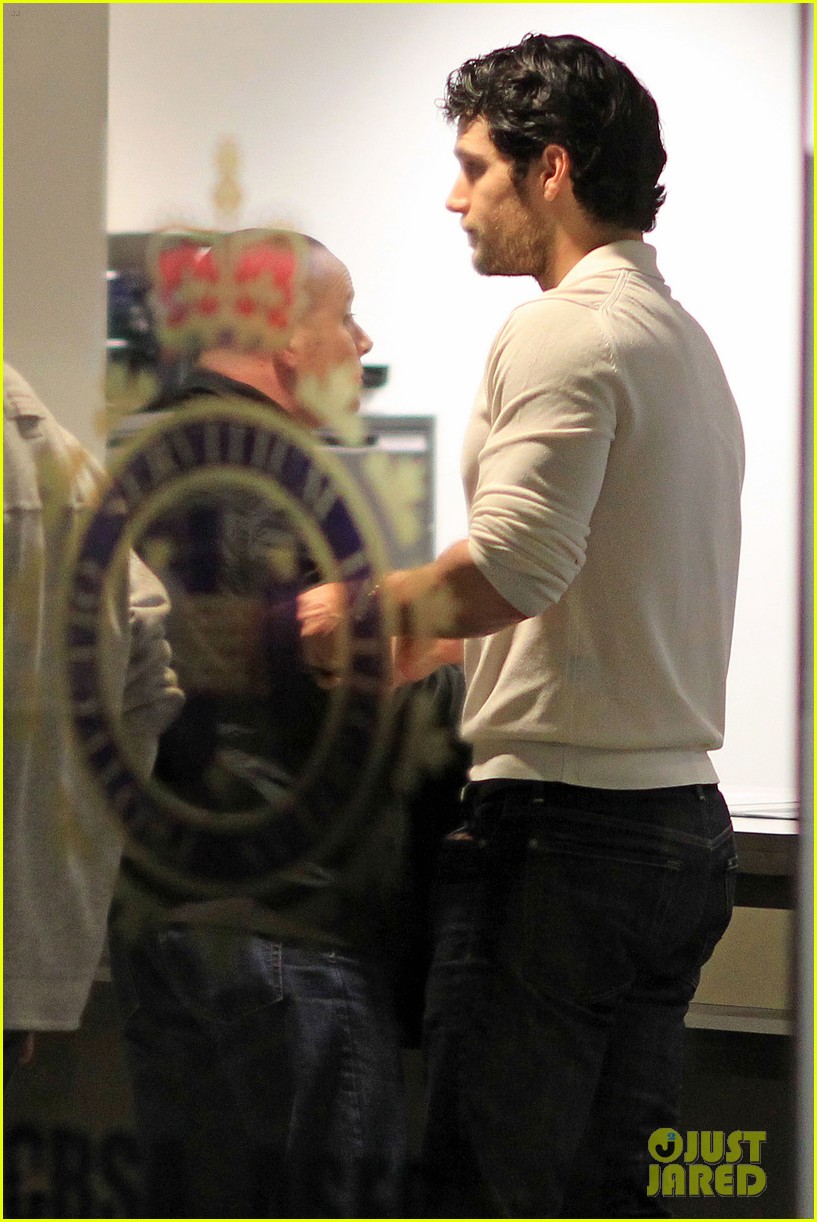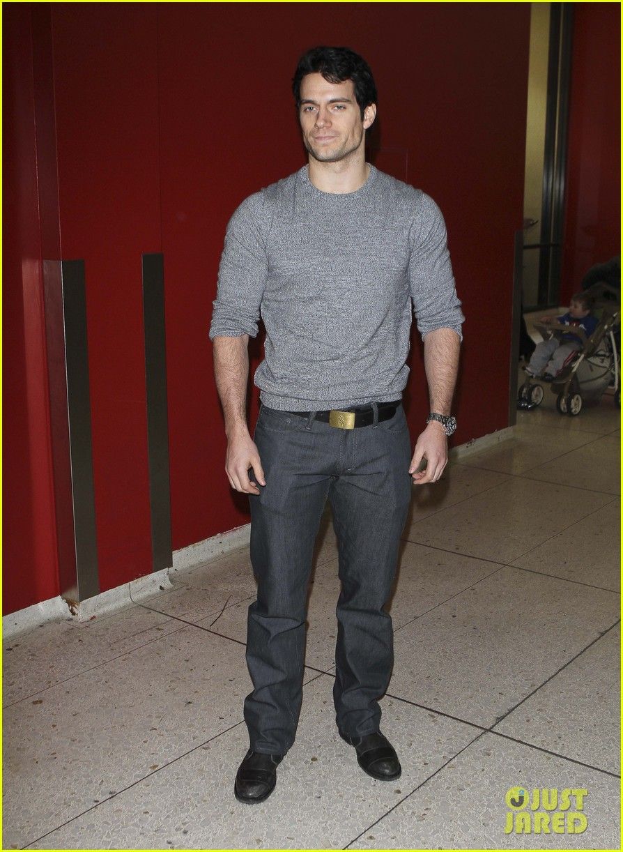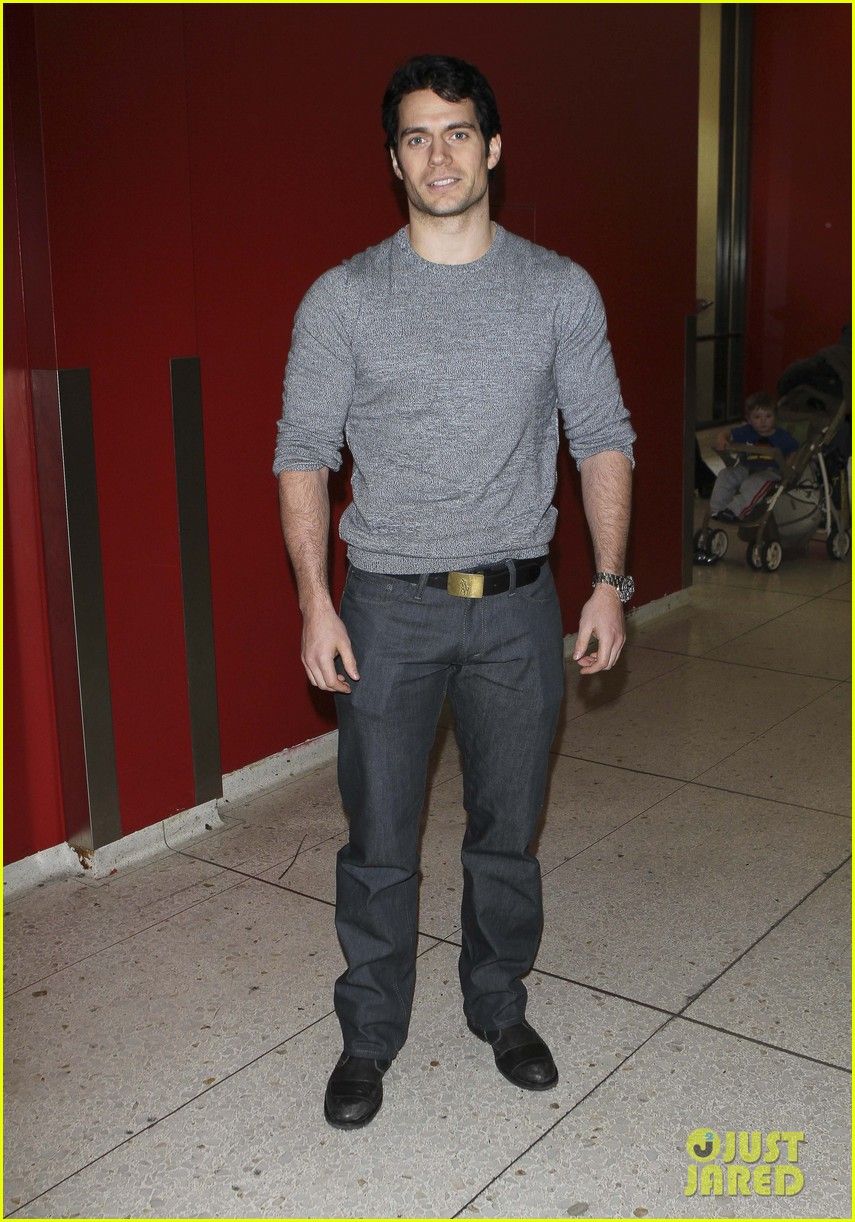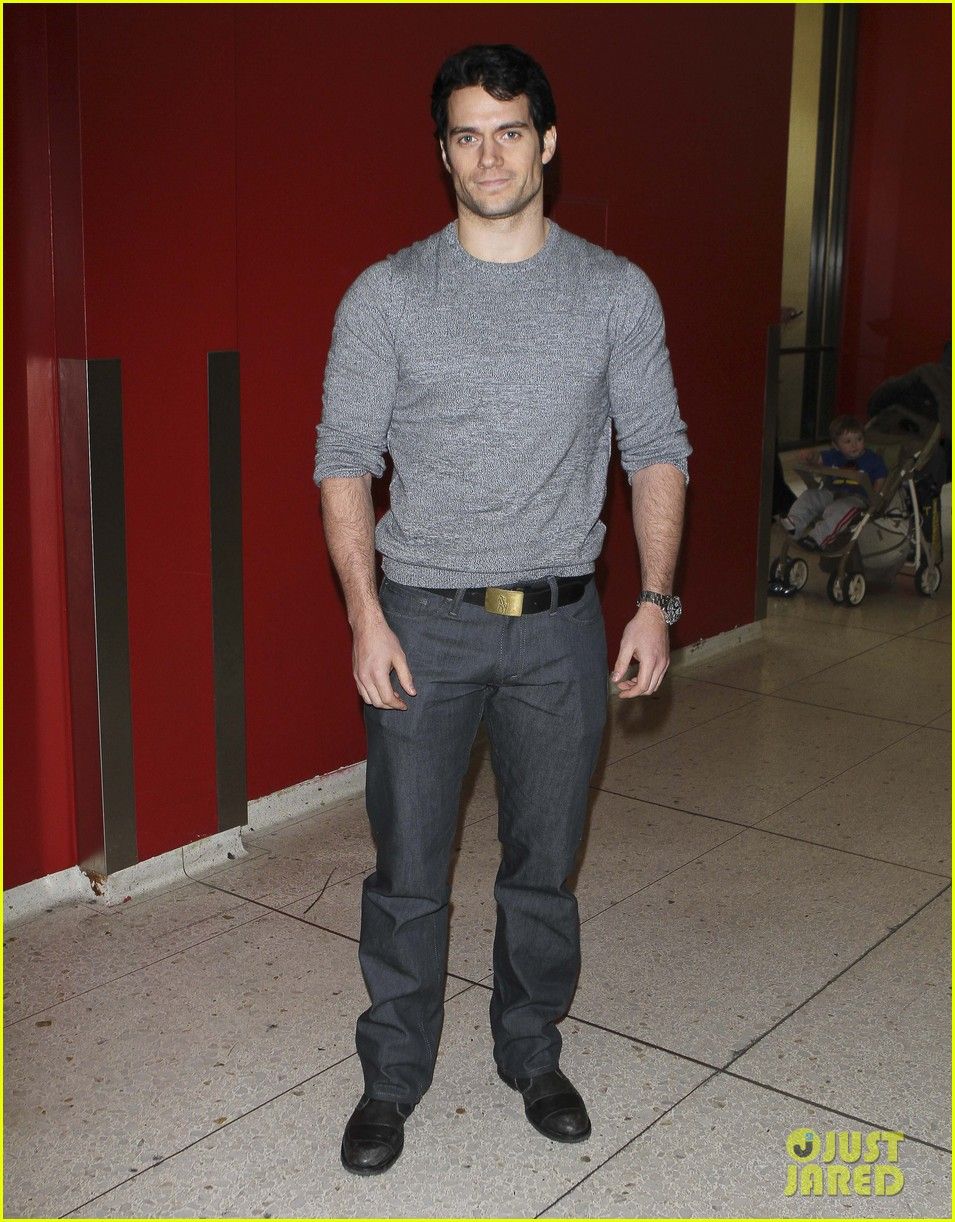 Henry Cavill carries a purple package while waiting for a flight at the airport on Saturday (October 15) in Vancouver, British Columbia, Canada.