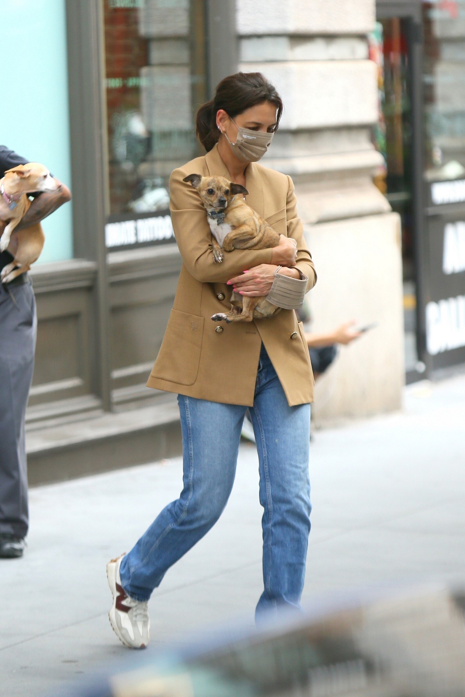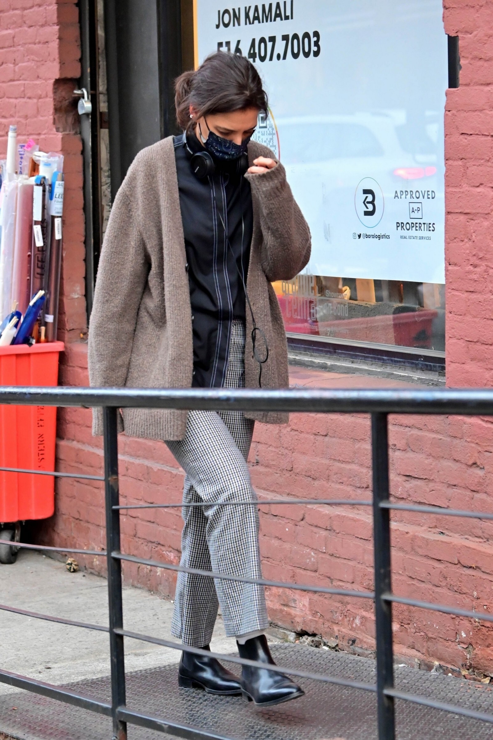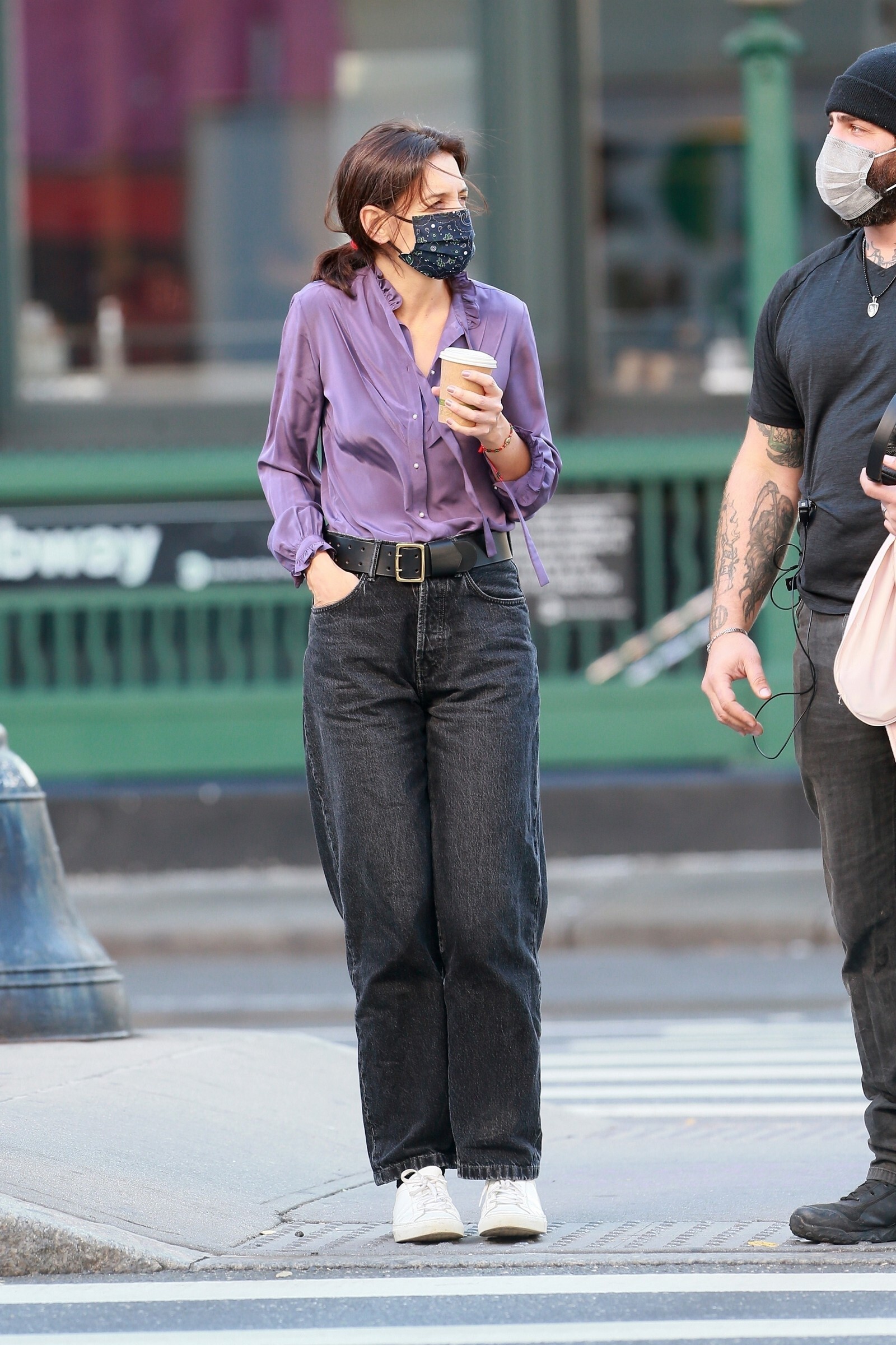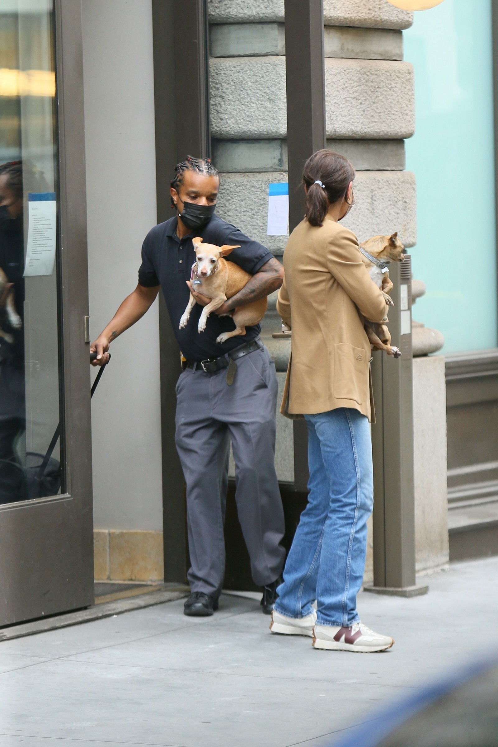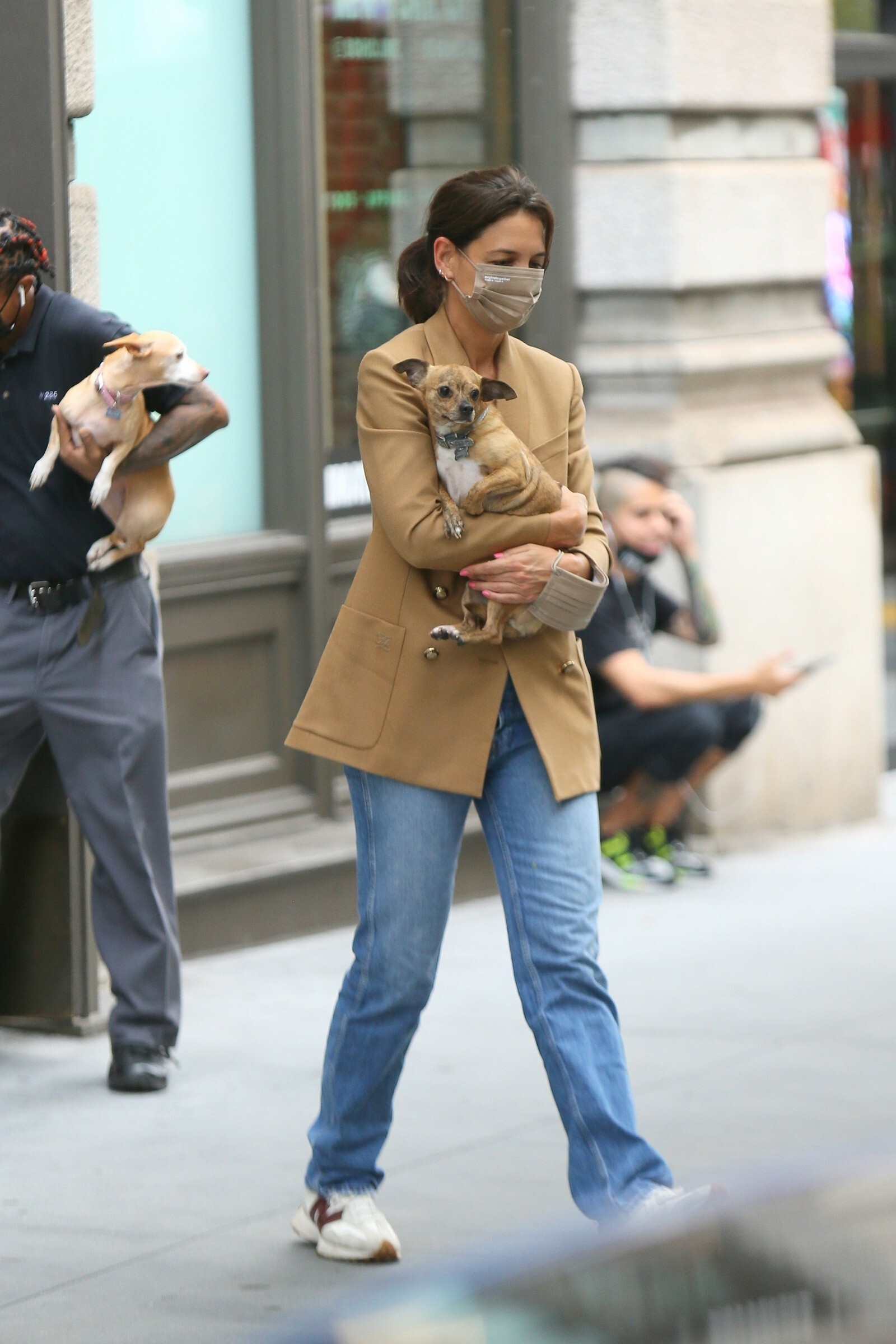 Katie Holmes' bodyguard carries her coat on the NYC set of her third directorial effort, Rare Objects