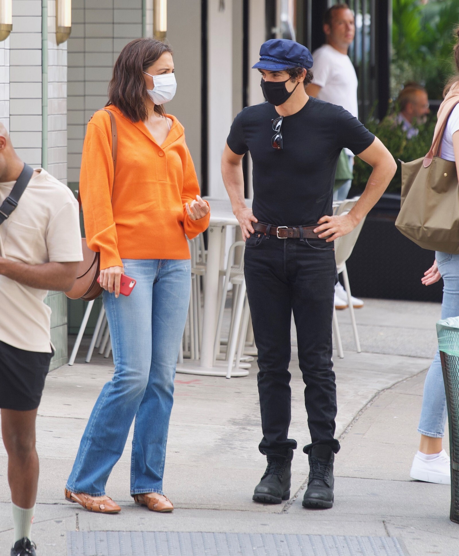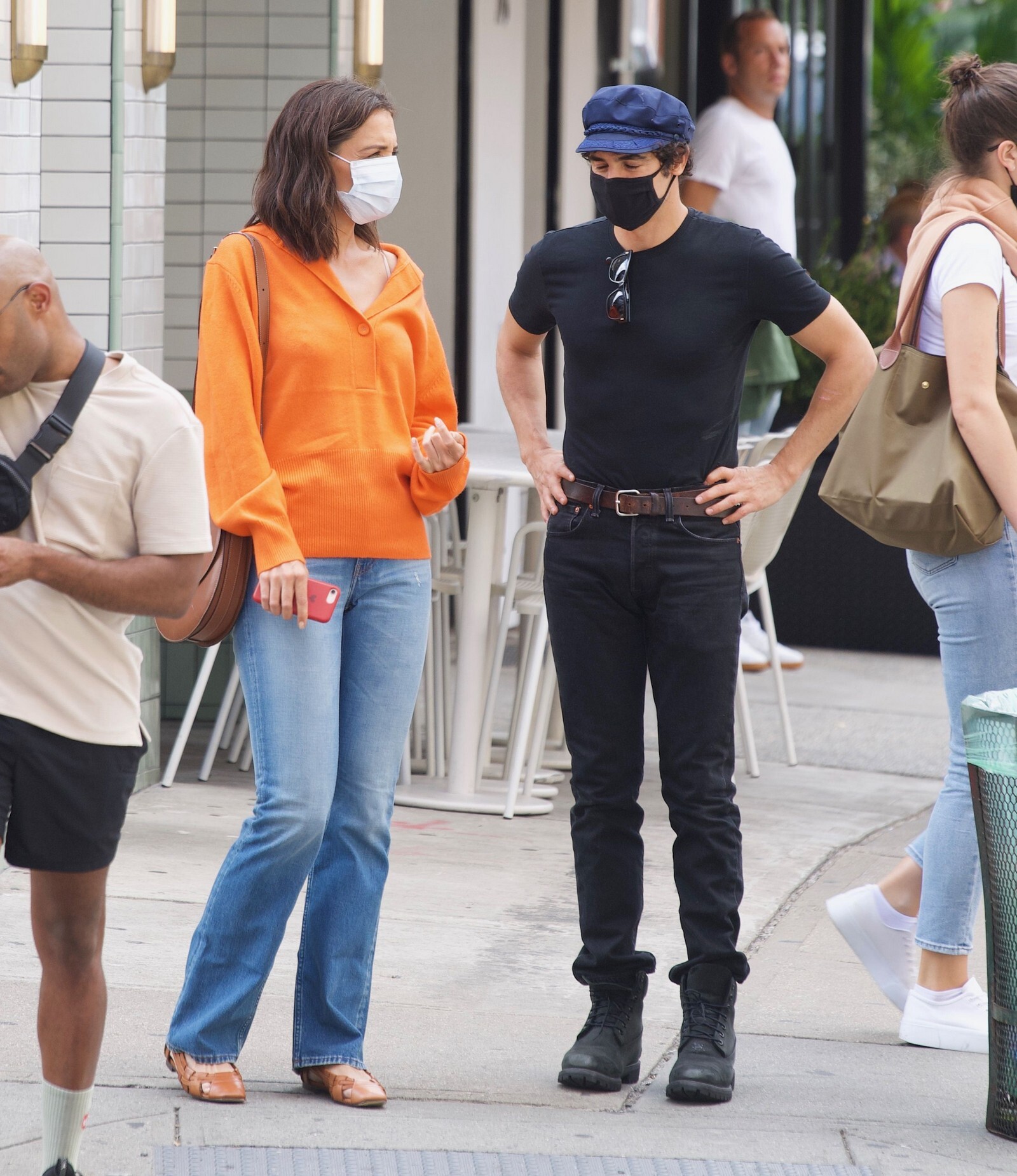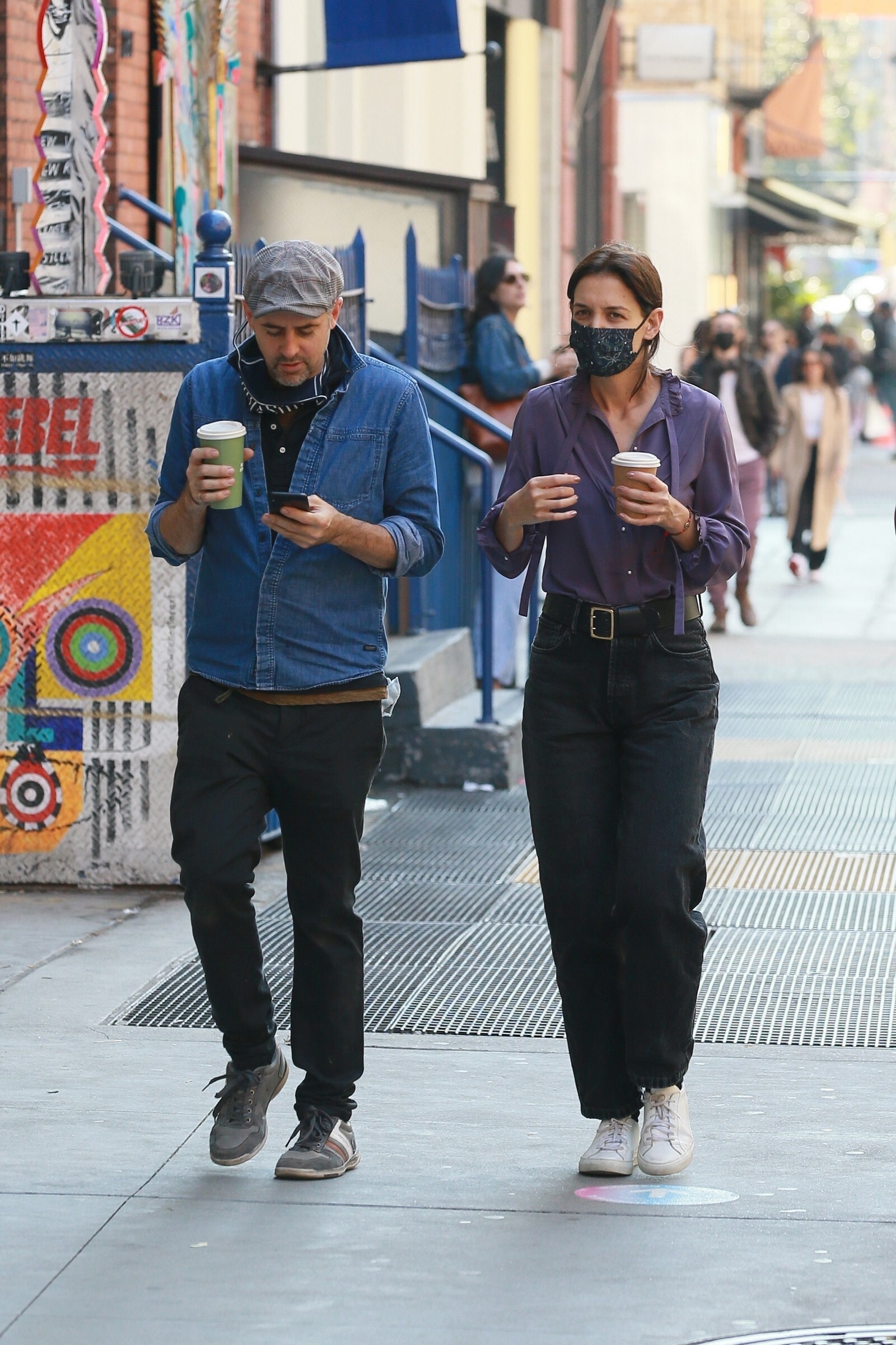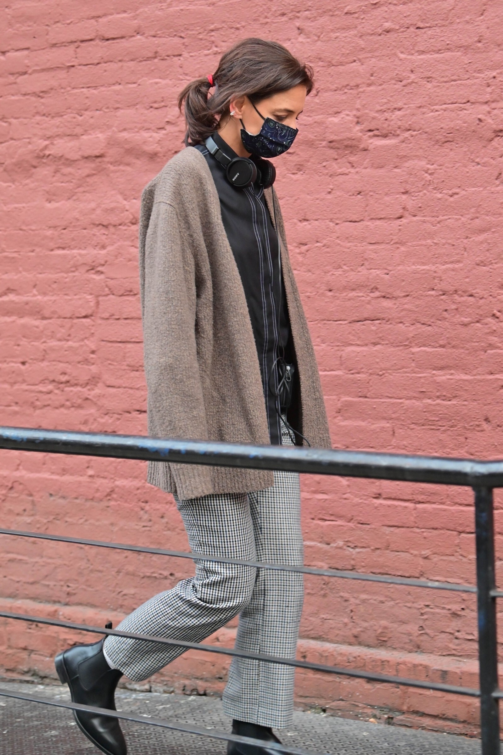 Katie Holmes' bodyguard carries her coat on the NYC set of her third directorial effort, Rare Objects