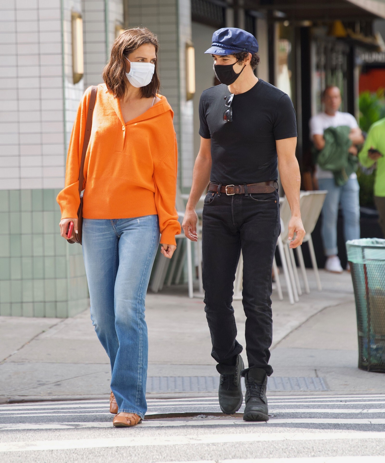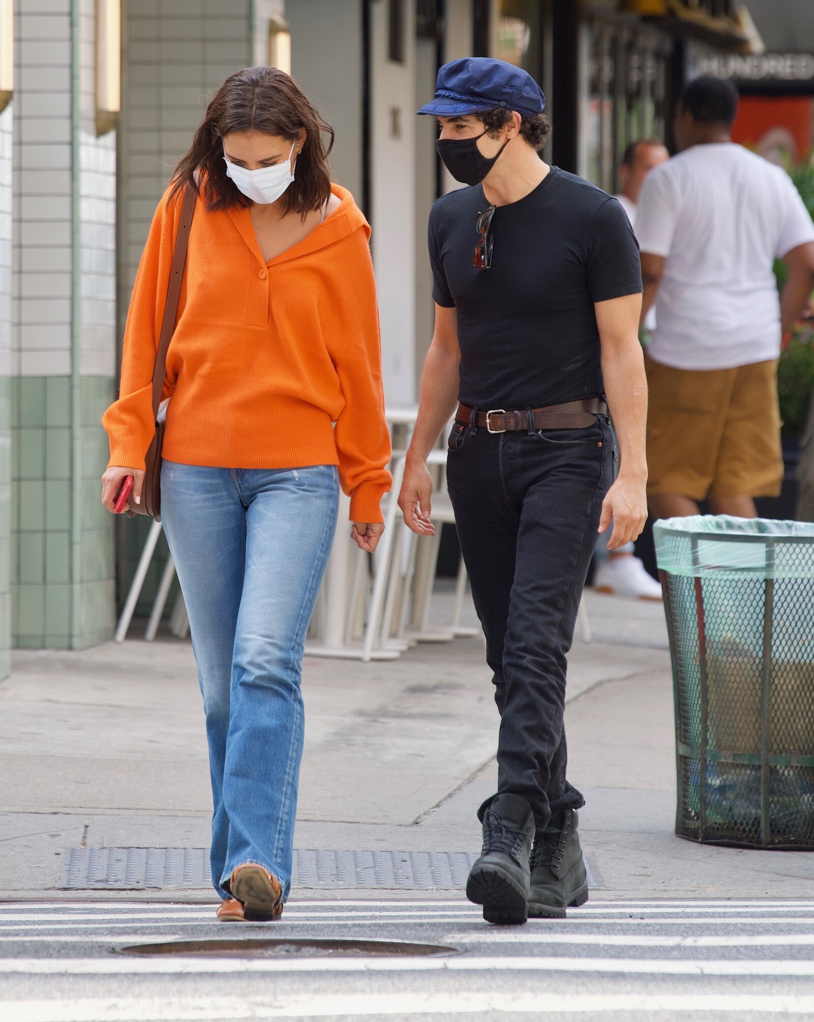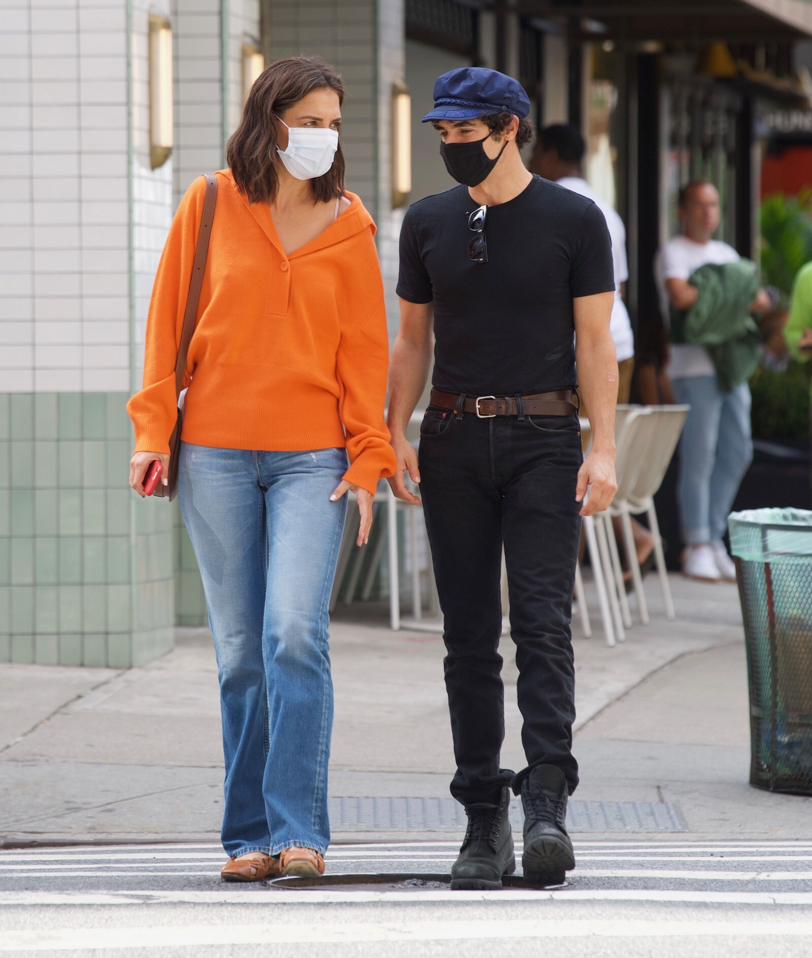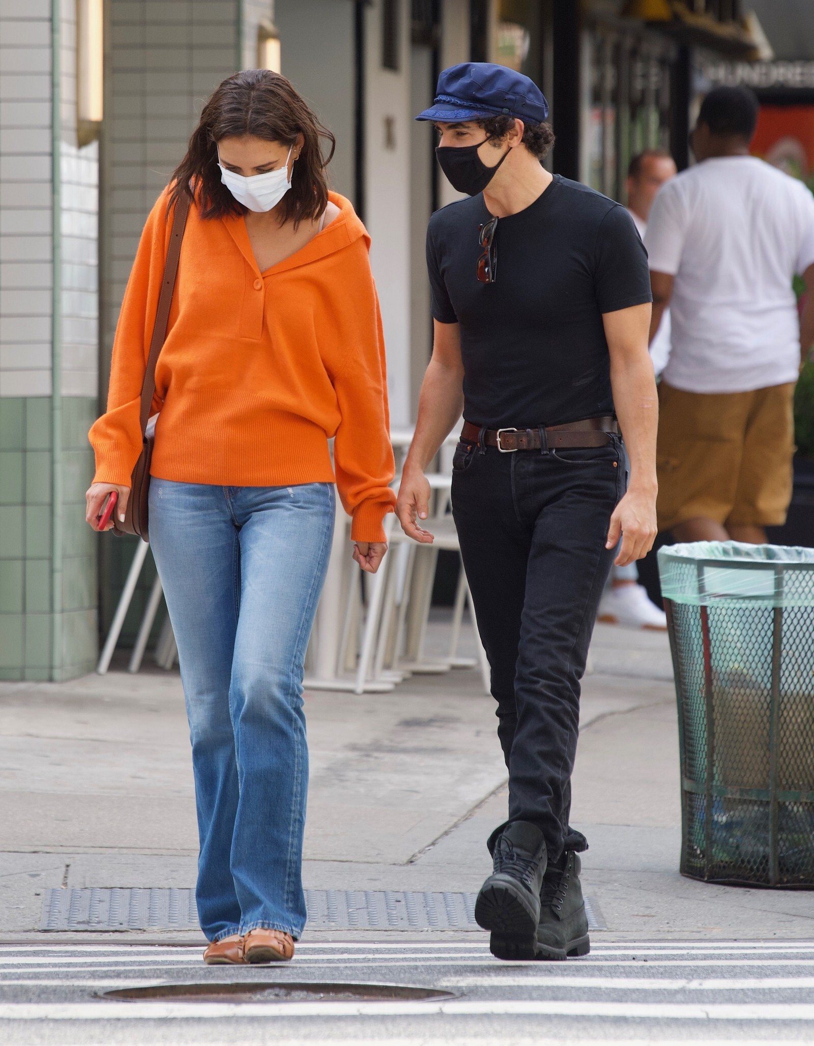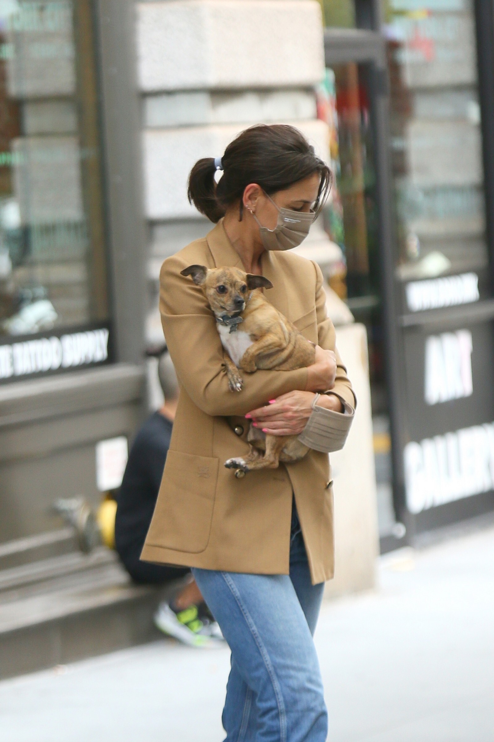 Katie Holmes' bodyguard carries her coat on the NYC set of her third directorial effort, Rare Objects