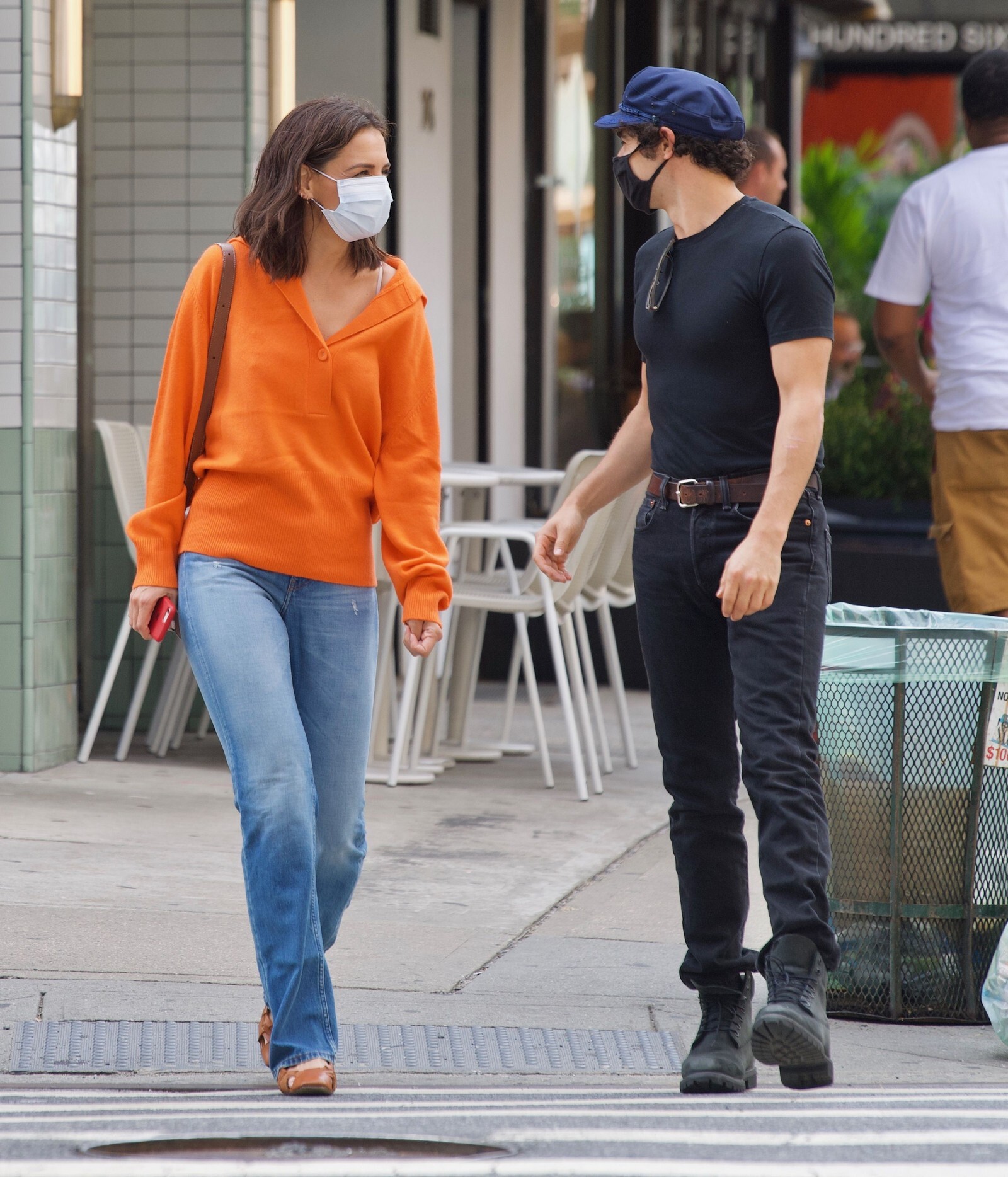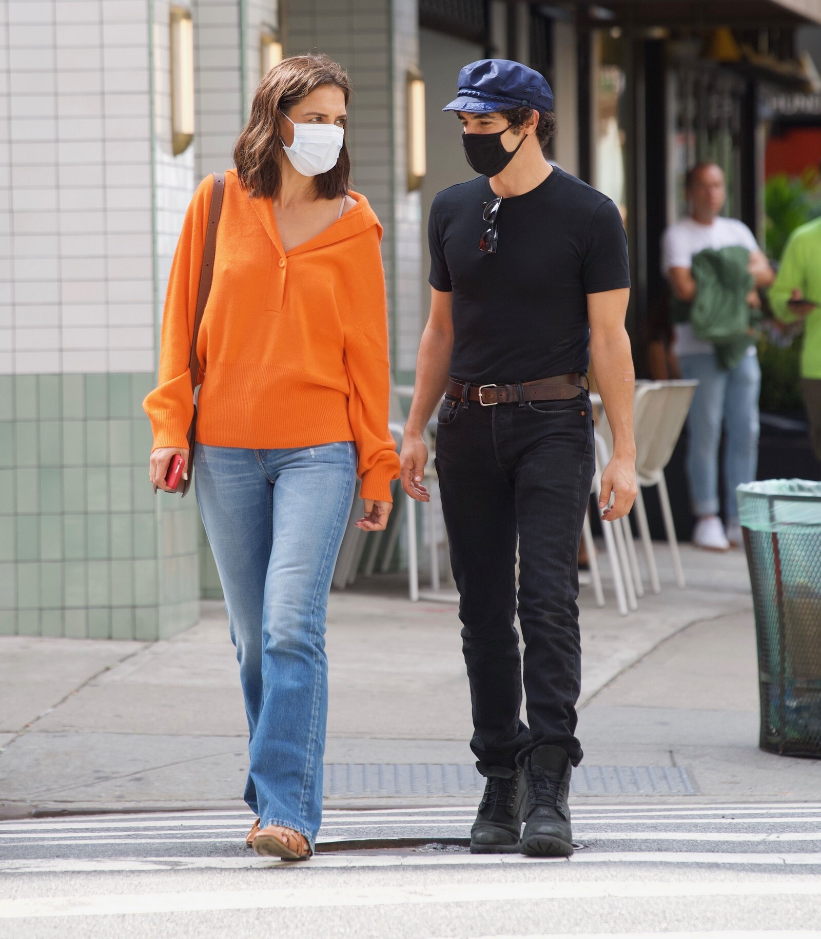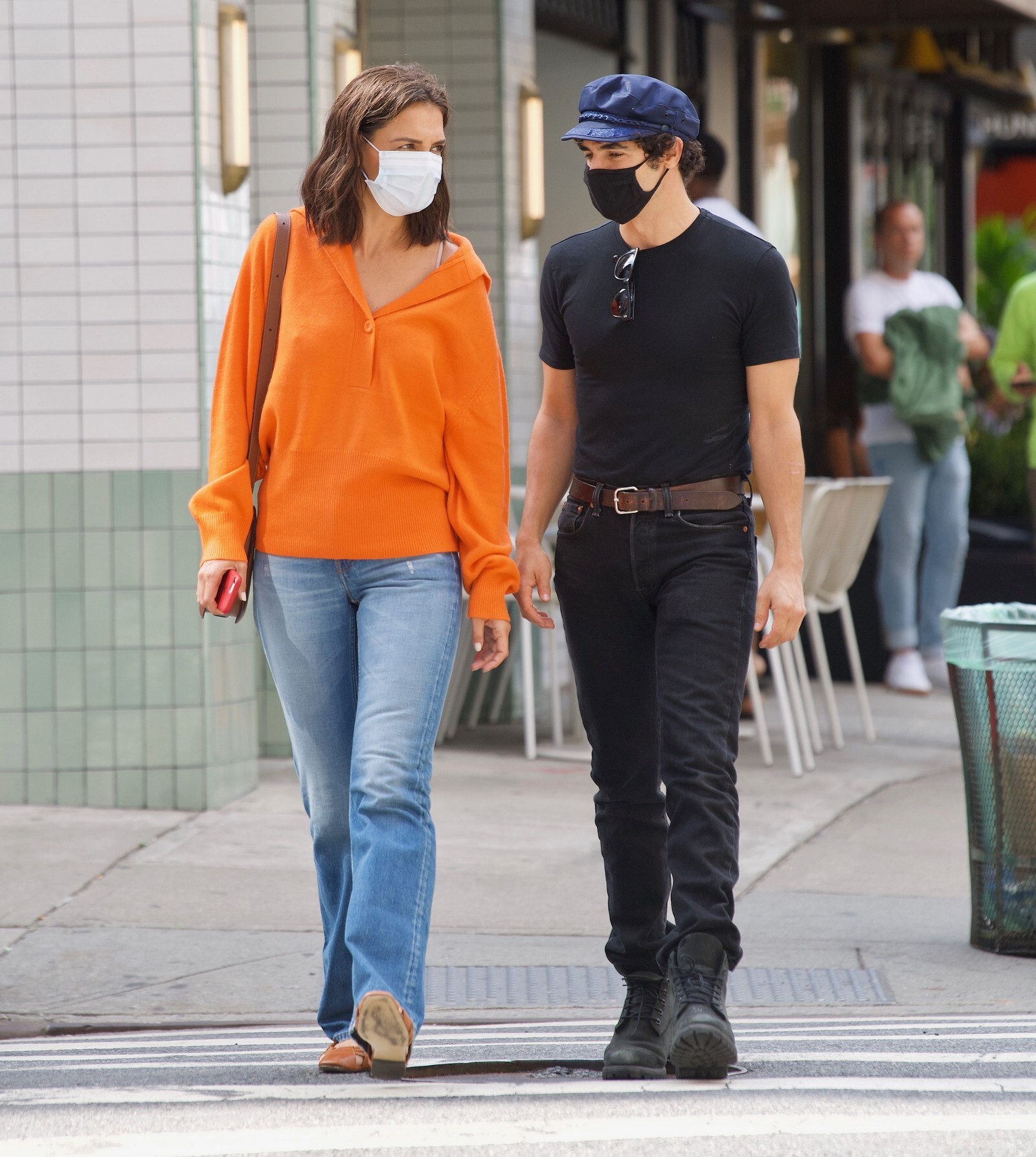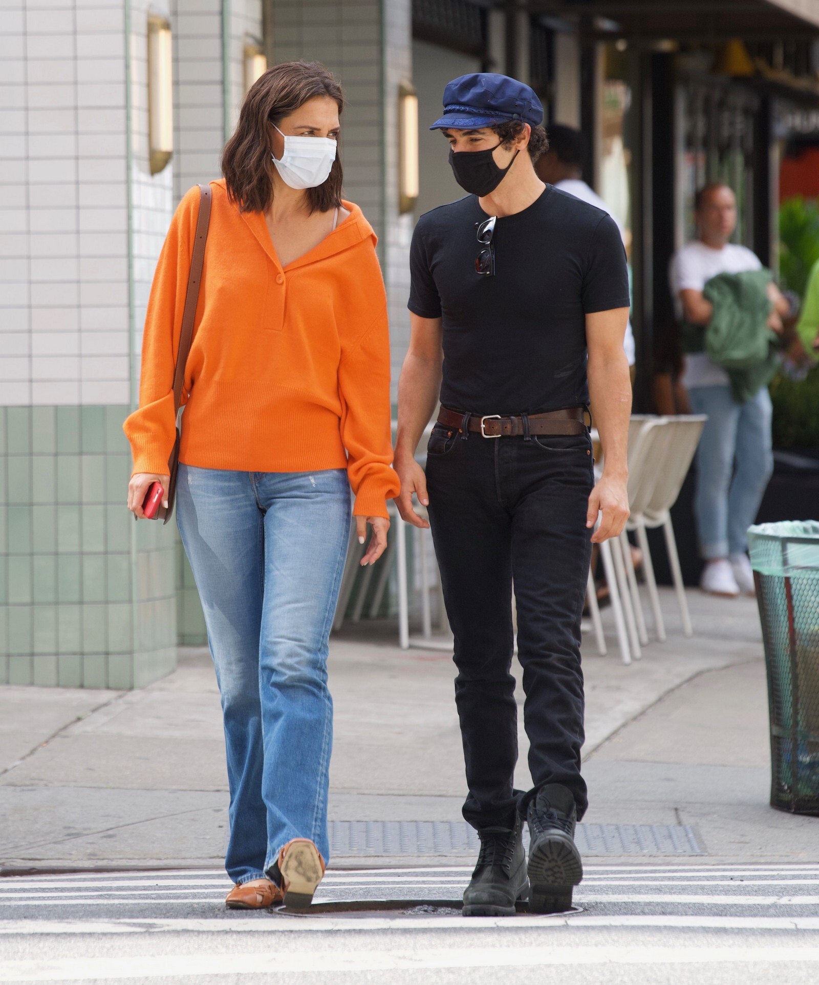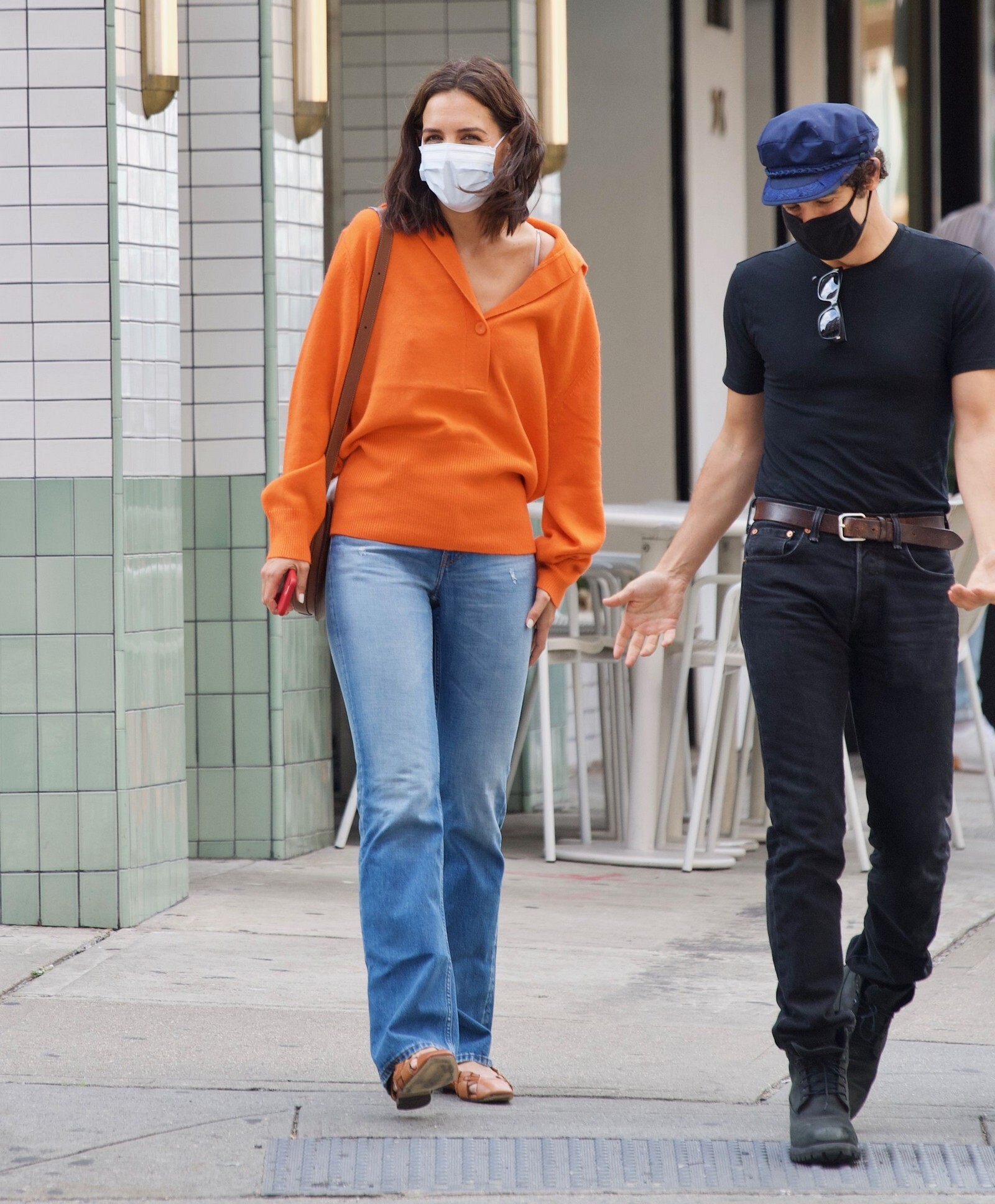Katie Holmes' bodyguard carries her coat on the NYC set of her third directorial effort, Rare Objects