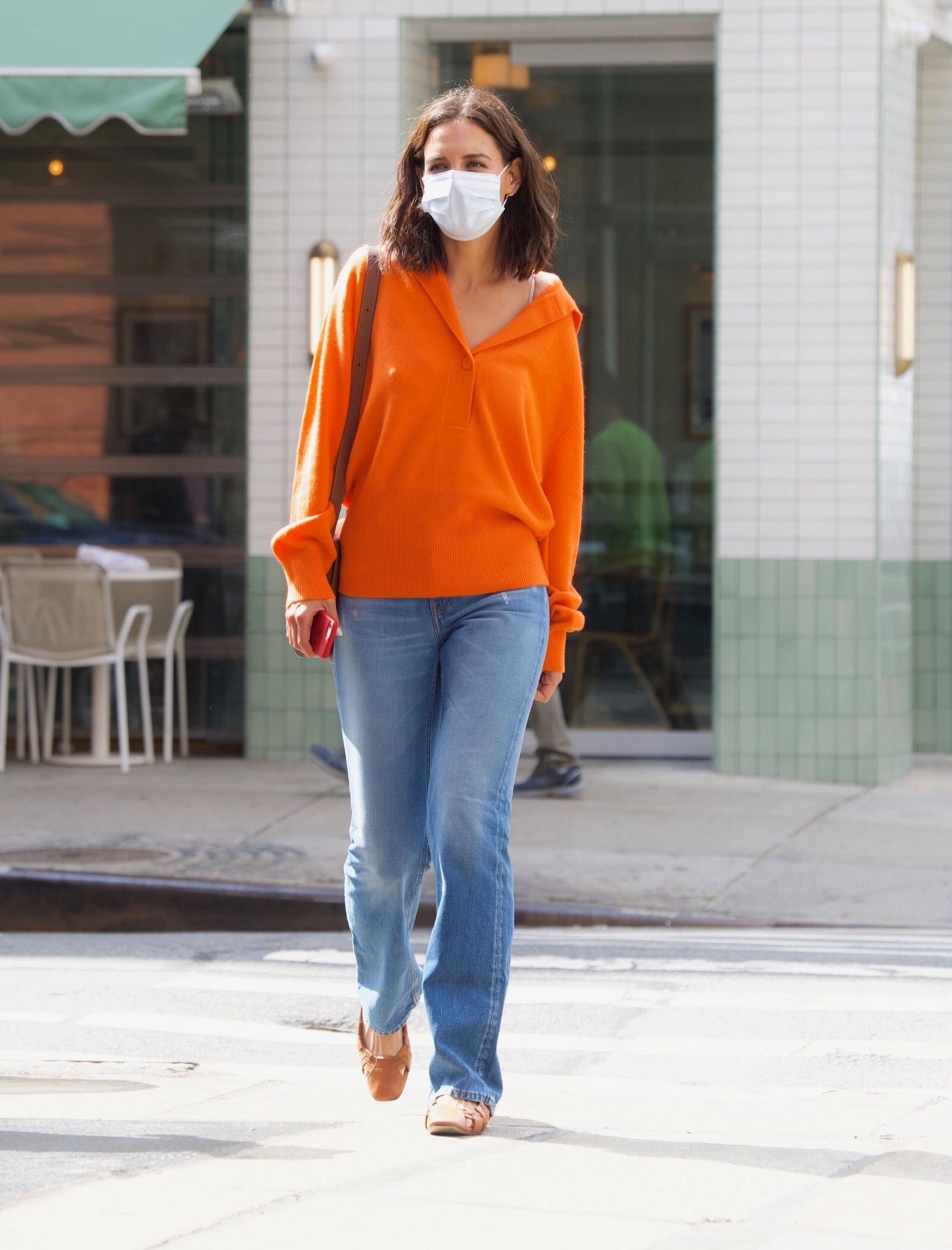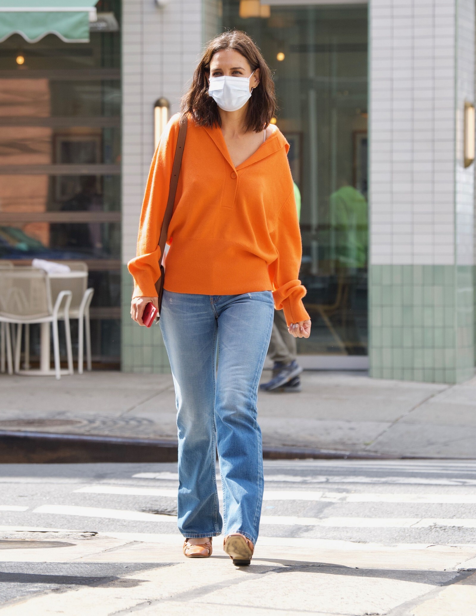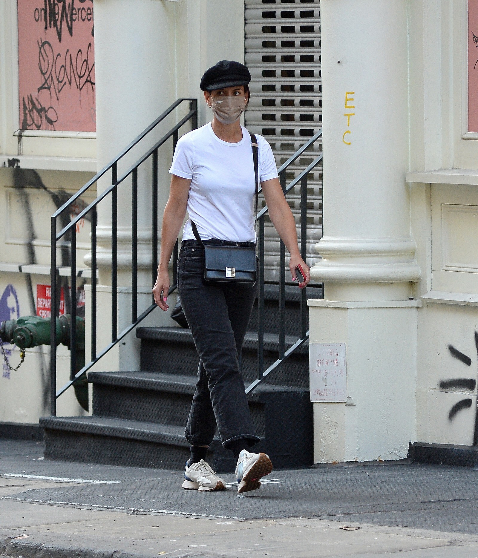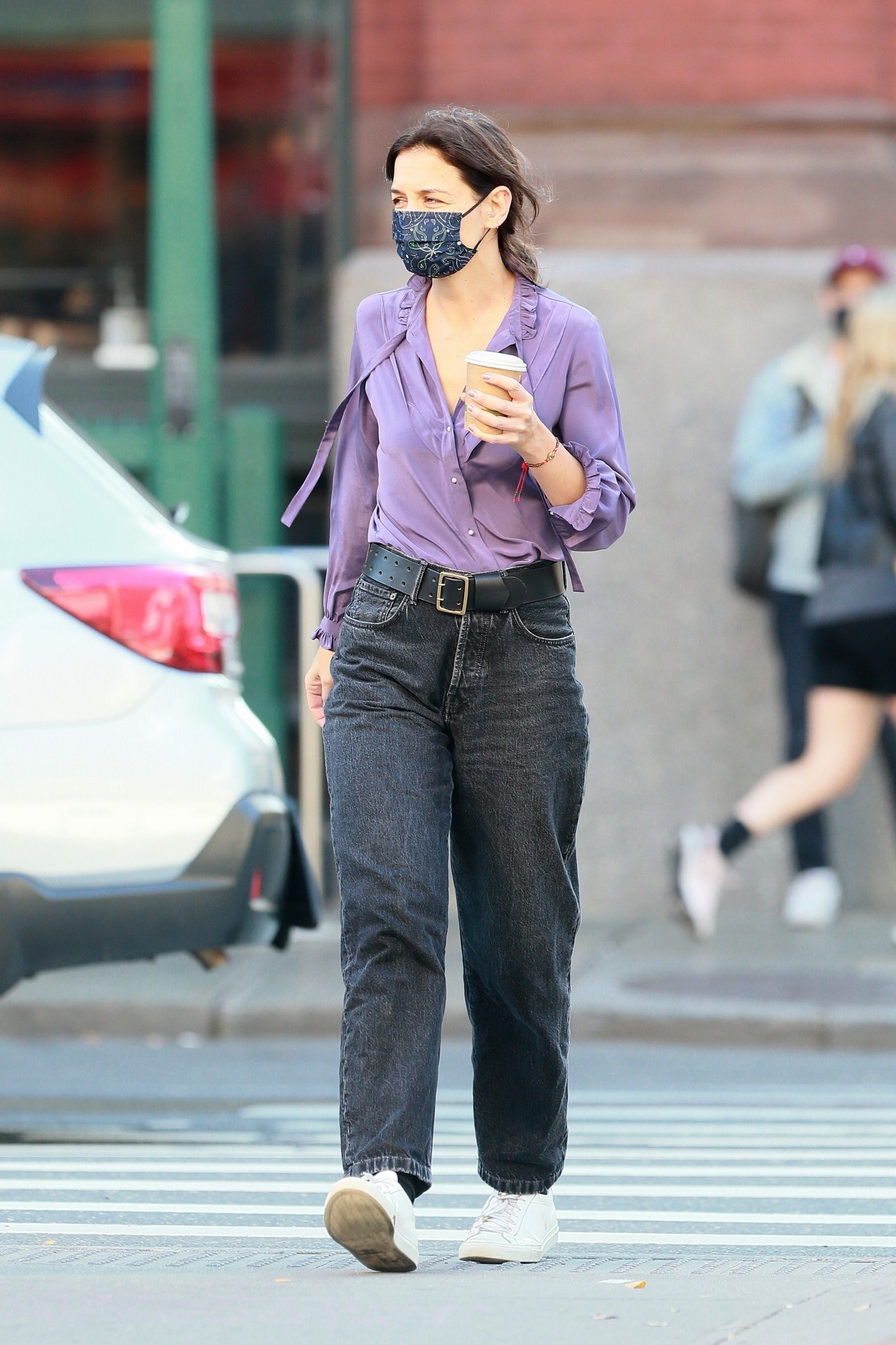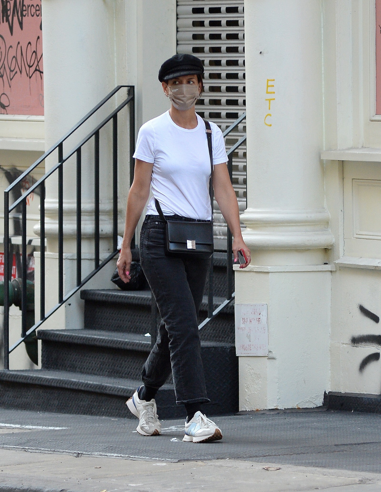 Katie Holmes' bodyguard carries her coat on the NYC set of her third directorial effort, Rare Objects
