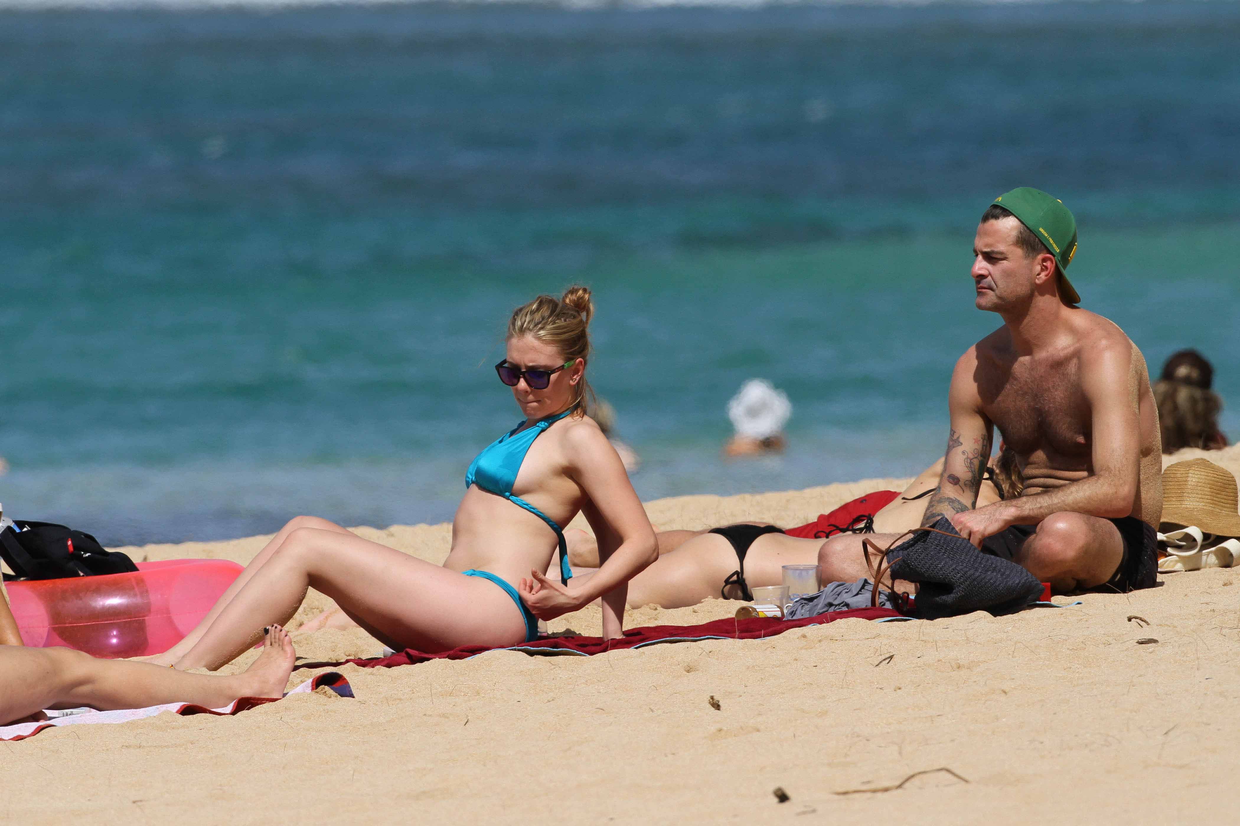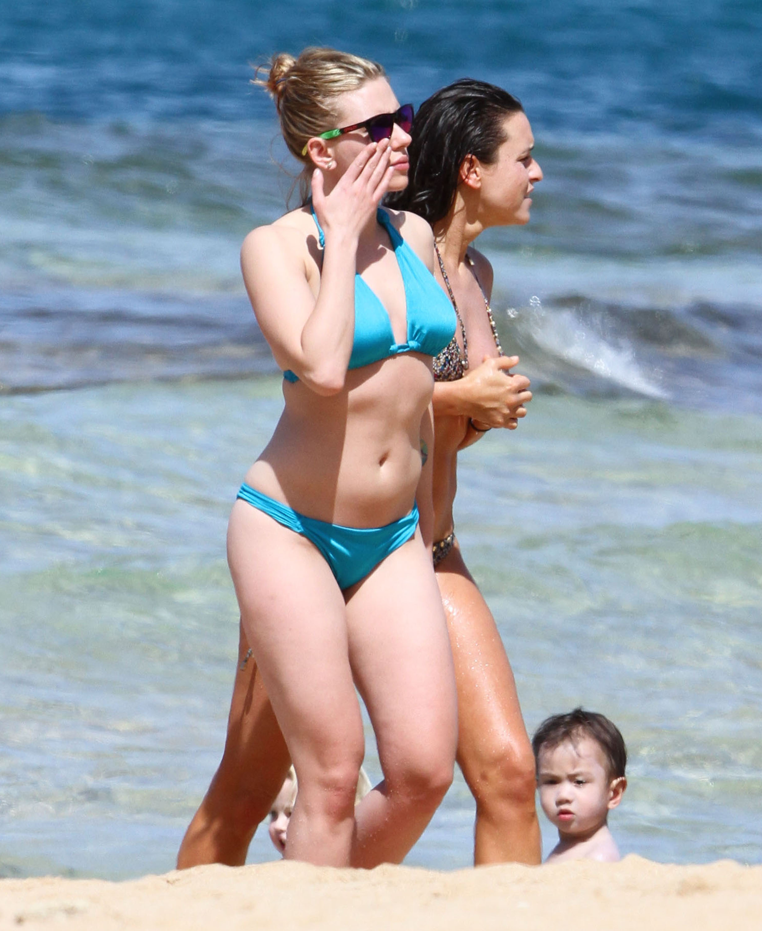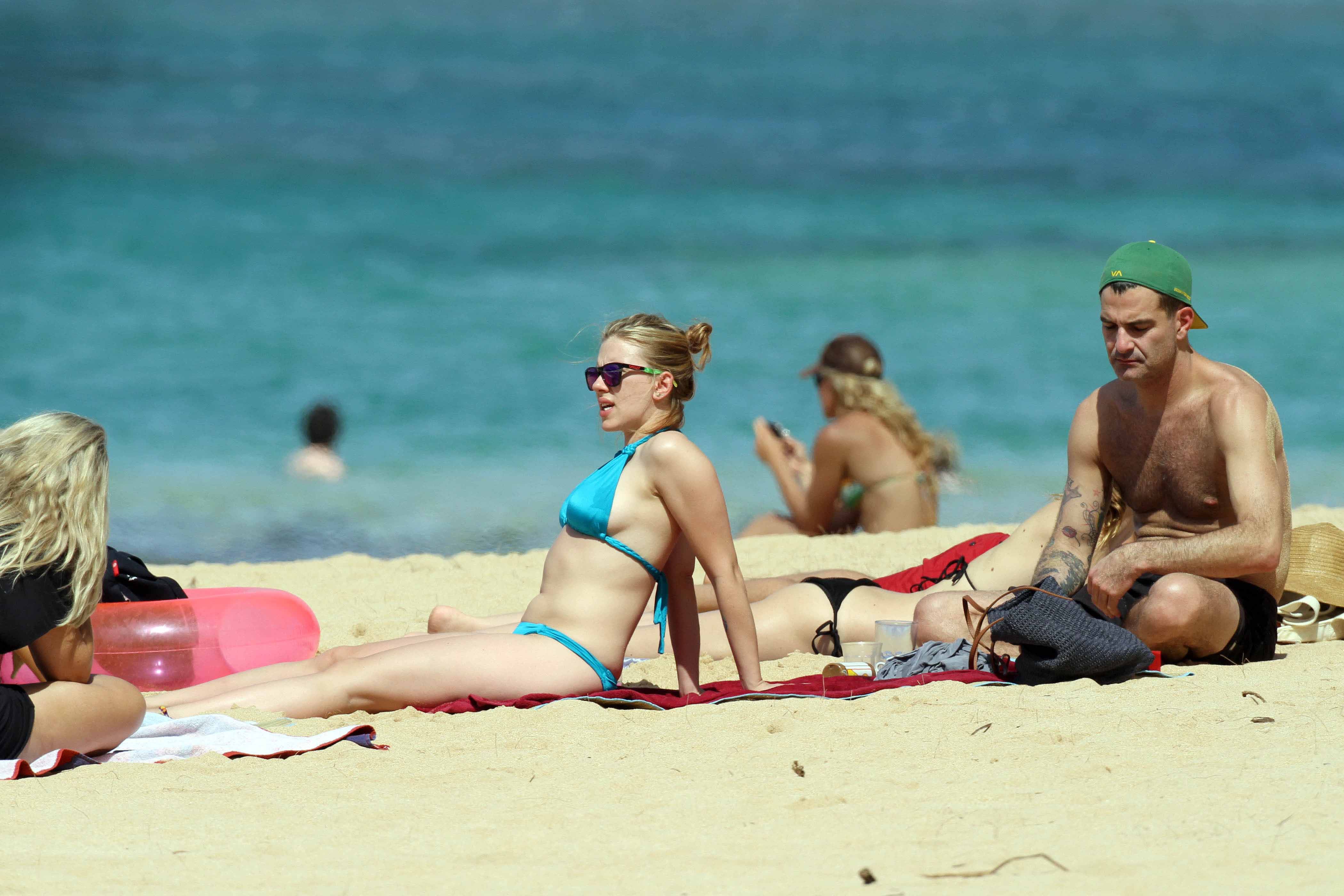 Shes looking fabulous in blue bikini. it would be hard for any man to resist Scarlett in a bikini...