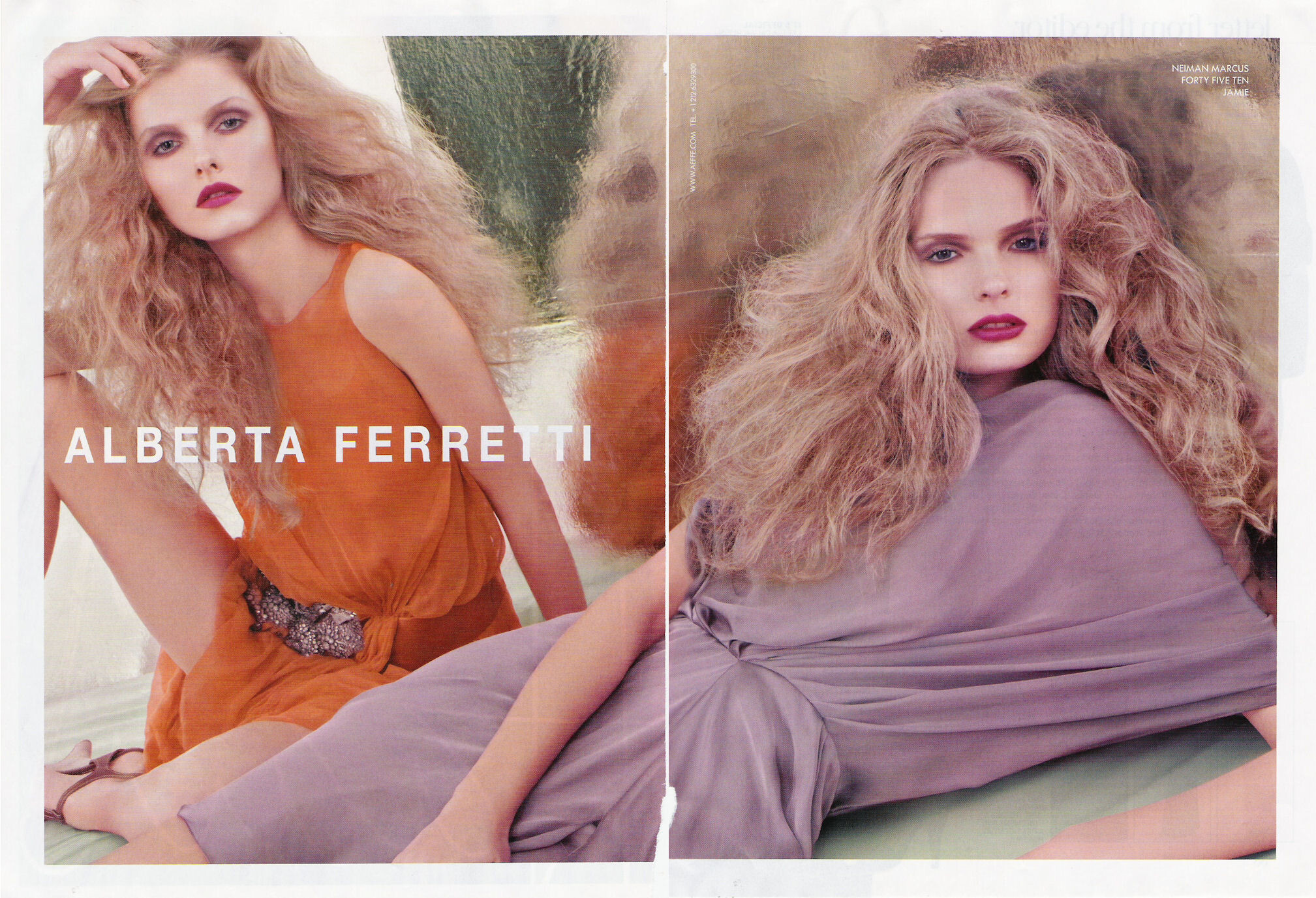 Ferretti is known for her designs featuring twisting, tucking, and draping techniques. Her style employs a subtle layered look, sometimes showing a hint of hand-beaded gauze which extends slightly beneath the hem of a wool dress. The erotic qualities of the chiffon and jersey fashions she introduced for her spring 2008 fashion collection is evident in the look of her dresses. Many of them are cut high in the front and draped low in the back. Her target customer is the cocktail crowd. Specifically the dresses are party frocks, above the knee, and enhanced by rhinestone rosettes and armour-like chain mail. Feretti's collection includes pleated bubbled coats, toga-like minidresses and skirts, and a sparse number of gowns of soft mint green and white hues. The minidresses and skirts were shown with ethereal models wearing metallic gladiator flats.