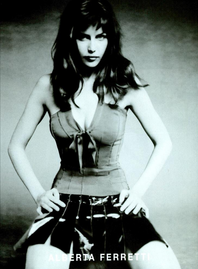 In October 1993 Ferretti presented clothes reminiscent of The Great Gatsby for the Milan ready-to-wear shows. One of her designs was a long and trim gingham dress, in pale blue. A flapper showed a beige crocheted dress styled just above the knee. Her renditions of the toga for the production were diverse. They were simple gowns, some of them short, others long and draped.
