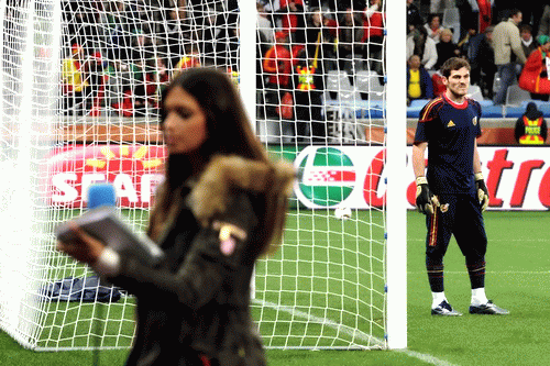 I don't know anything about Sara, but I don't like what is being said in the media about her being a distraction to Iker. Iker has been playing on the international level for many years now, he understands the importance of his job to his teammates and the fans, so I highly doubt that he would allow himself to be distracted by his girlfriend. He is a profession and from what I've seen of him a very dedicated one at that and to say that now him having a girlfriend who's job places herself close to the field I feel undermines him a bit.