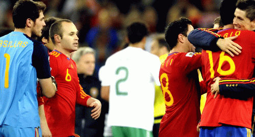 Spain team before the quarter- final ..