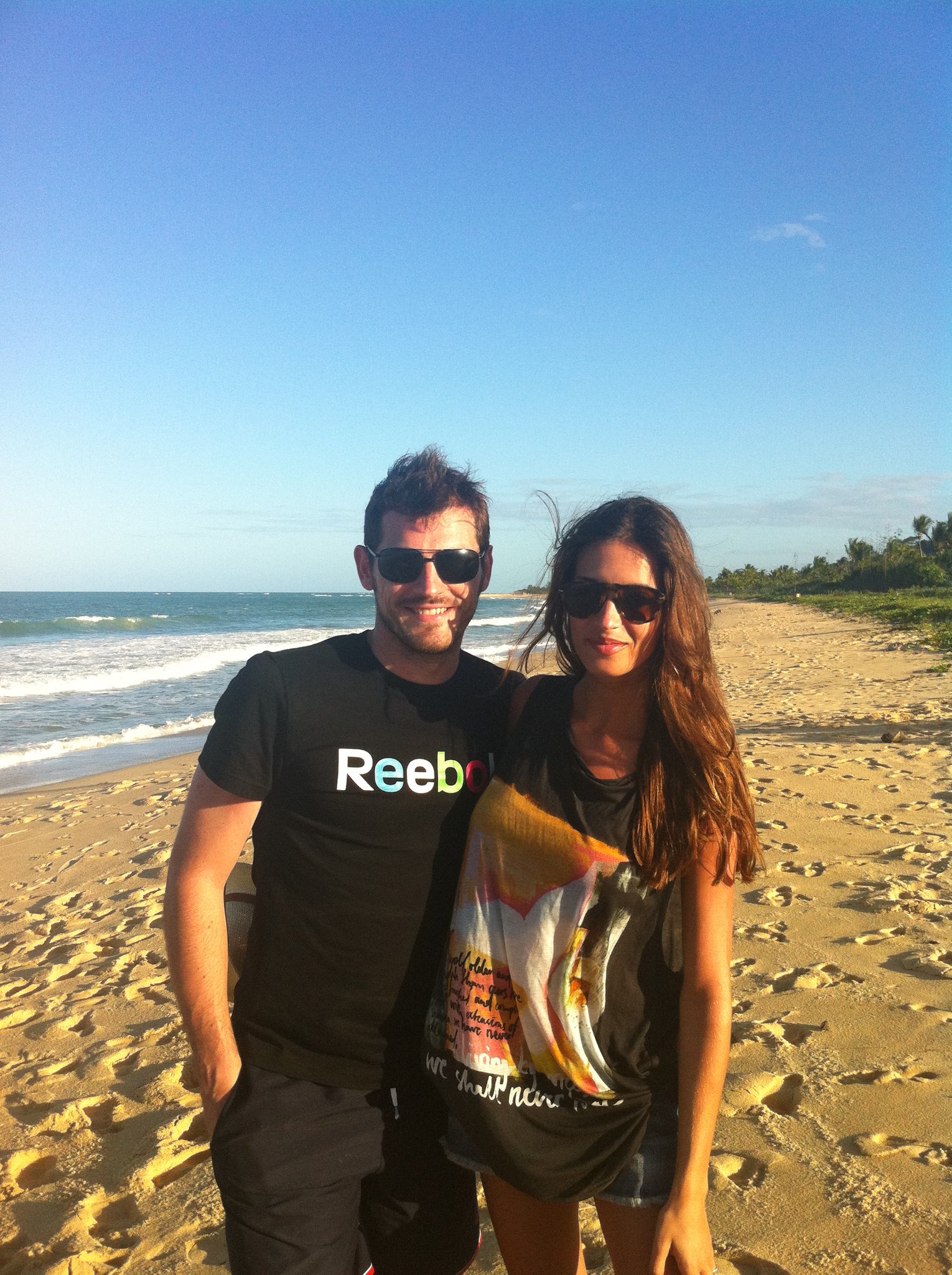 “Disfrutando de un día de playa en Trancoso,un pueblecito de Brasil,con mucho encanto. Os mandamos un abrazo desde aqui.” = “Enjoying a day at the beach at Trancoso, a small village in Brazil with a lot of charm. We send you a hug from here."