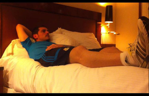 Iker in his hotel room before the game against Bayern
