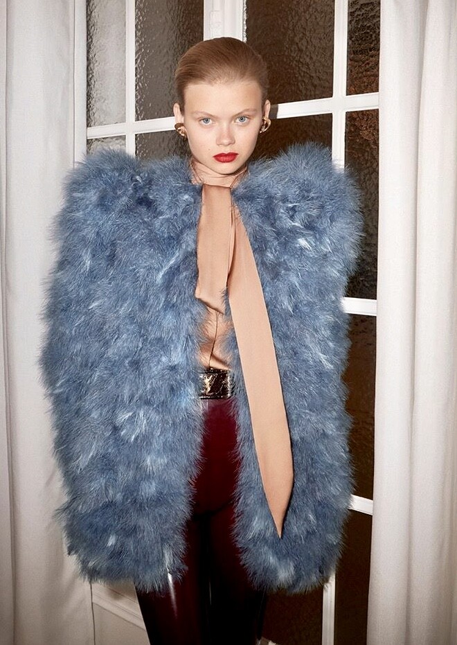 Newcomer Evie Harris’s baby face may remind you of aughts favorites like Abbey Lee and Gemma Ward, but her charms are all her own. The teen from Shepherd’s Bush burst onto the scene by opening JW Anderson’s spring 2020 collection, and she’s carried that momentum into fall. This season Harris proved herself capable of versatile work, transforming from one of Miuccia Prada’s urbane muses to a latex-and-feather-clad Saint Laurent vixen in a matter of days.