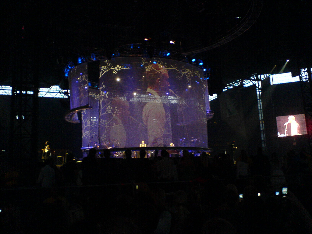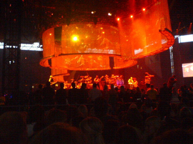 The sound was perfect as always for a Radiohead gig, but we were 35 000 peoples in a park where it's been raining for the last week. We couln't see much of what was going on the stage, but they have like 5 giant screen on both side of the stage and each screen show a member of the band.