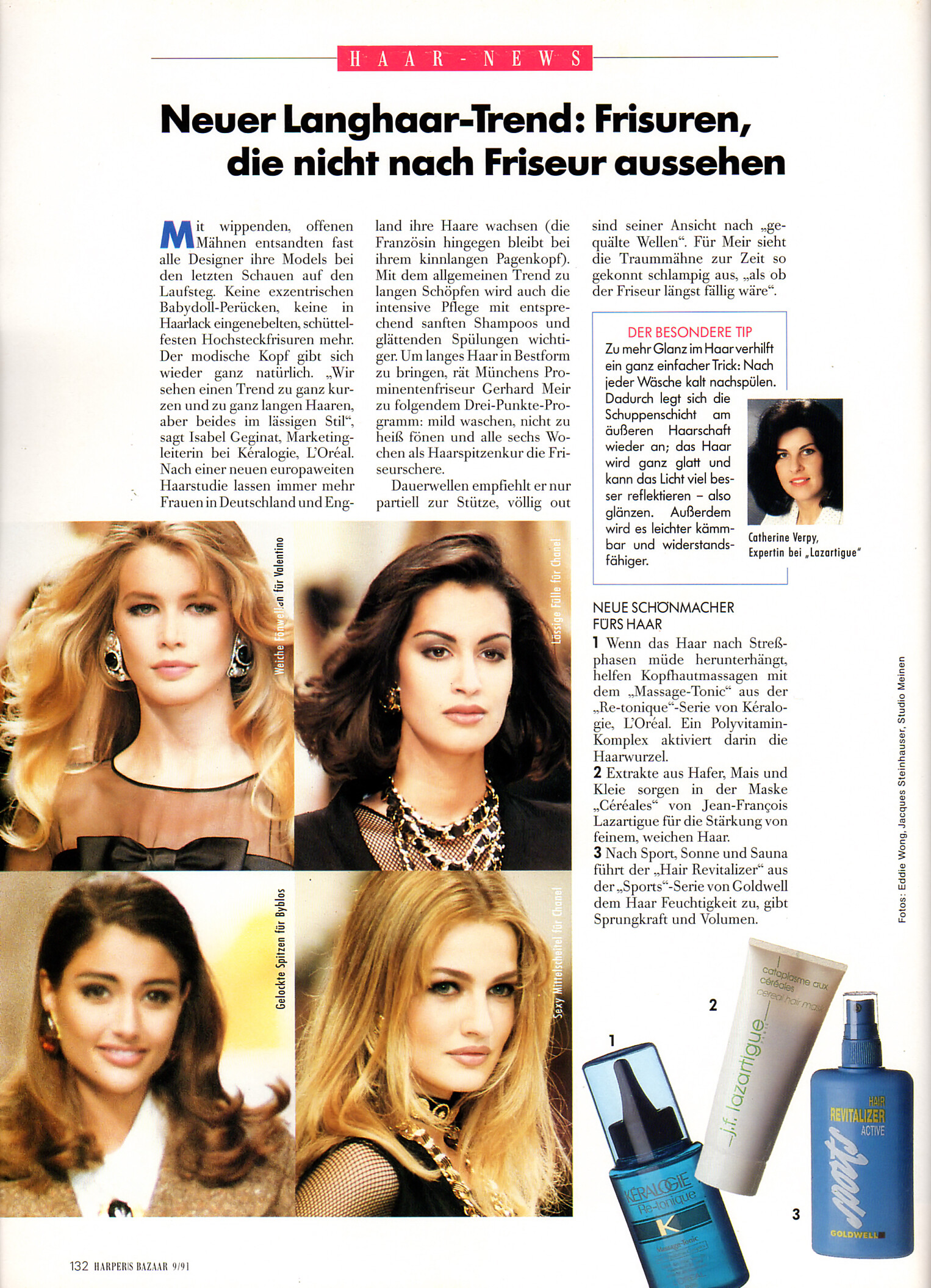 Neuer Langhaar-Trend: Frisuren, die nicht nach Friseur aussehen" - Harper´s BAZAAR Germany September 1991 by Eddie Wong, Jaques Steinhauser - also showing Yasmeen Ghauri, Brenda Schad, Karen Mulder