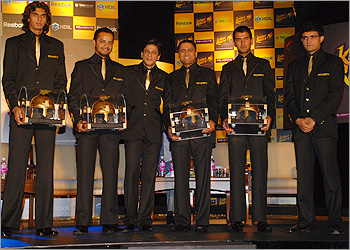 Ganguly, Buchanan and CAB chief Prasun Mukherjee were presented 'golden' helmets, as also four state cricketers, Laxmi Ratan Shukla, Wriddhiman Saha, Sourasis Lahiri and Rohan Banerjee.