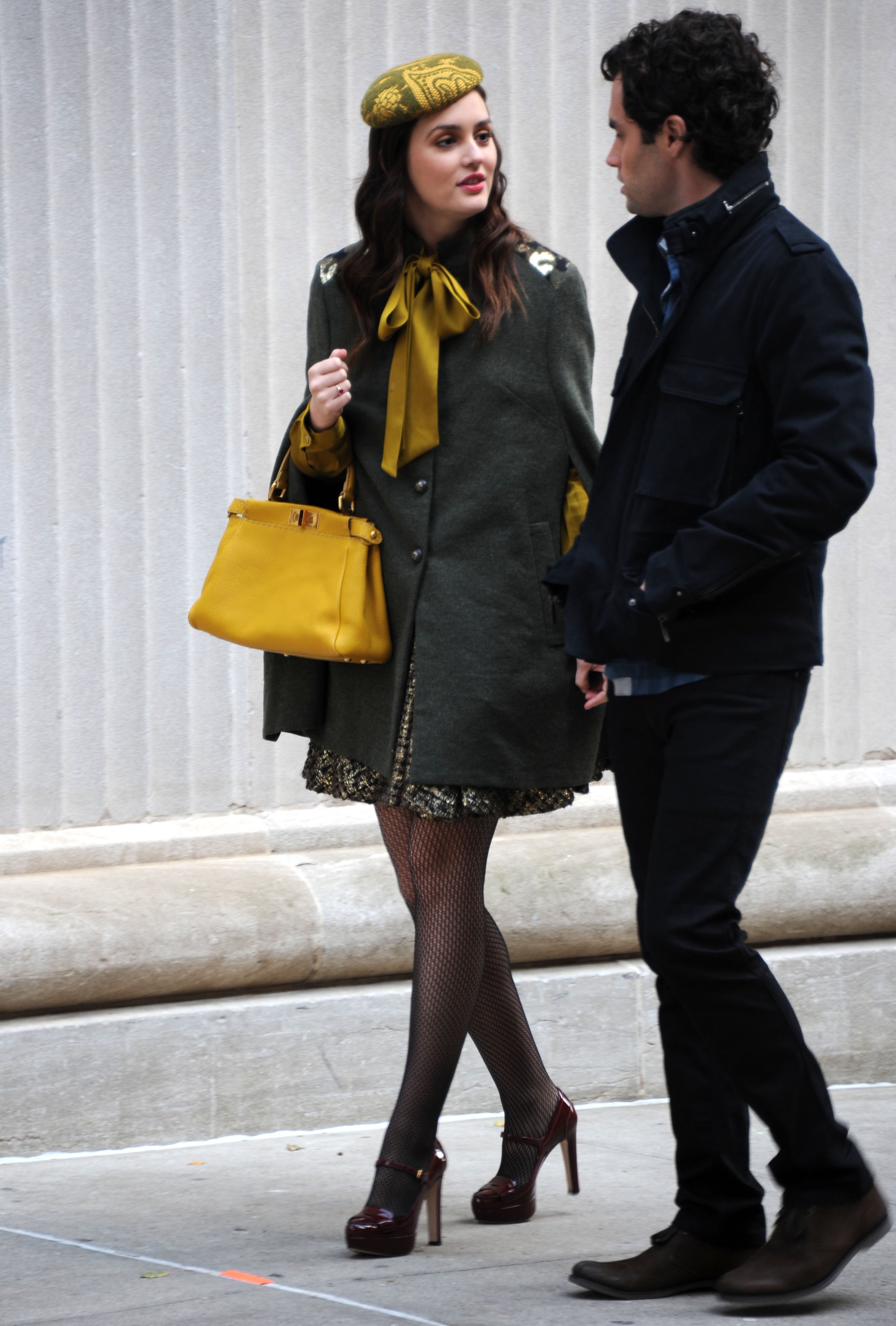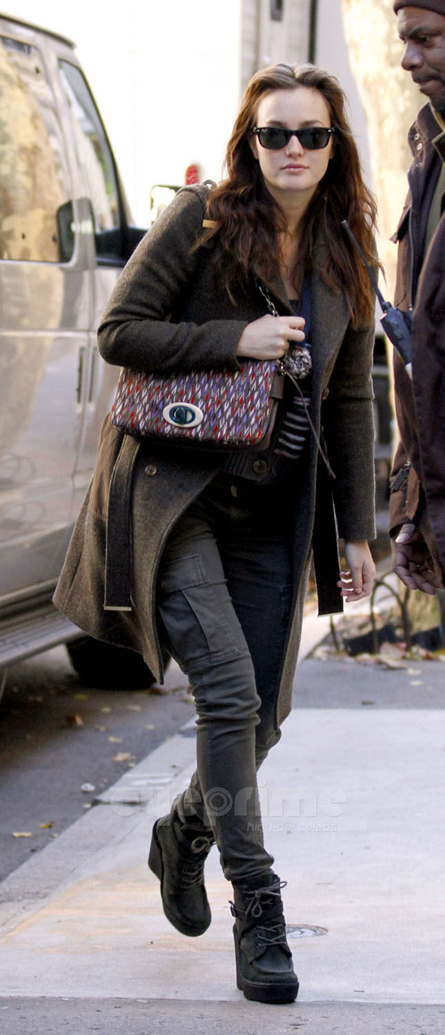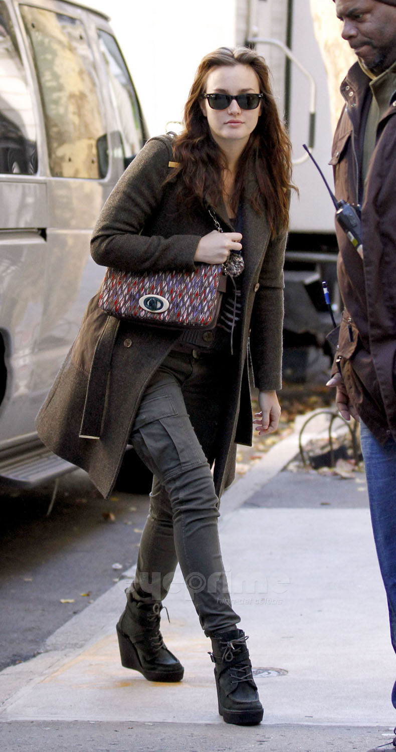Leighton Meester is the definition of comfortable as she arrives on the set of Gossip Girl in New York City on Wednesday morning (November 9).