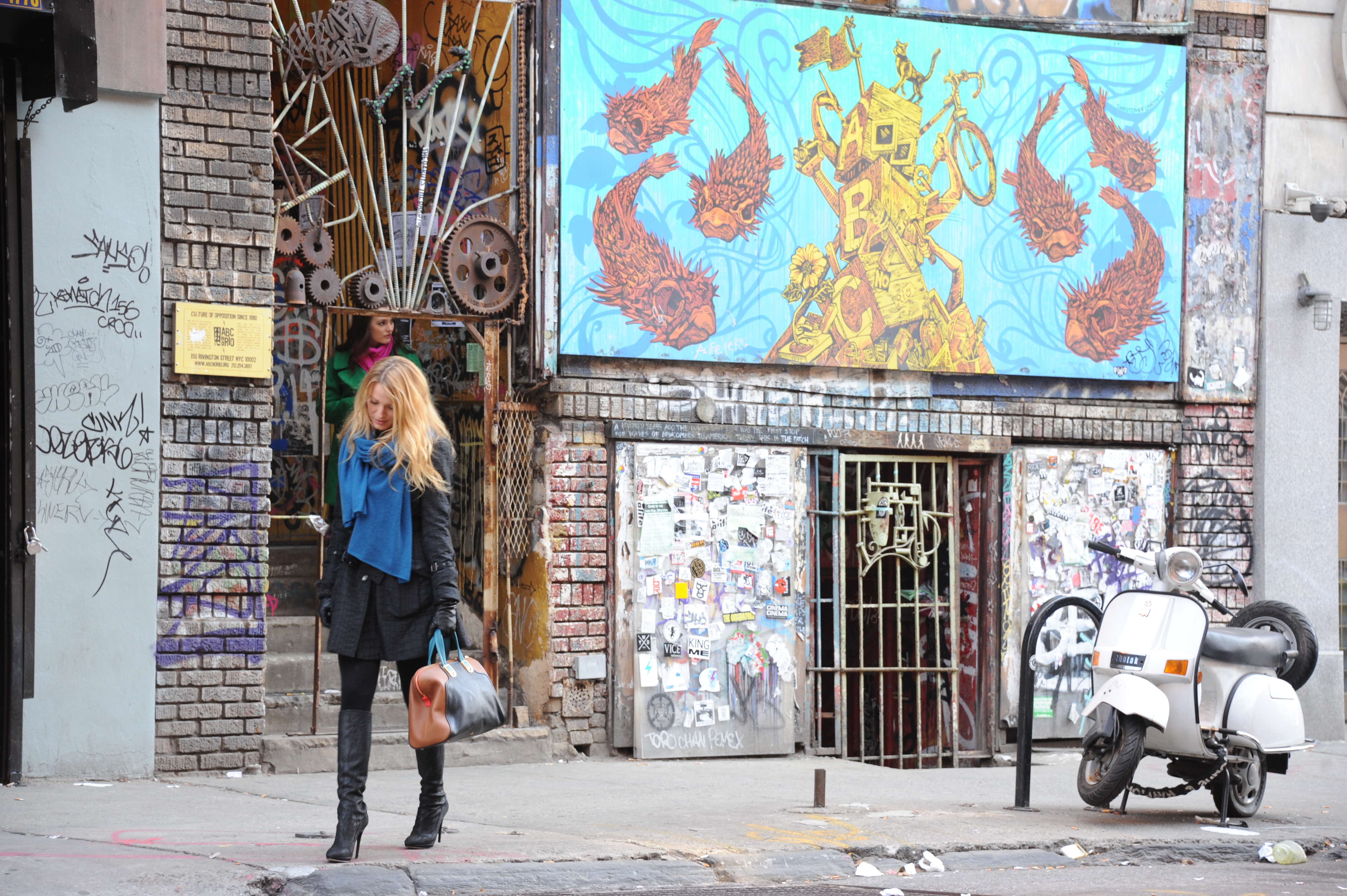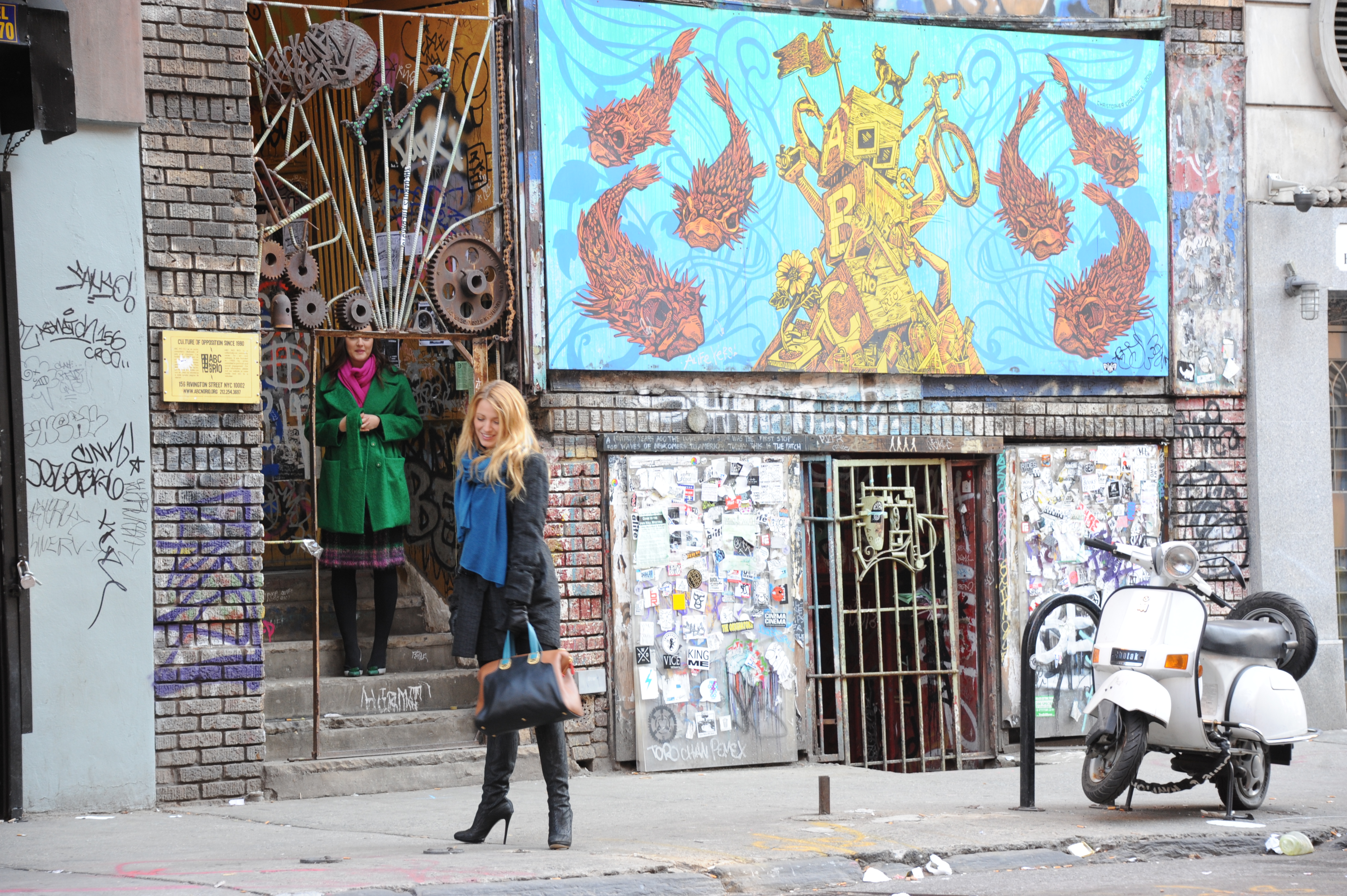 Blake Lively, Leighton Meester and Michelle Tractenberg on the set of ‘Gossip Girl’ in New York city, USA.