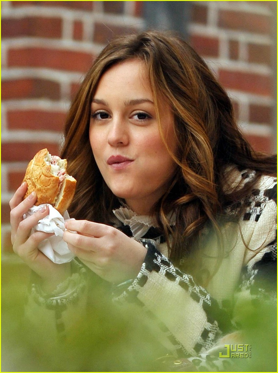 Gossip Girl queen bee Leighton Meester breaks for a quick hamburger lunch while filming scenes at the Museum of the City of New York (aka the Constance Billard School for Girls) on 5th Avenue Tuesday afternoon.