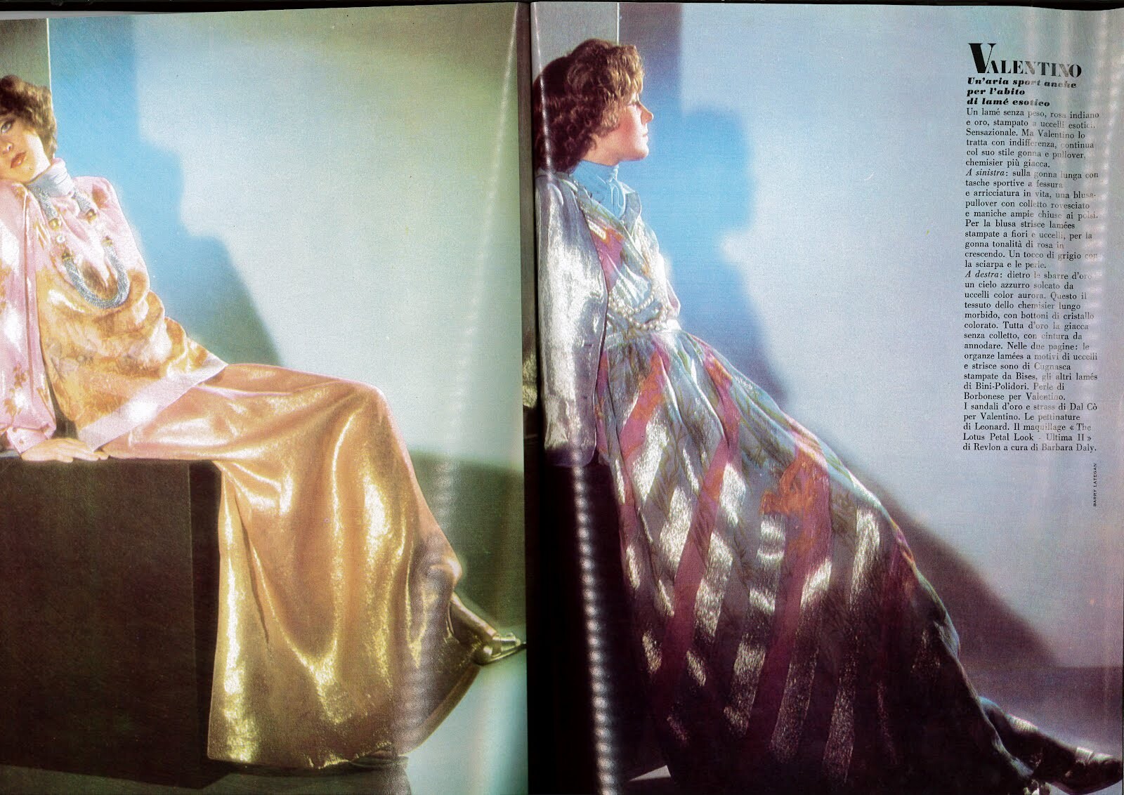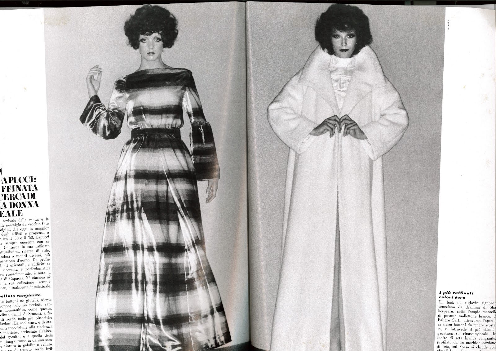 On 8/8/2020 at 8:04 PM, Vogue Girl said: Vogue Italia December 1973 "La Sera Ora: Luci della Ribalta sulle Pellicce" Models: Tracy Weed & Louise Despointes Photographer: Barry Lategan Hair: Aldo Coppola